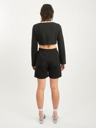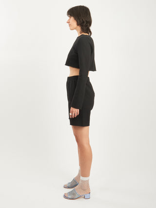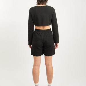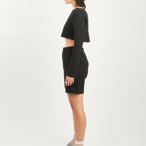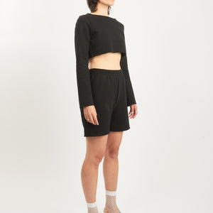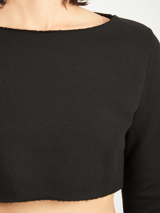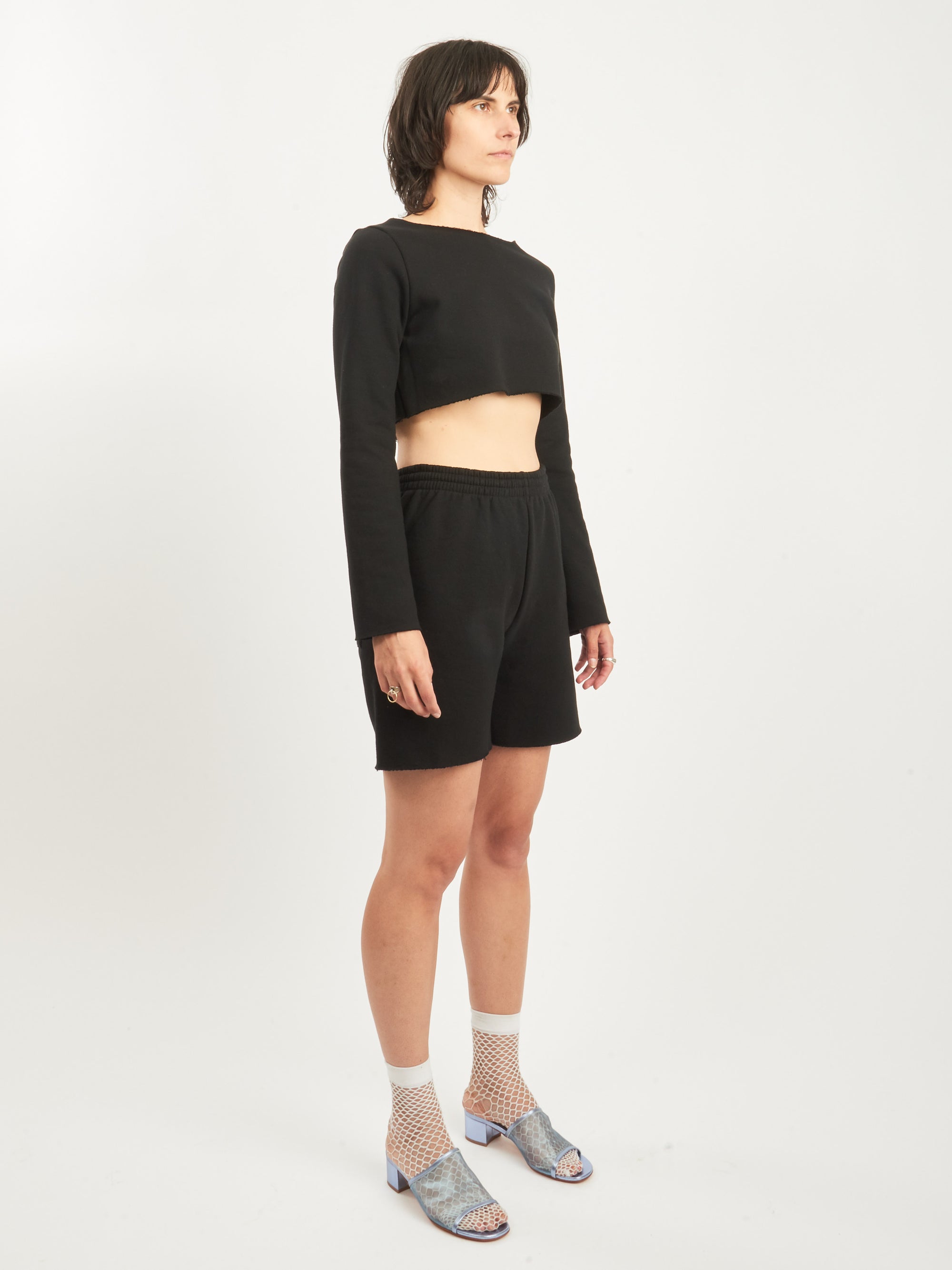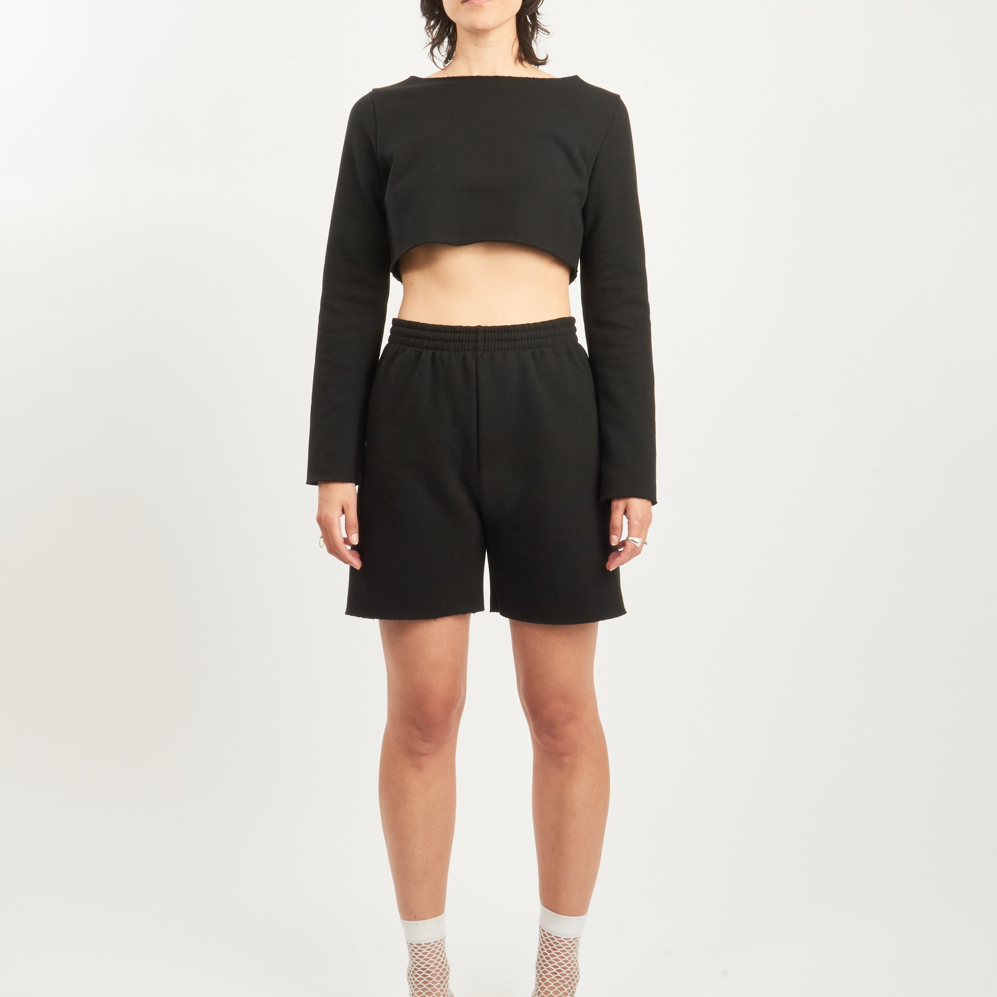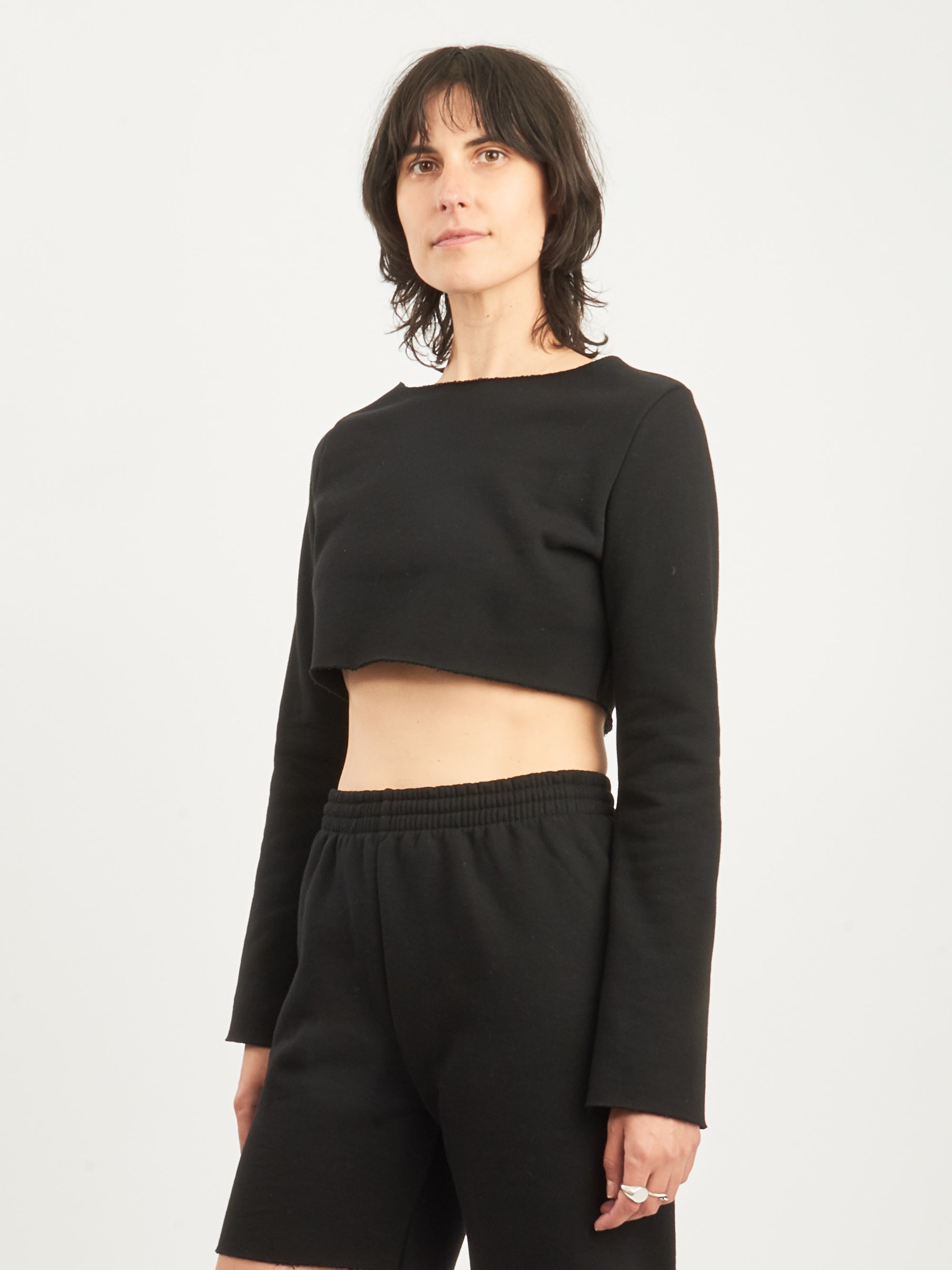 Cropped, long sleeved sweatshirt by Gil Rodriguez featuring raw edges and a flattering cut.
