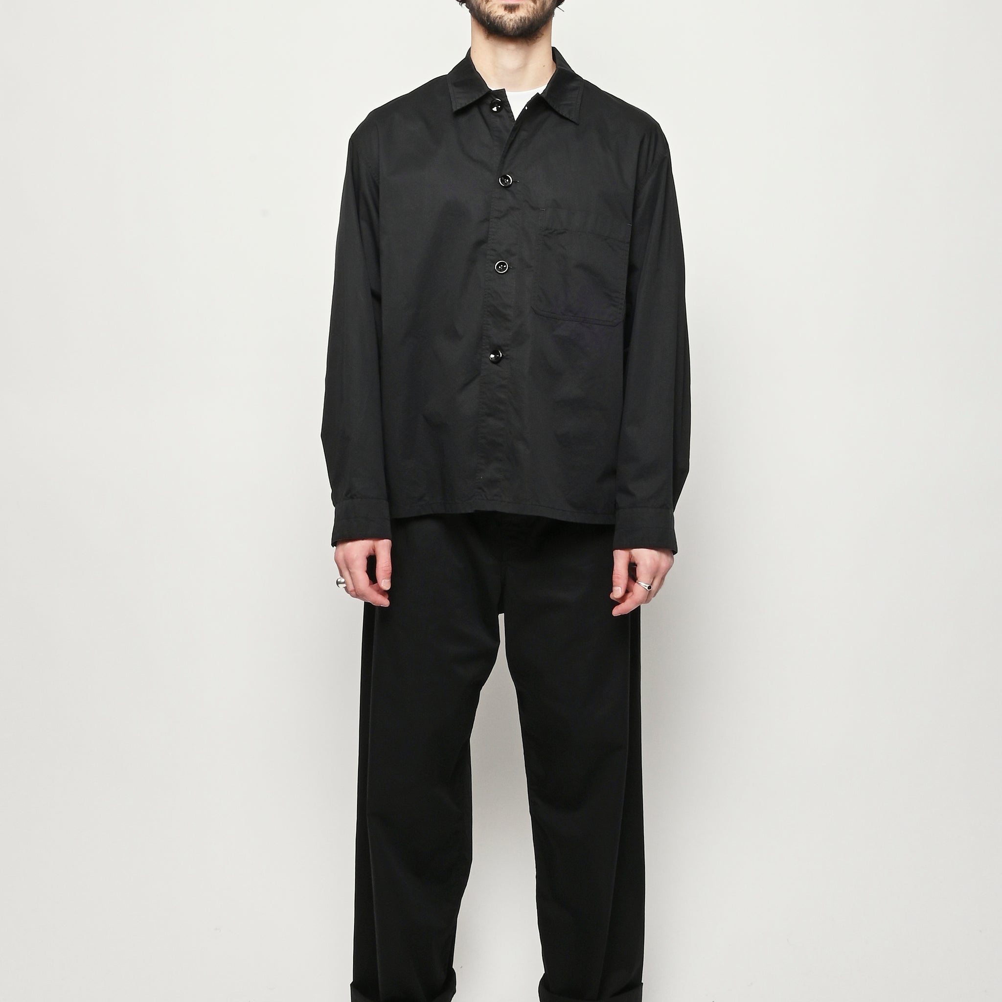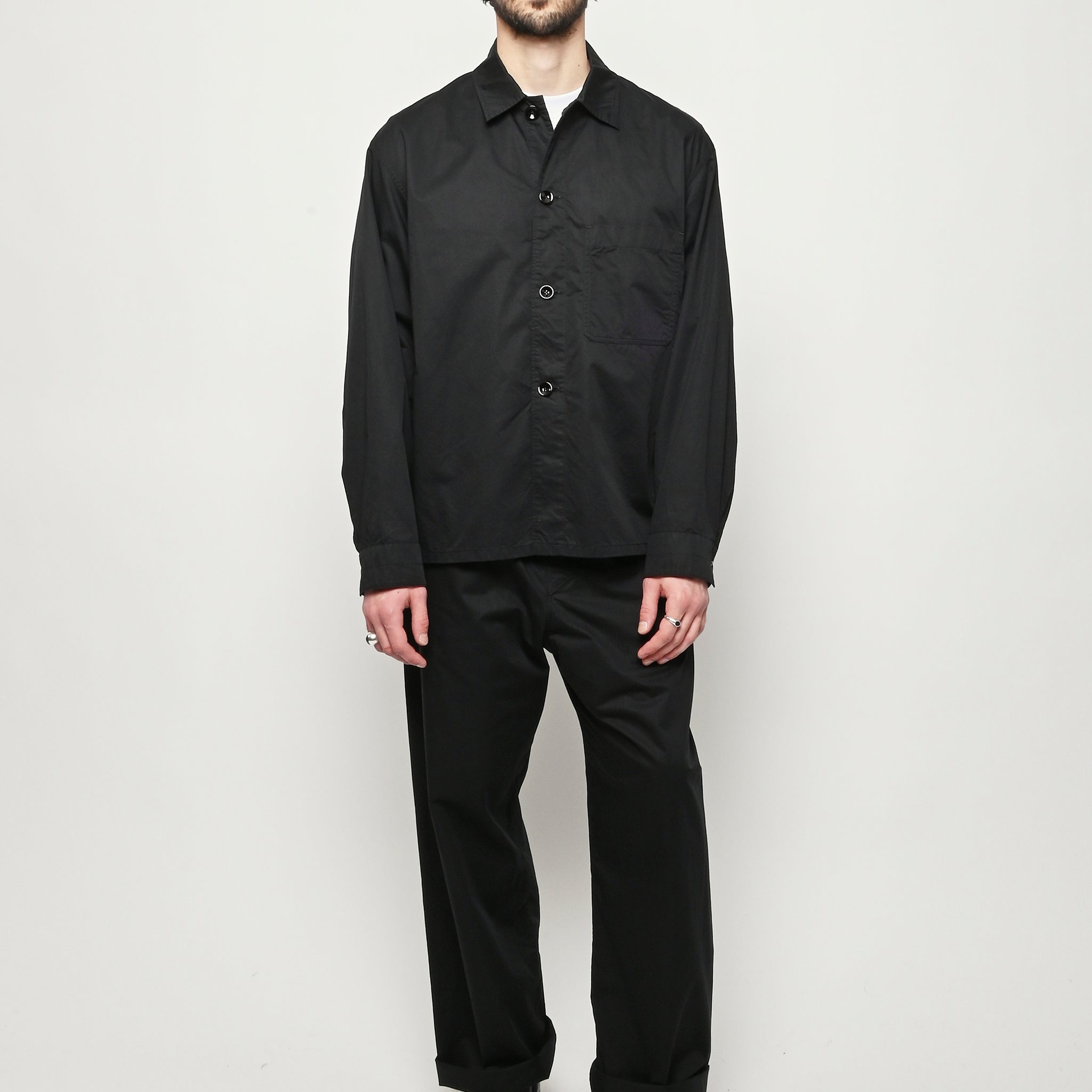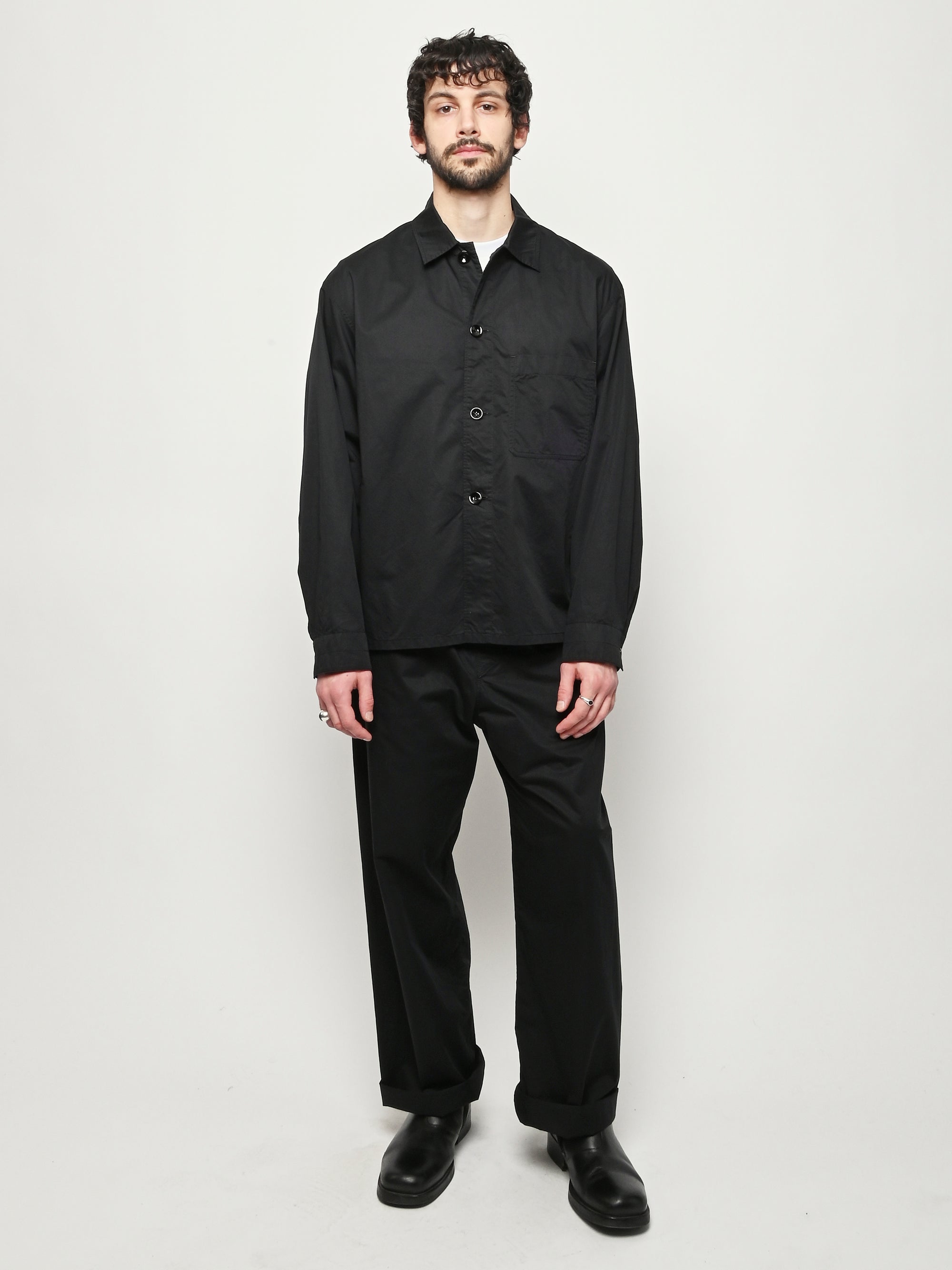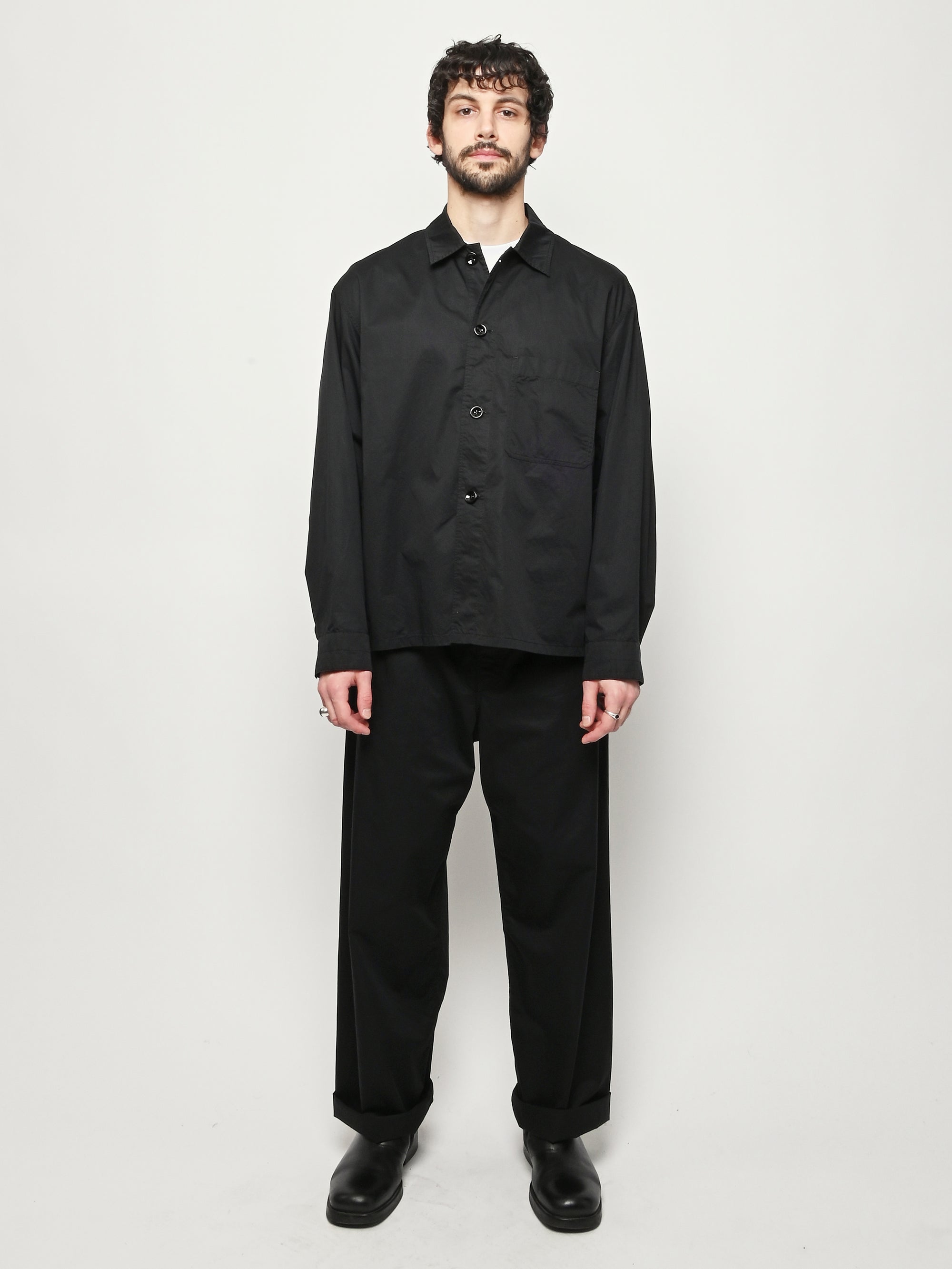 Unisex cotton pyjama shirt by LEMAIRE. This versatile piece is crafted from light cotton satin and features a relaxed fit. Details include a front button closure and a patch pocket at the chest.