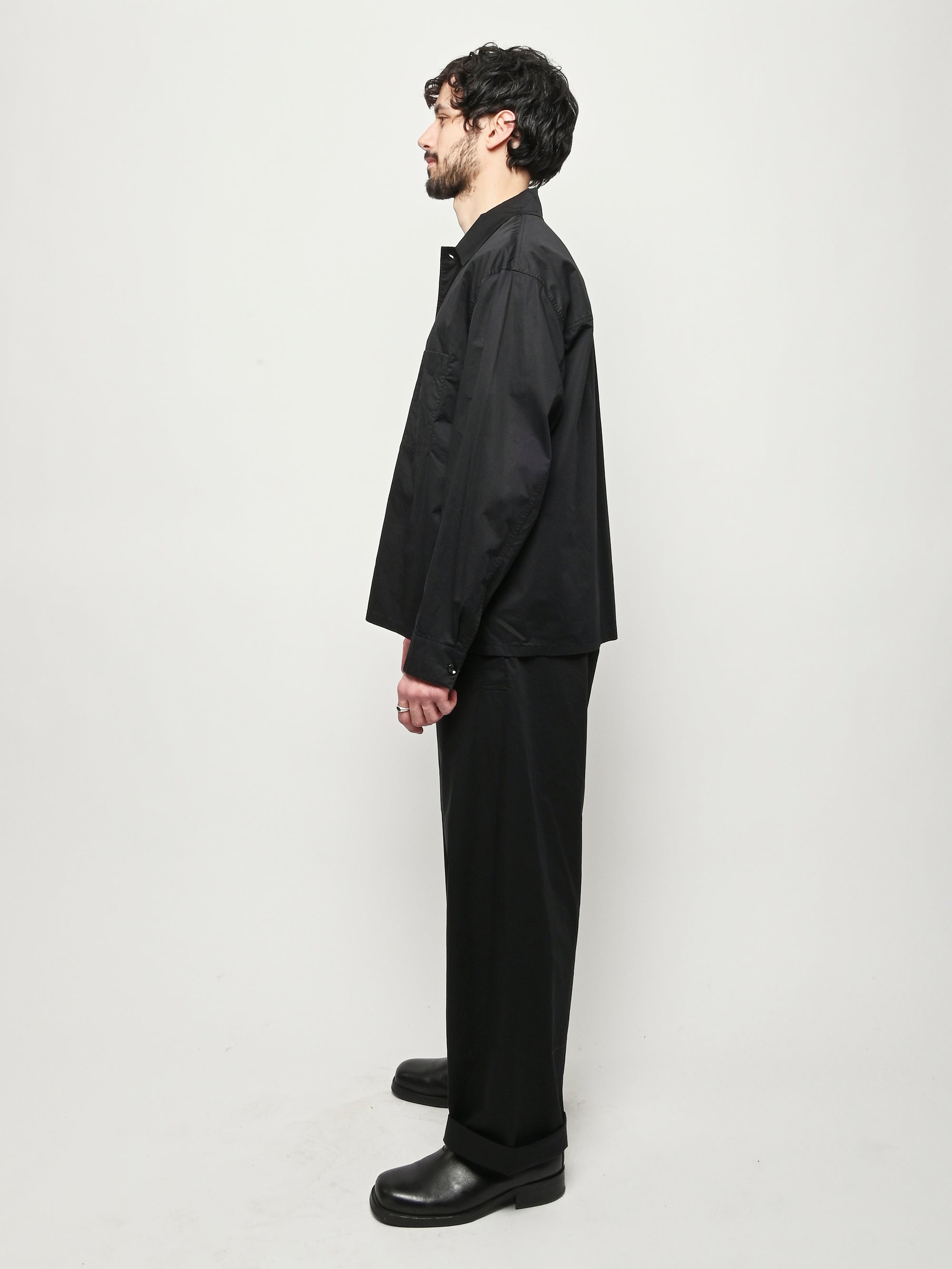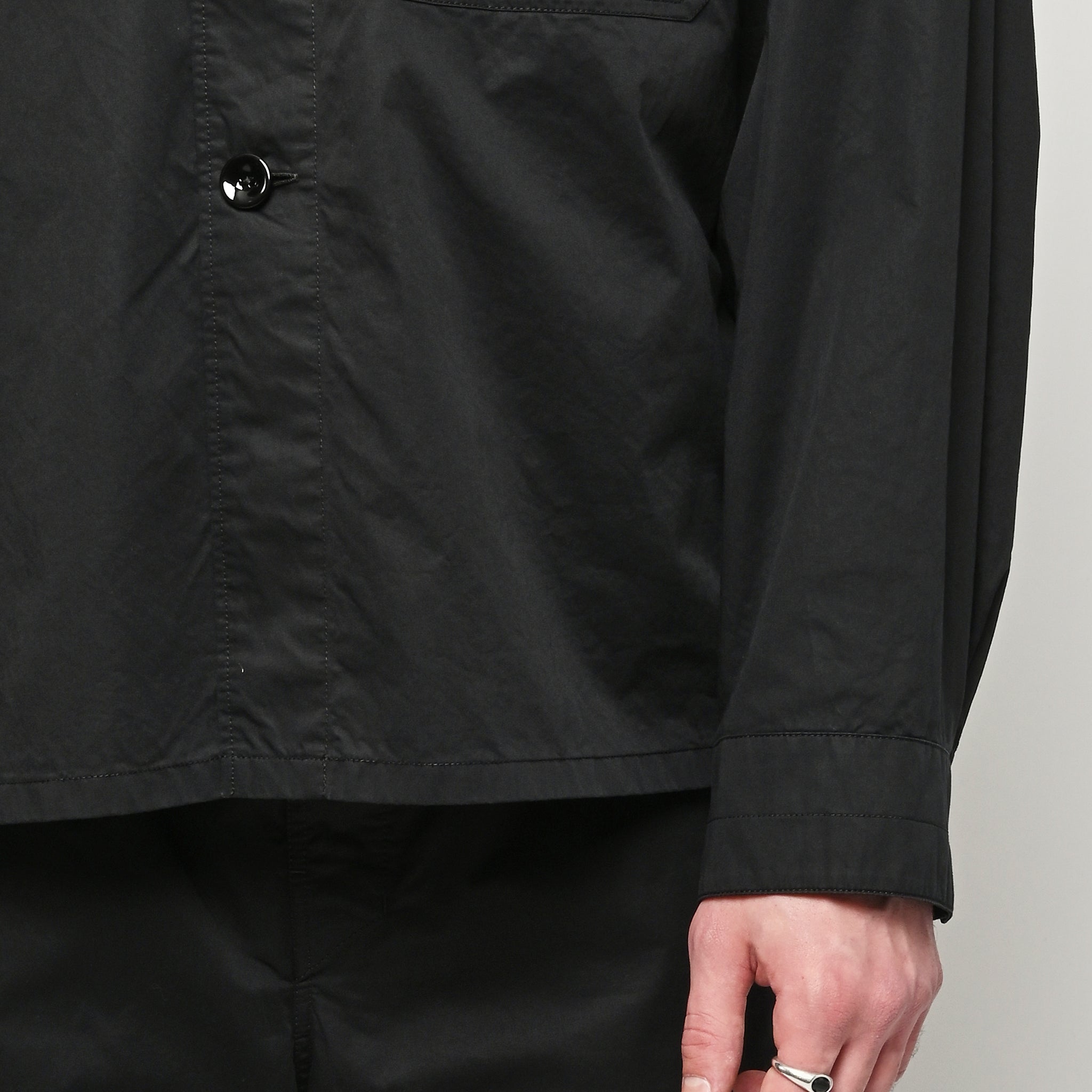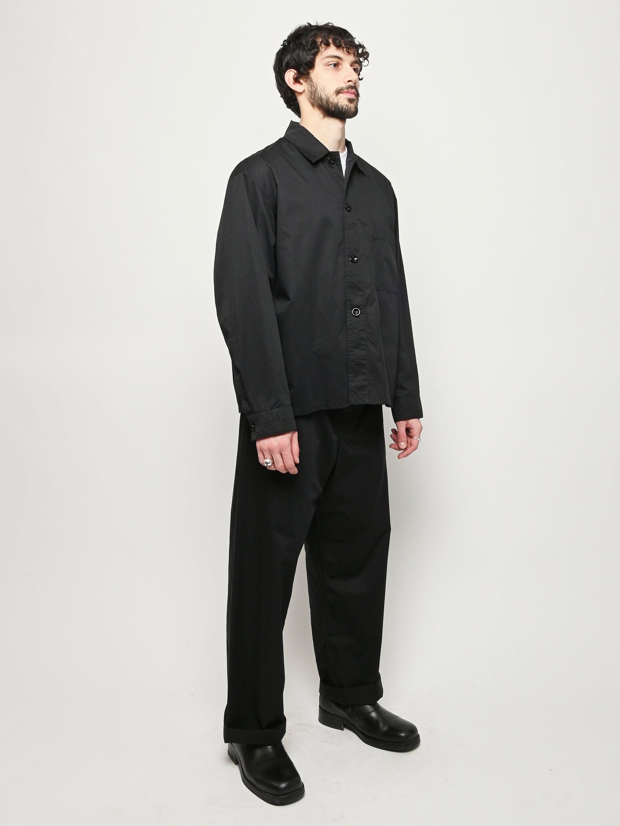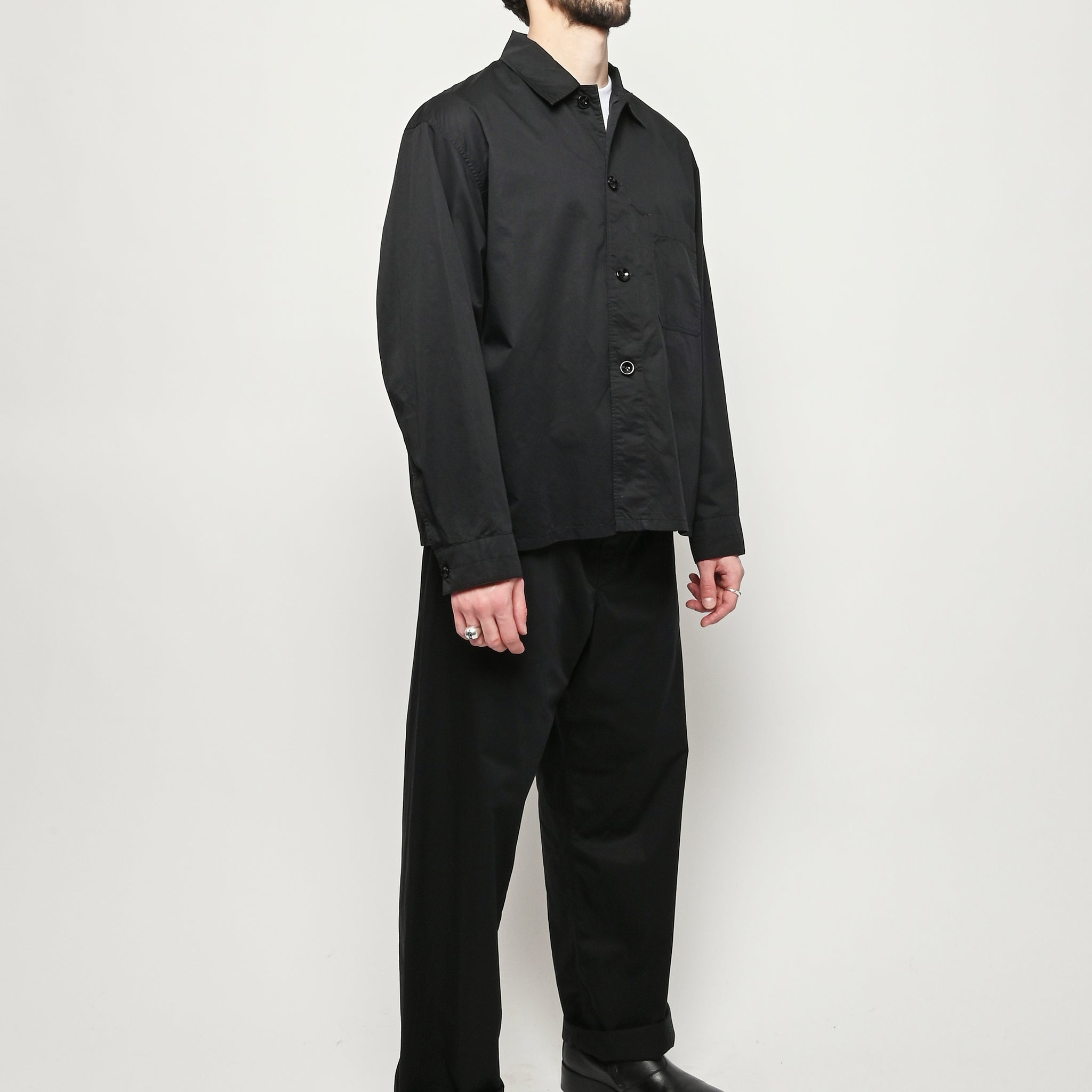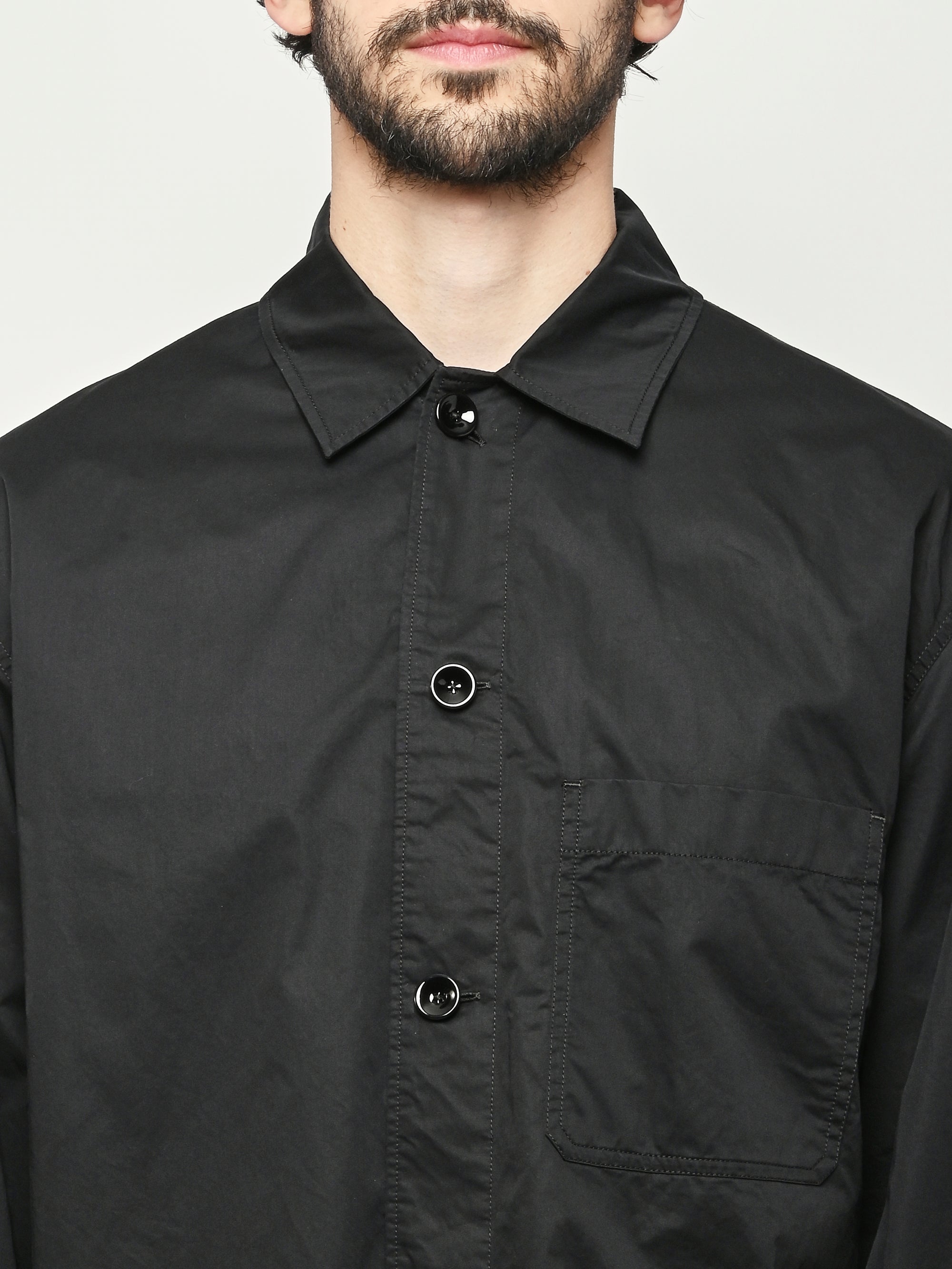 Unisex cotton pyjama shirt by LEMAIRE. This versatile piece is crafted from light cotton satin and features a relaxed fit. Details include a front button closure and a patch pocket at the chest.