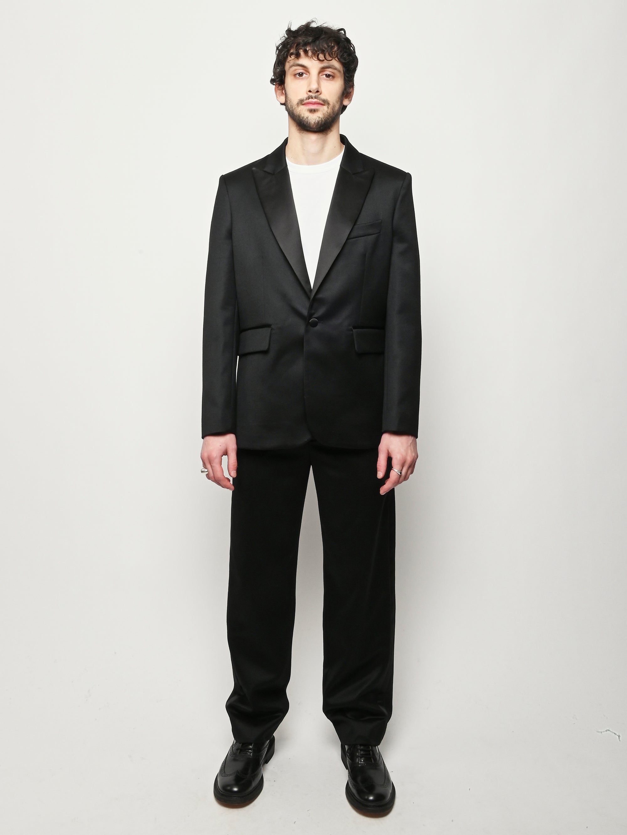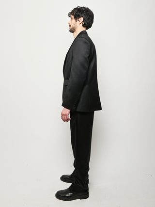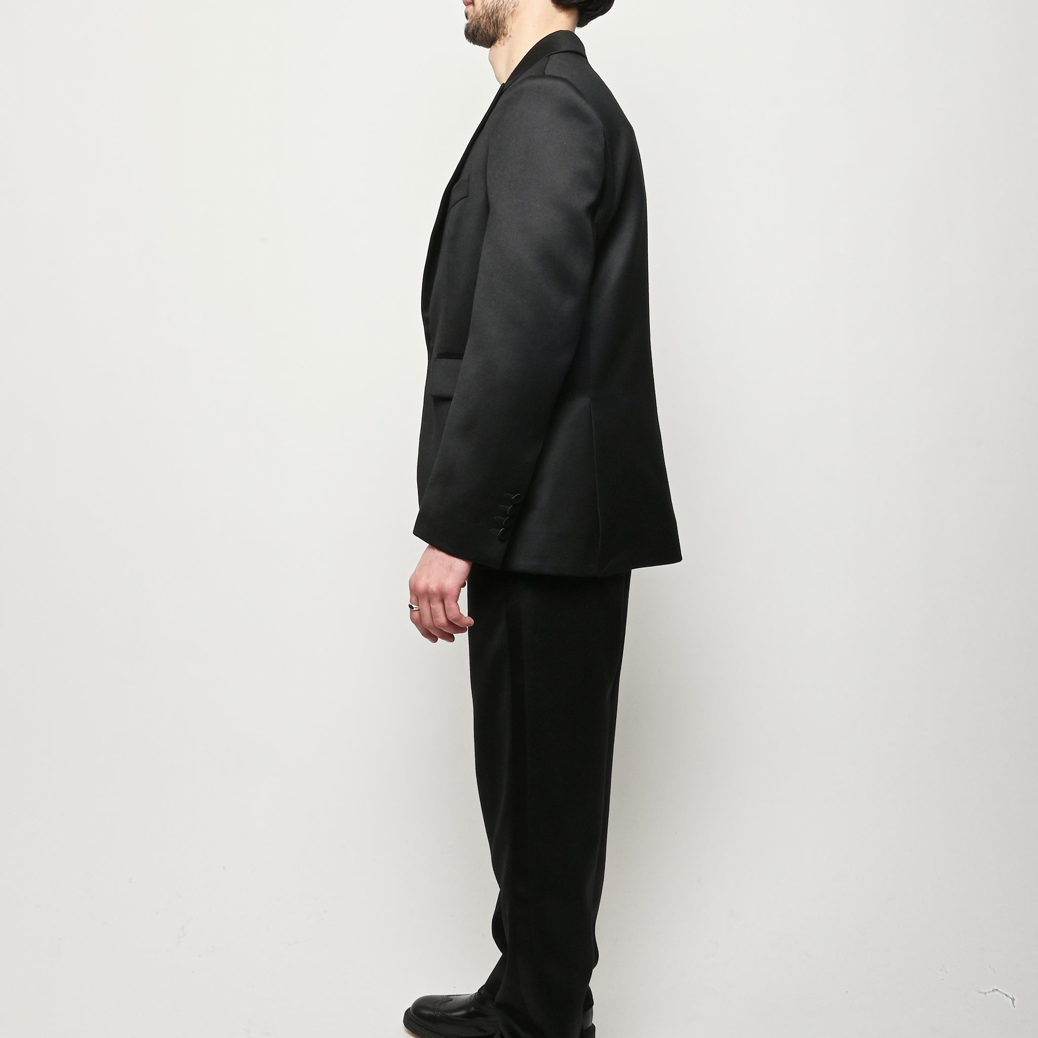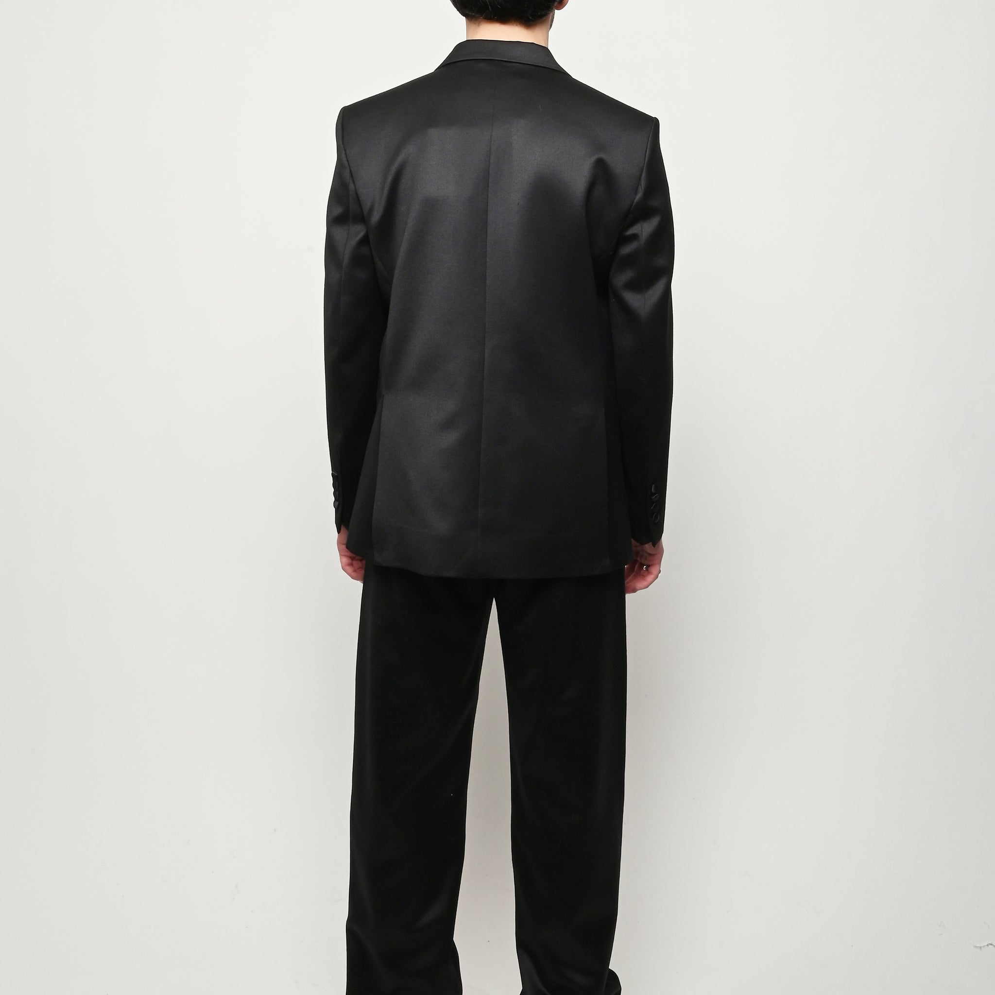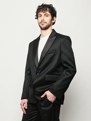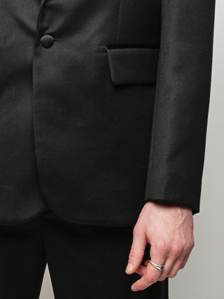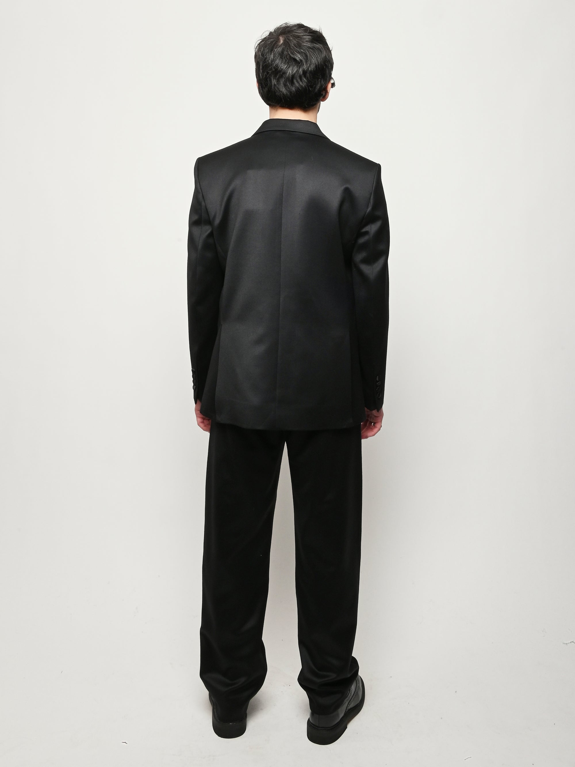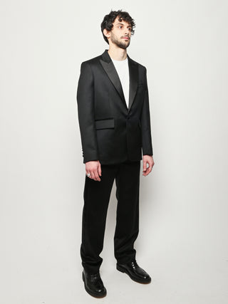 This Bode piece is a reproduction of a men's tuxedo jacket from the 1960s. Bode reproduced the silhouette in fine barathea wool with a satin contrast collar and buttons.