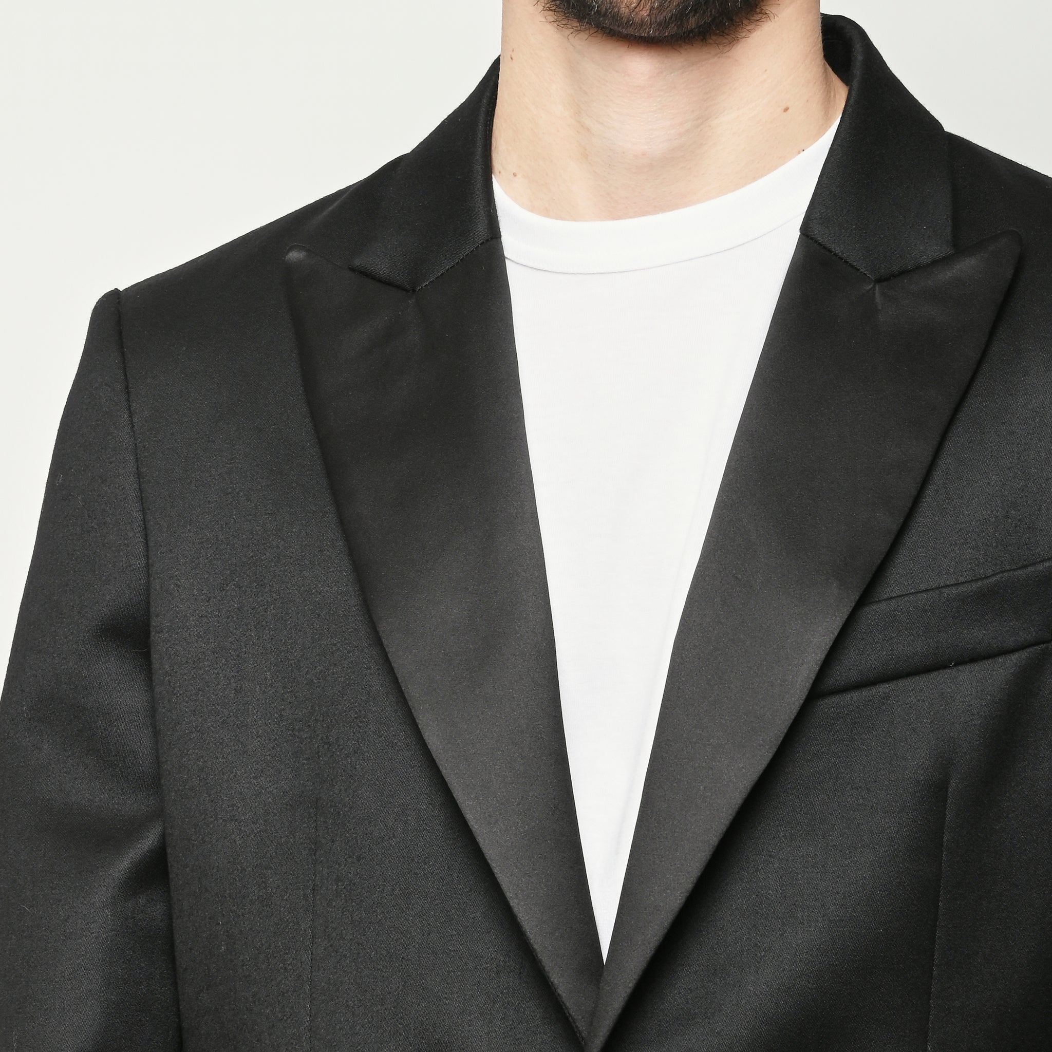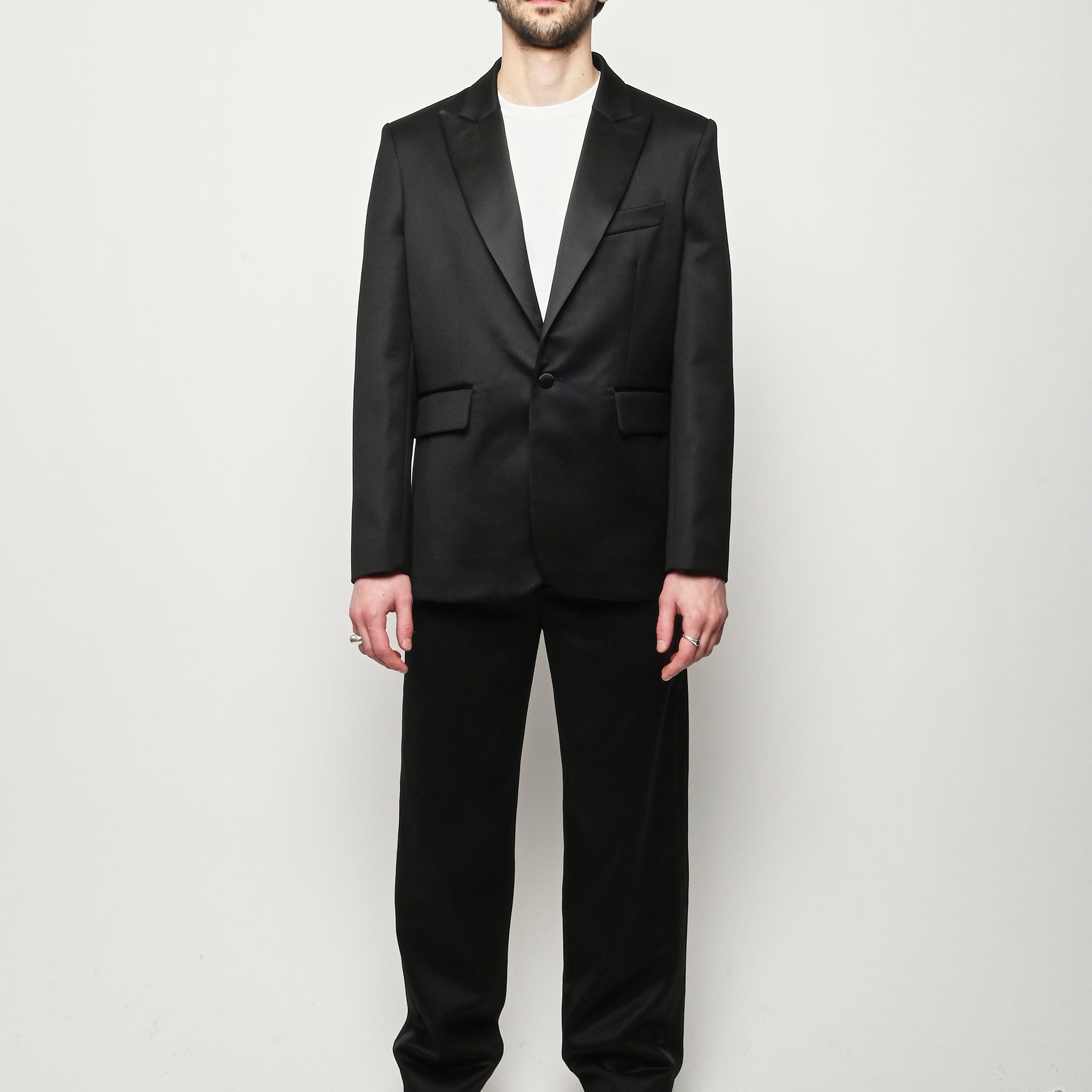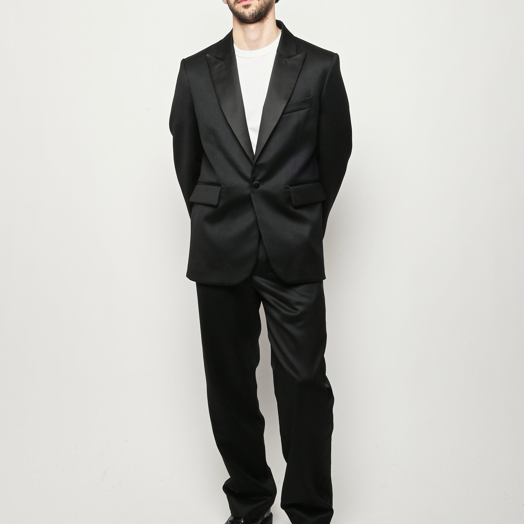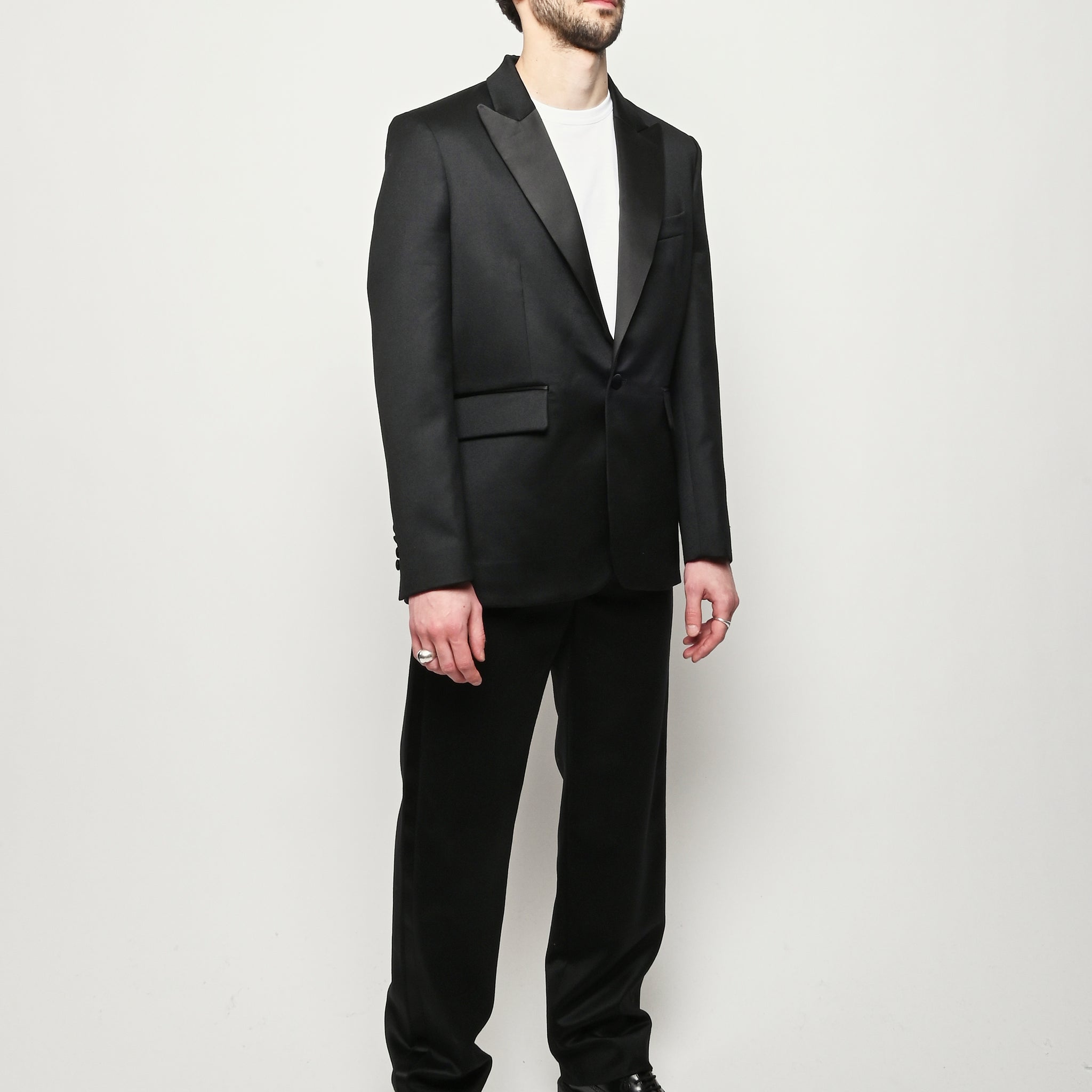 This Bode piece is a reproduction of a men's tuxedo jacket from the 1960s. Bode reproduced the silhouette in fine barathea wool with a satin contrast collar and buttons.