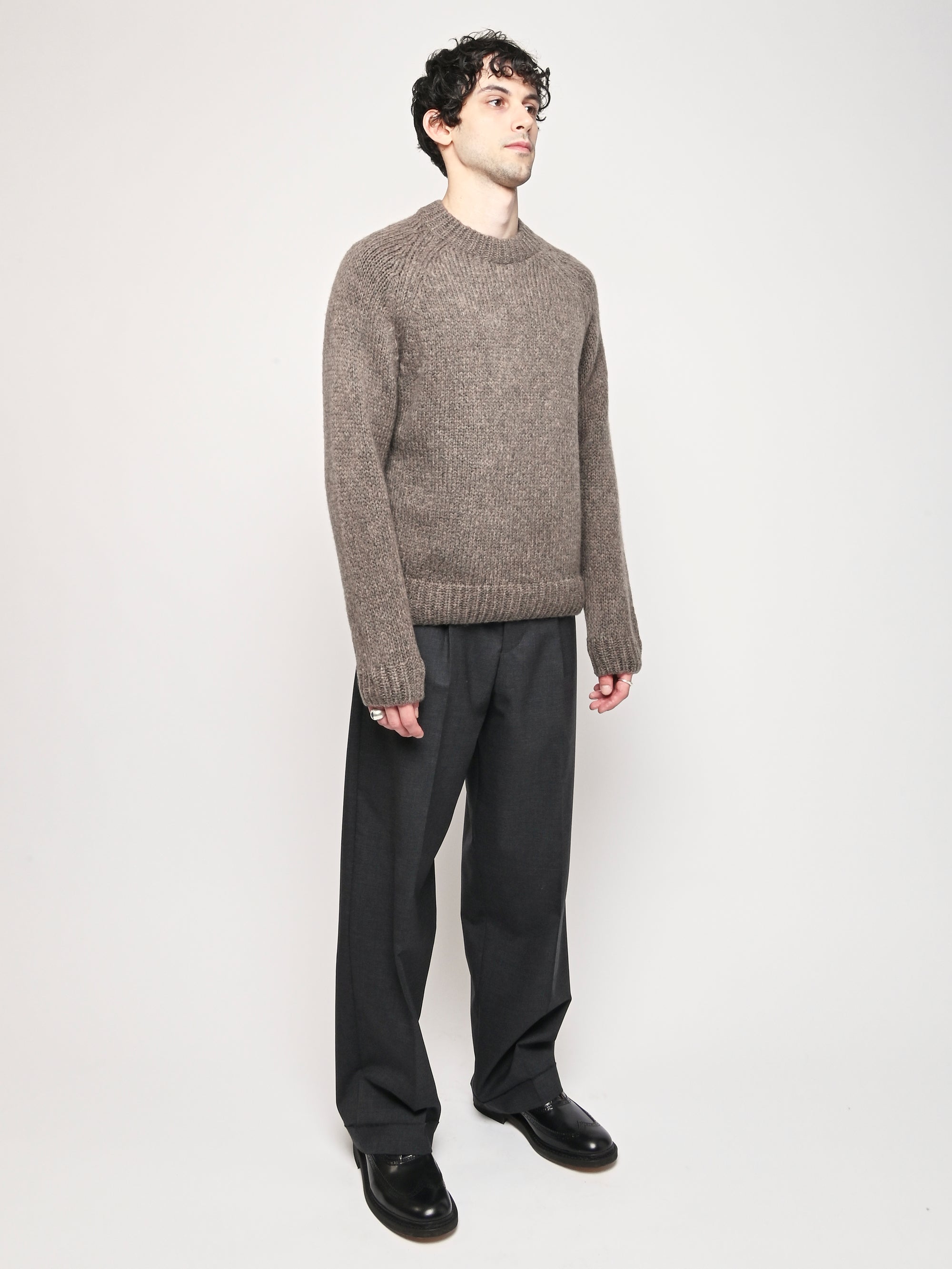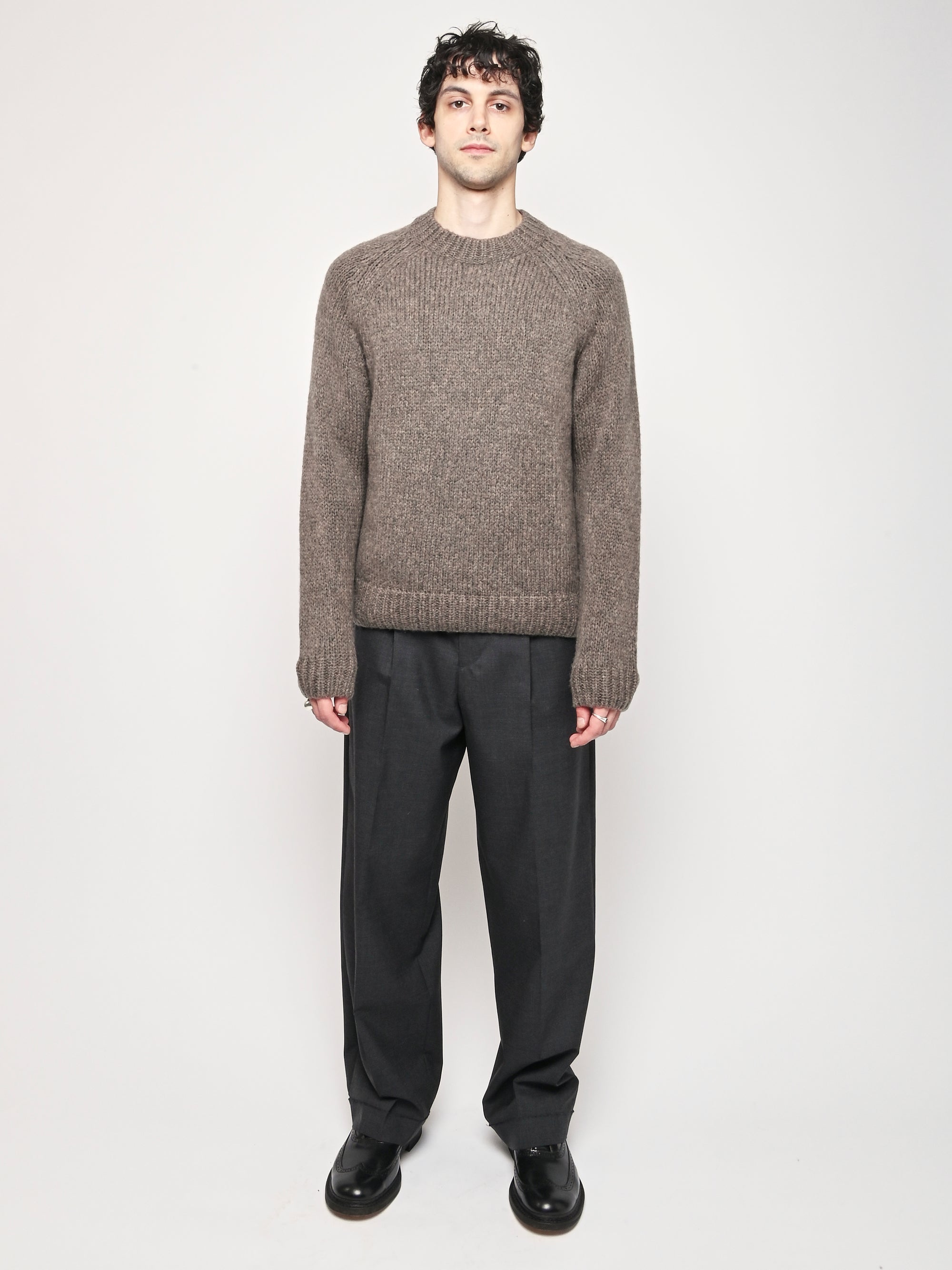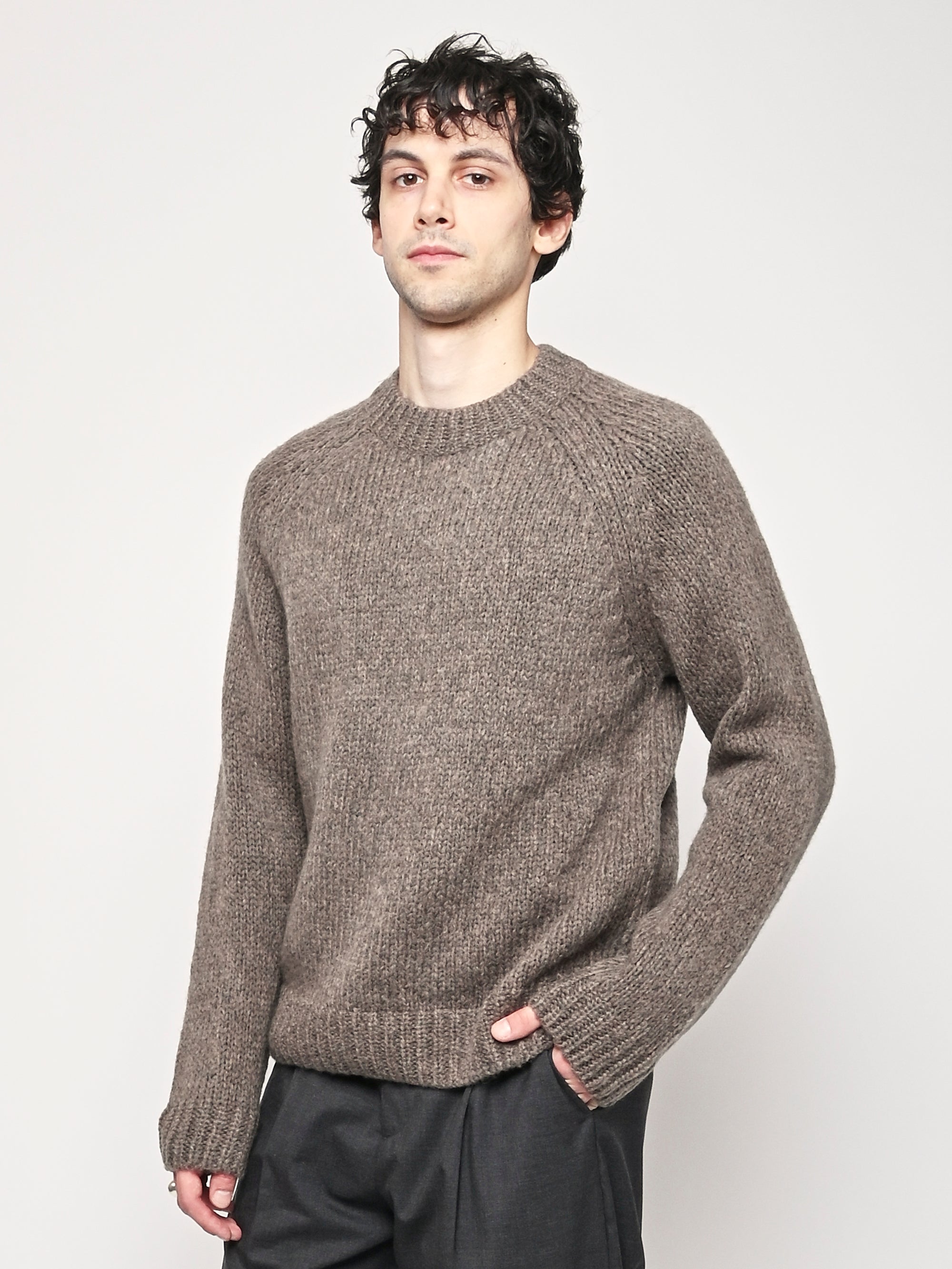 A regular fitting raglan sweater by Norse Projects knitted in an airy and light wool. The style is constructed with fully fashioned raglan sleeves and finished with half cardigan ribbed neck trim, cuffs and hem.