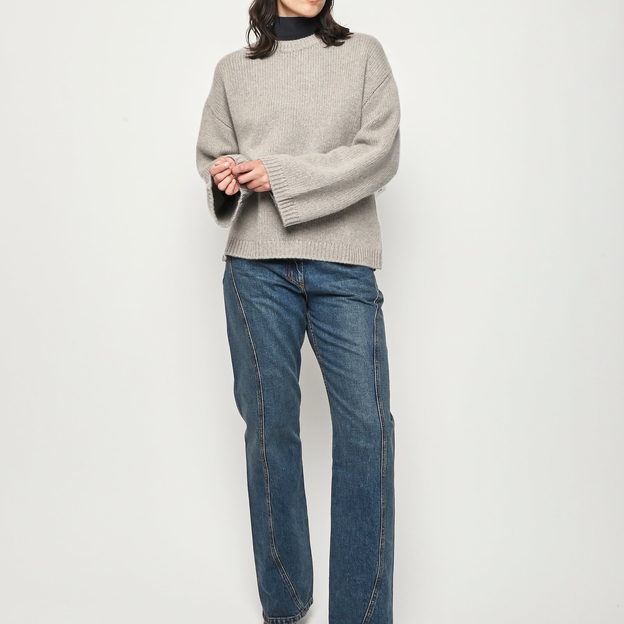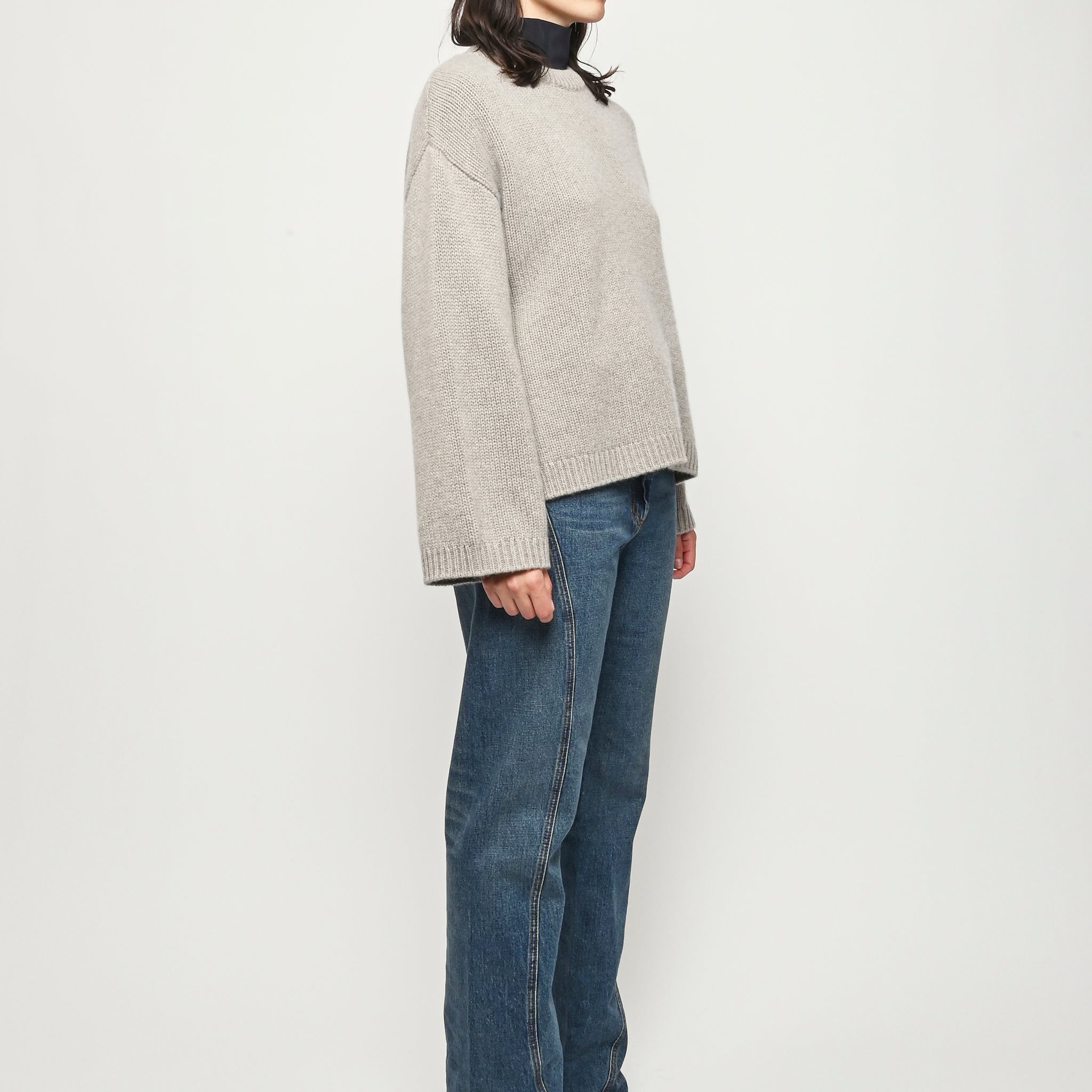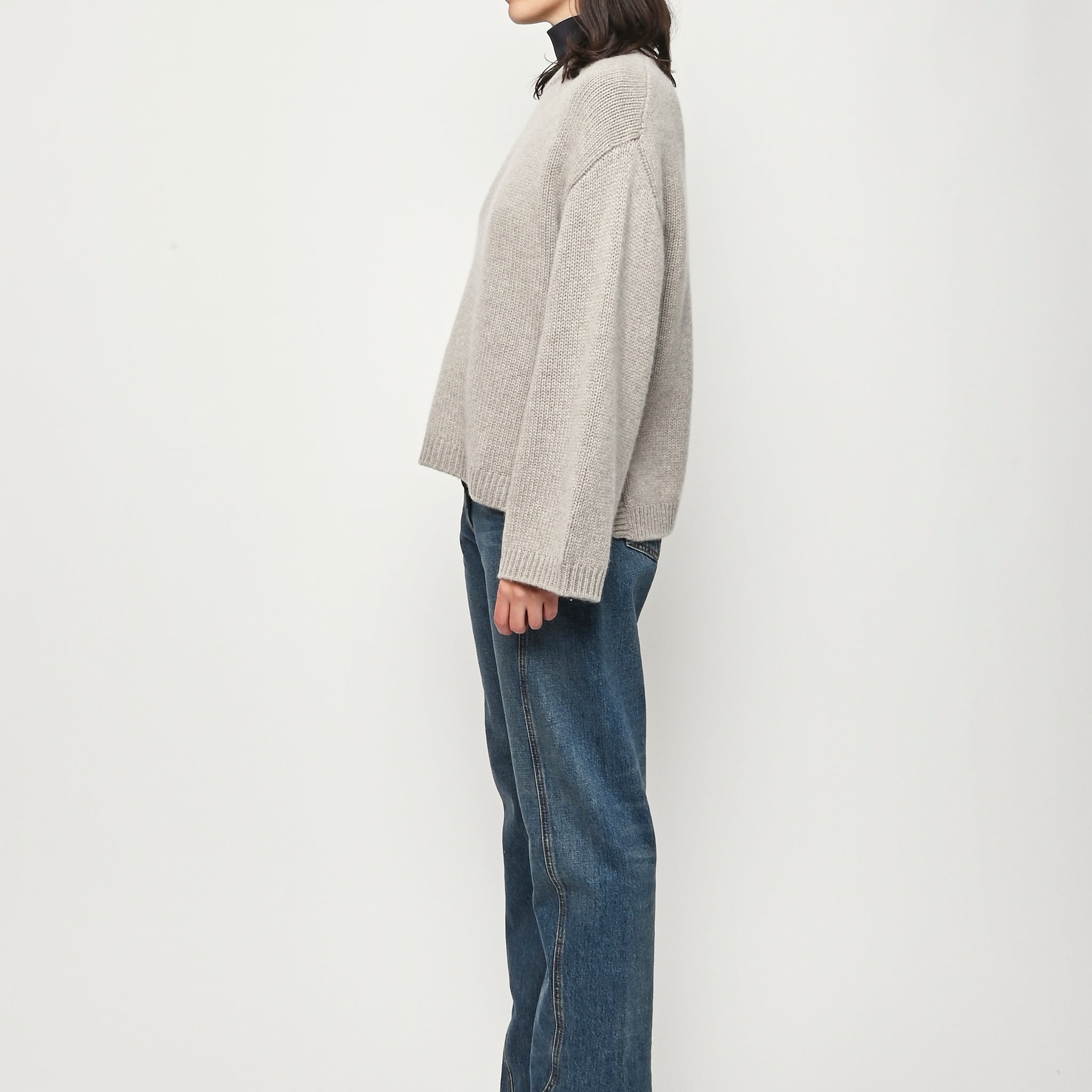 A chunky o-neck knitted in 100% cashmere.