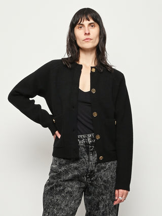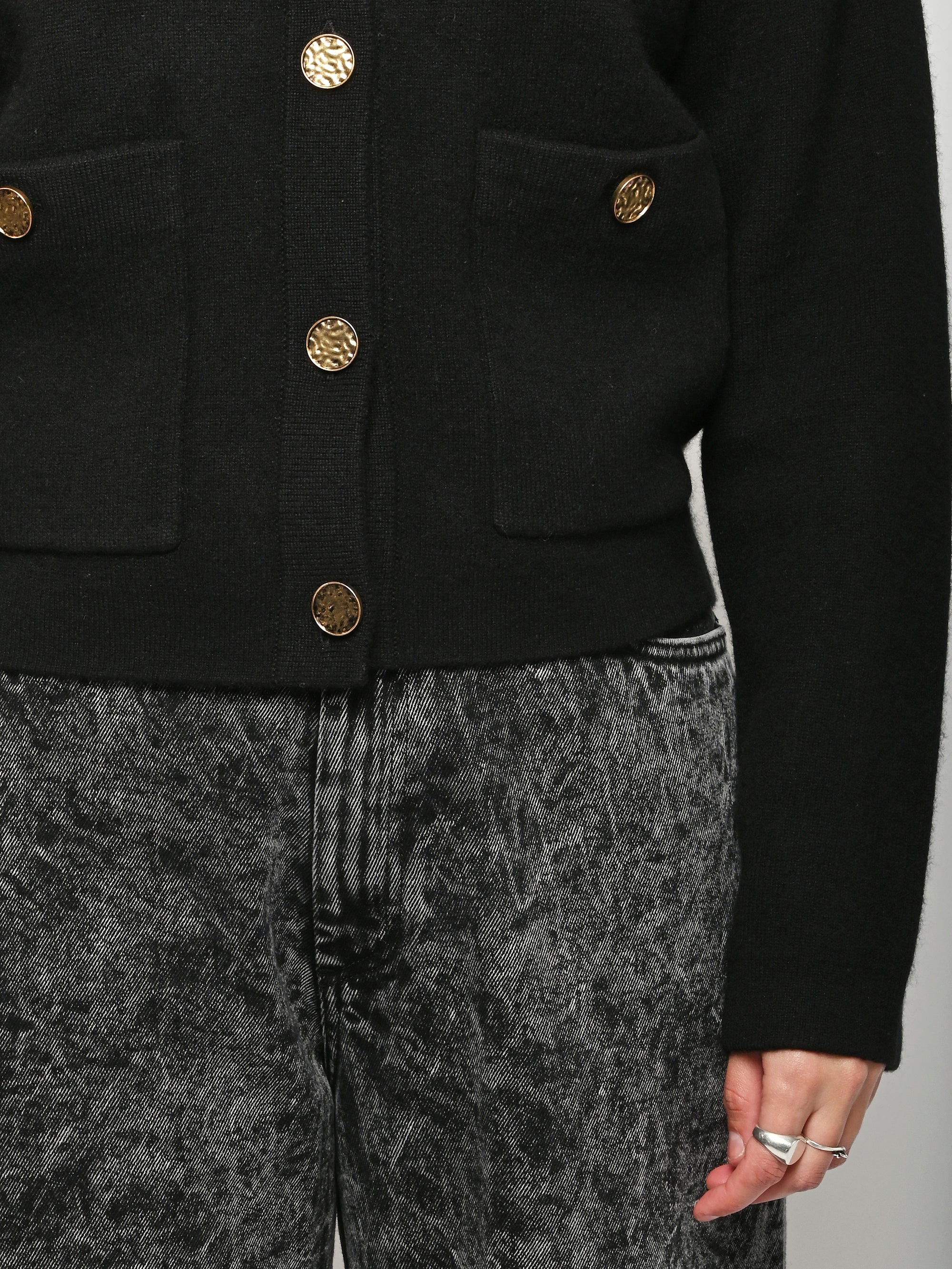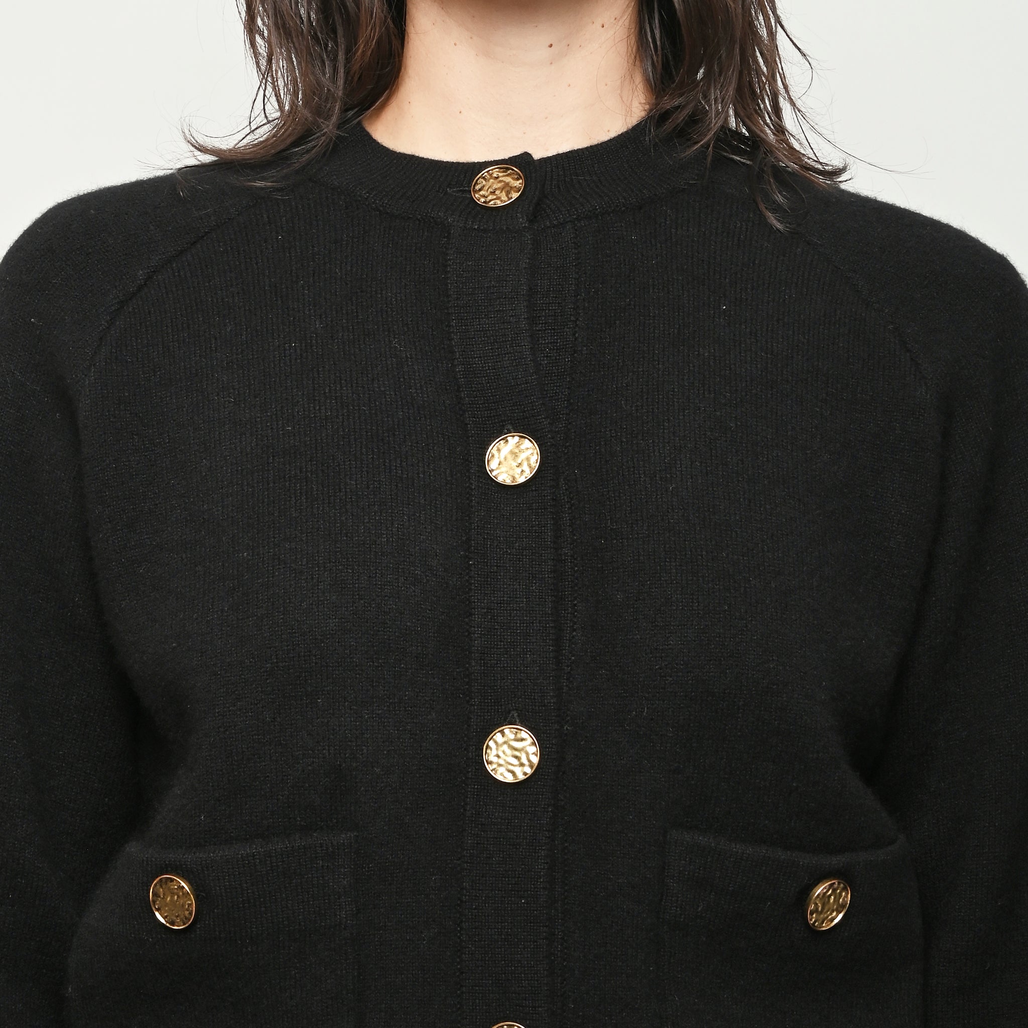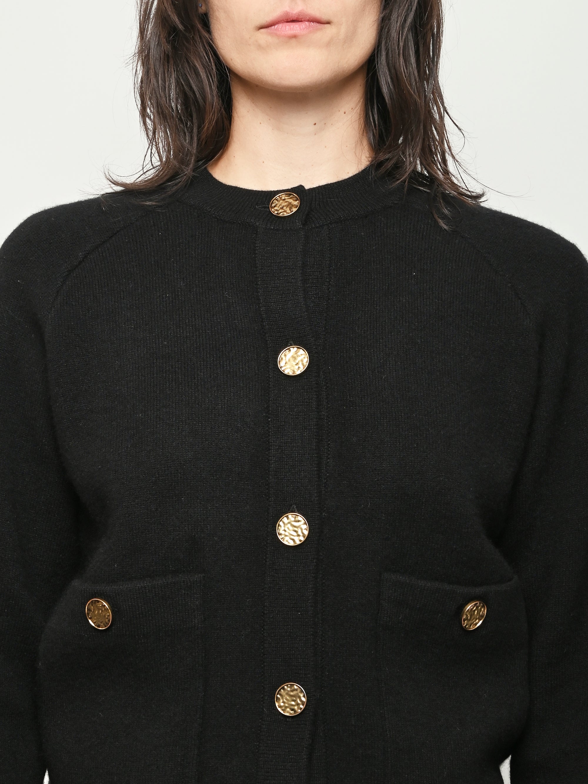 The focal element of this elegant TOTEME cardigan is the hammered shank buttons decorating the placket and pockets. It is knitted from cashmere to a spongy, double-sided construction that feels warm and soft to the touch.