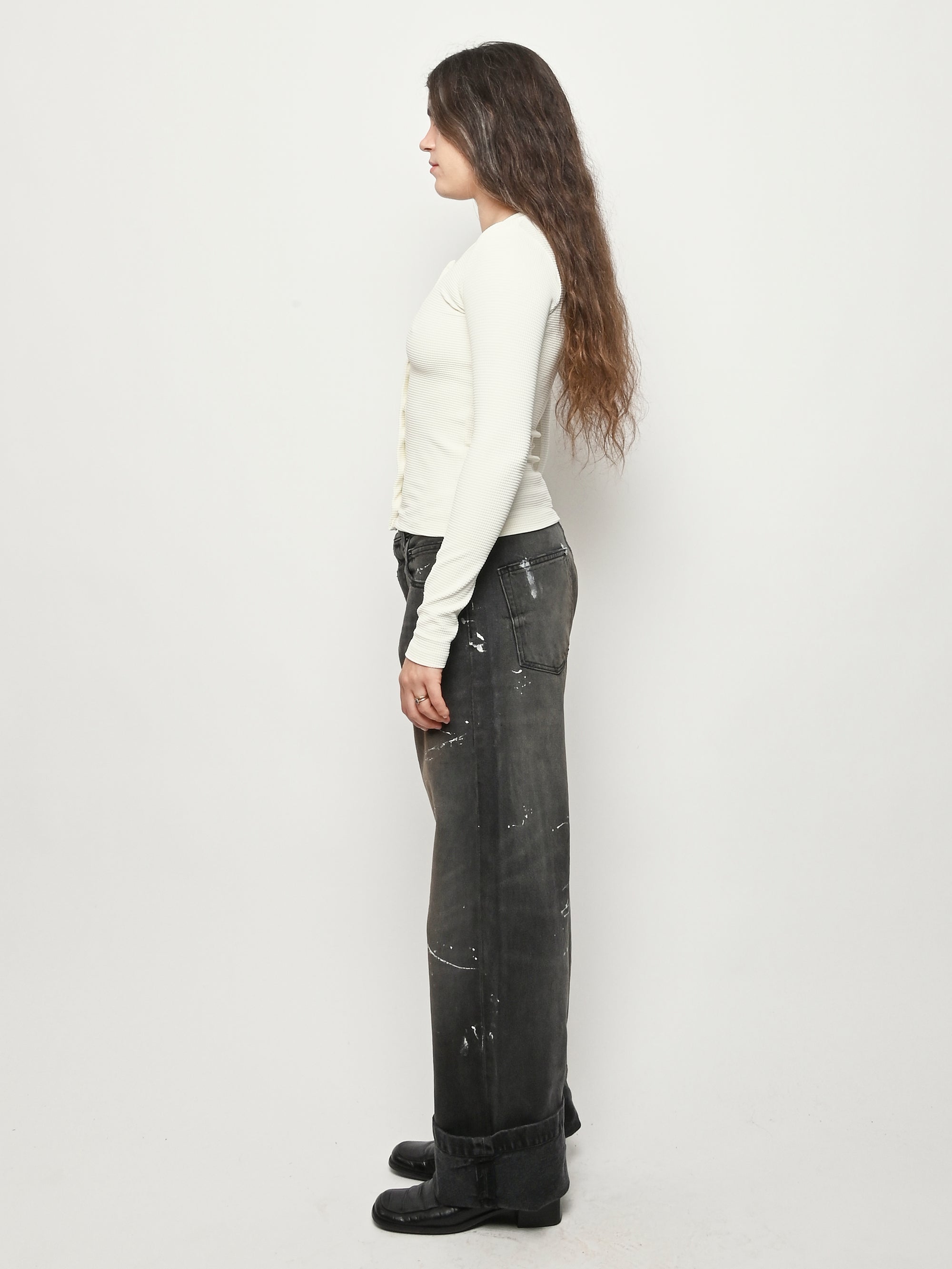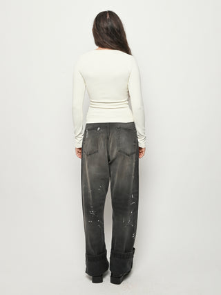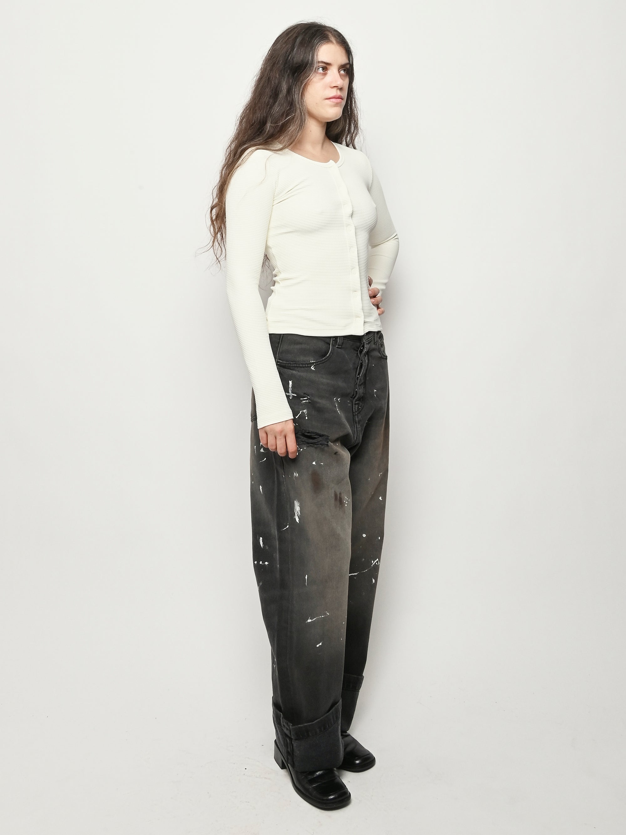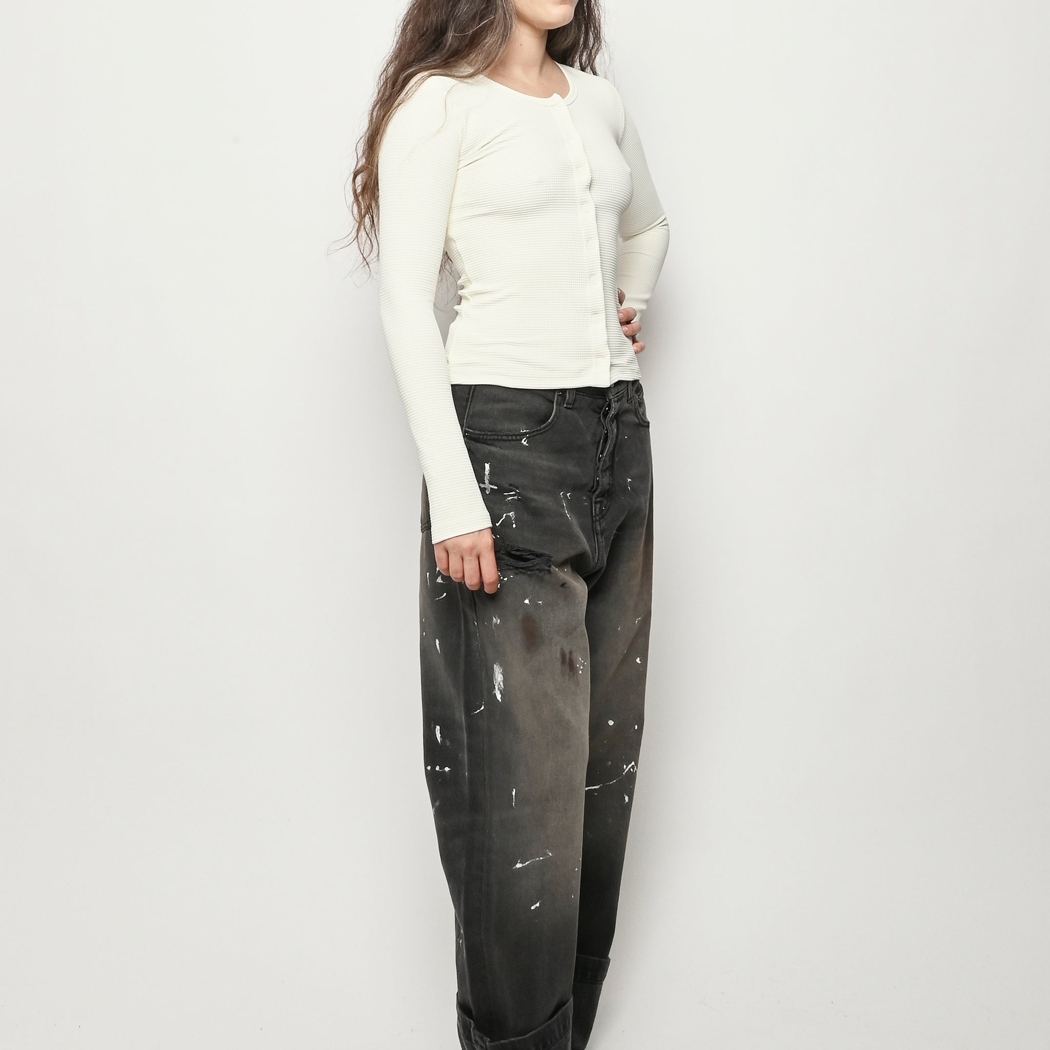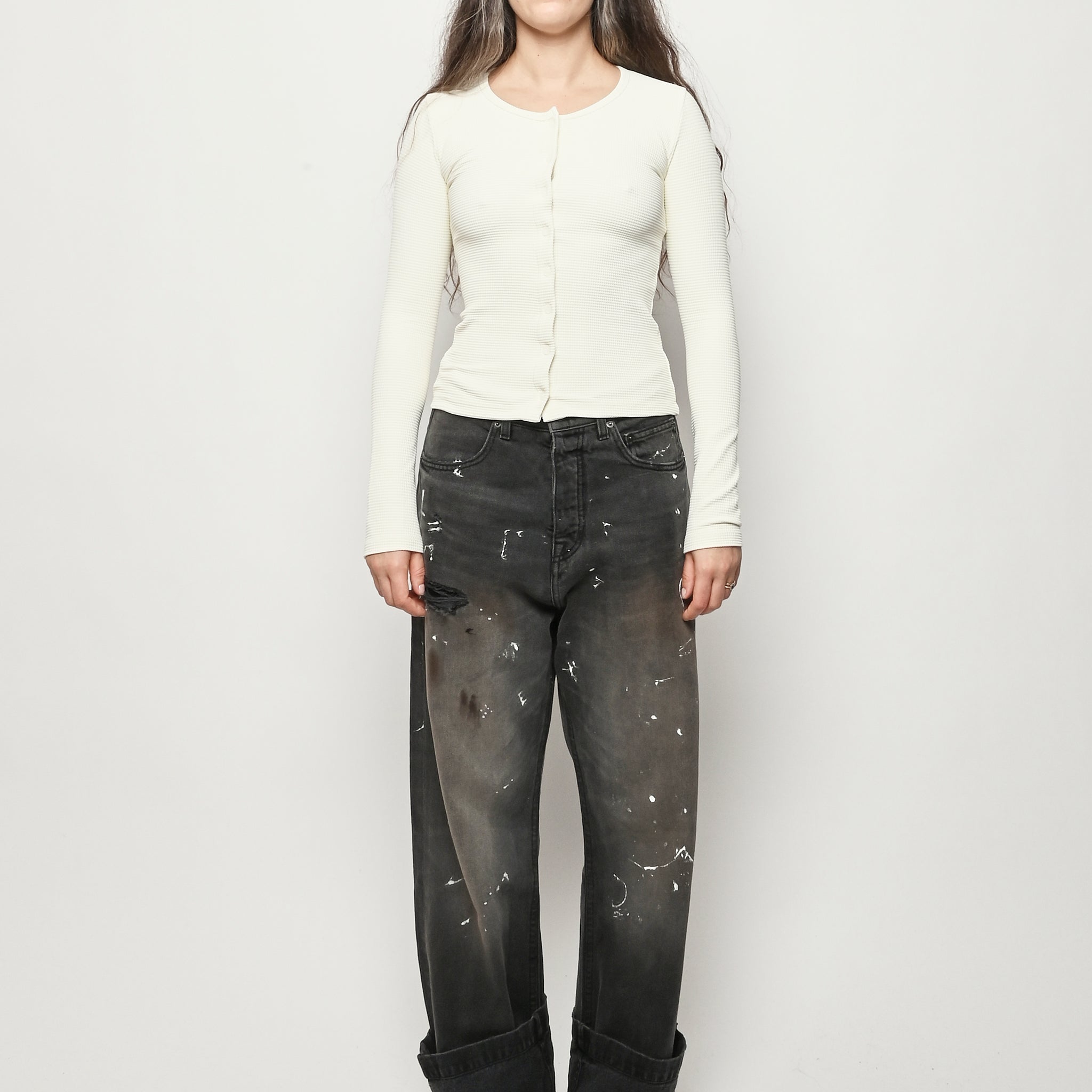A long sleeve cardigan with button-closure and a scooped neckline. Made in Los Angeles from a high end thermal spandex which features just the right amount of stretch.