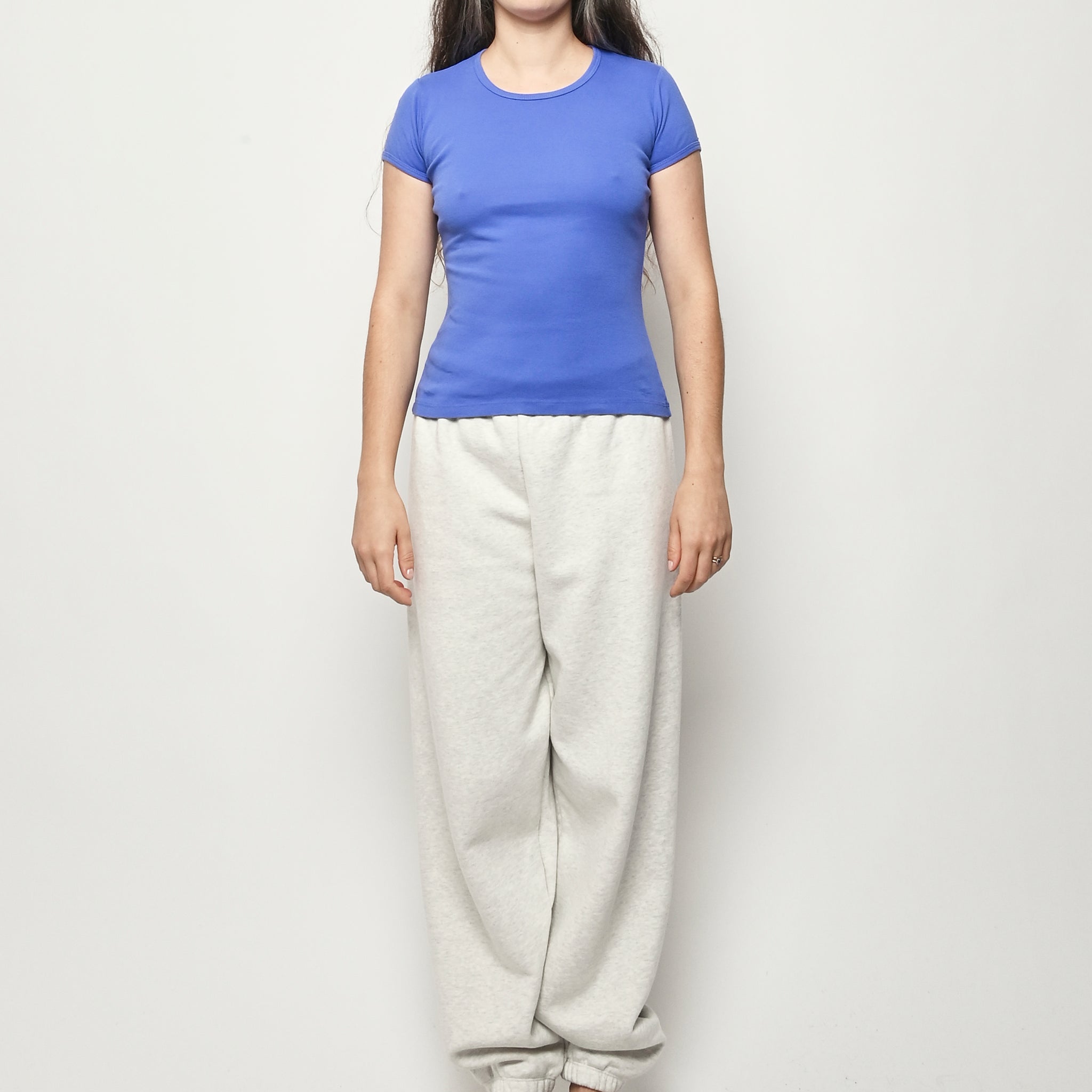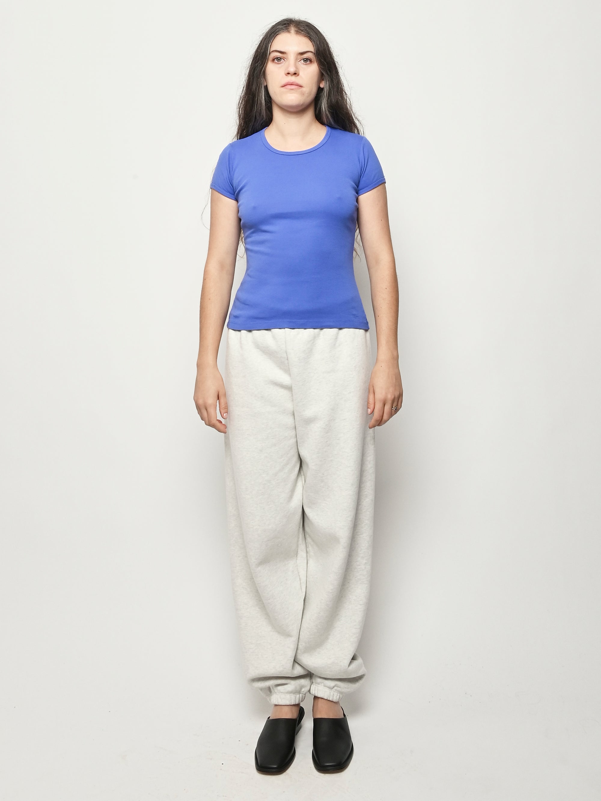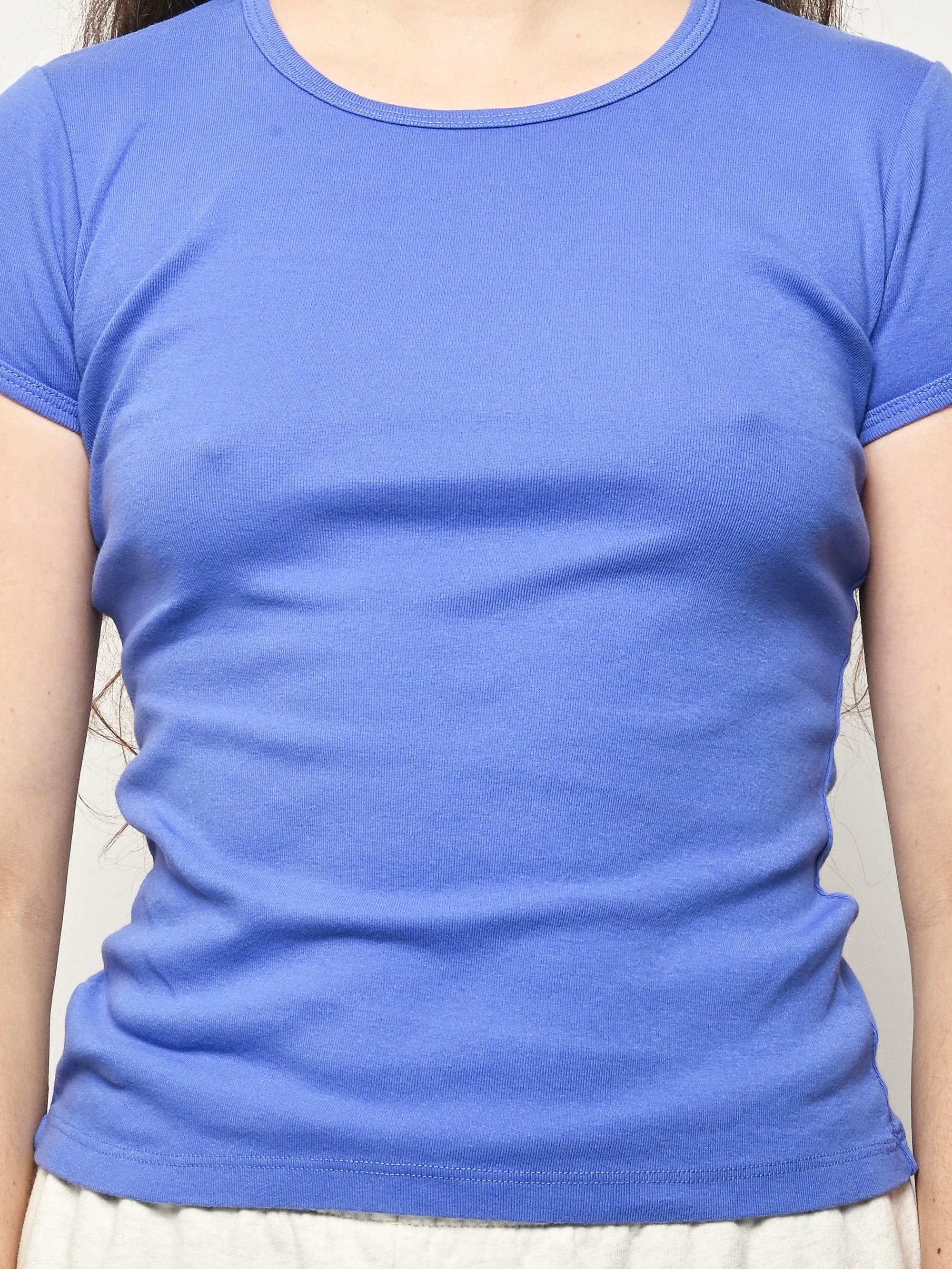 A classic short-sleeve tee made from super soft cotton baby rib. Flattering and form-fitting, it’s the perfect length to tuck into a high waist, or not. Made in USA from custom knit, locally sourced materials.