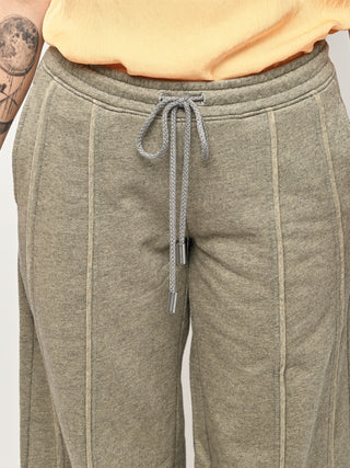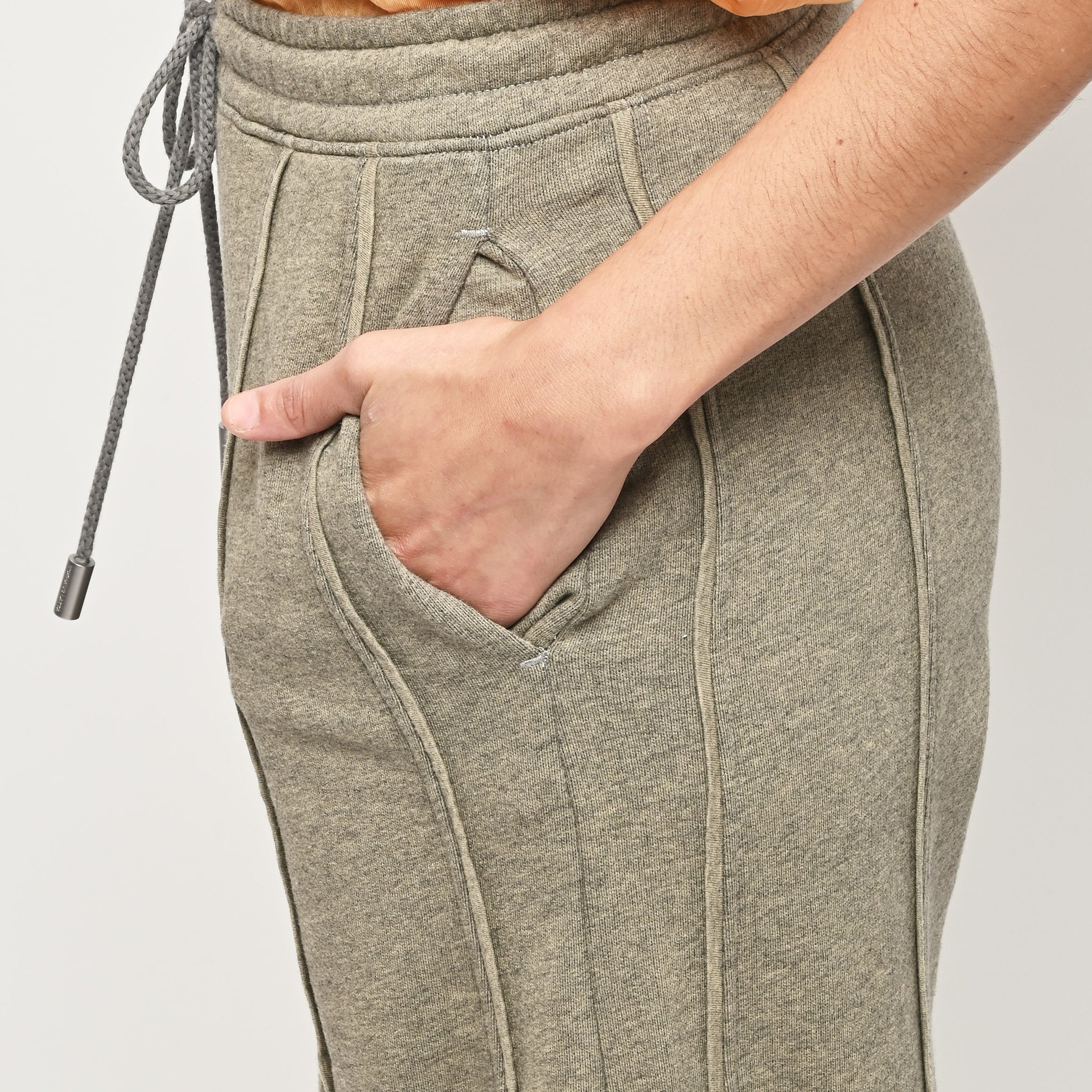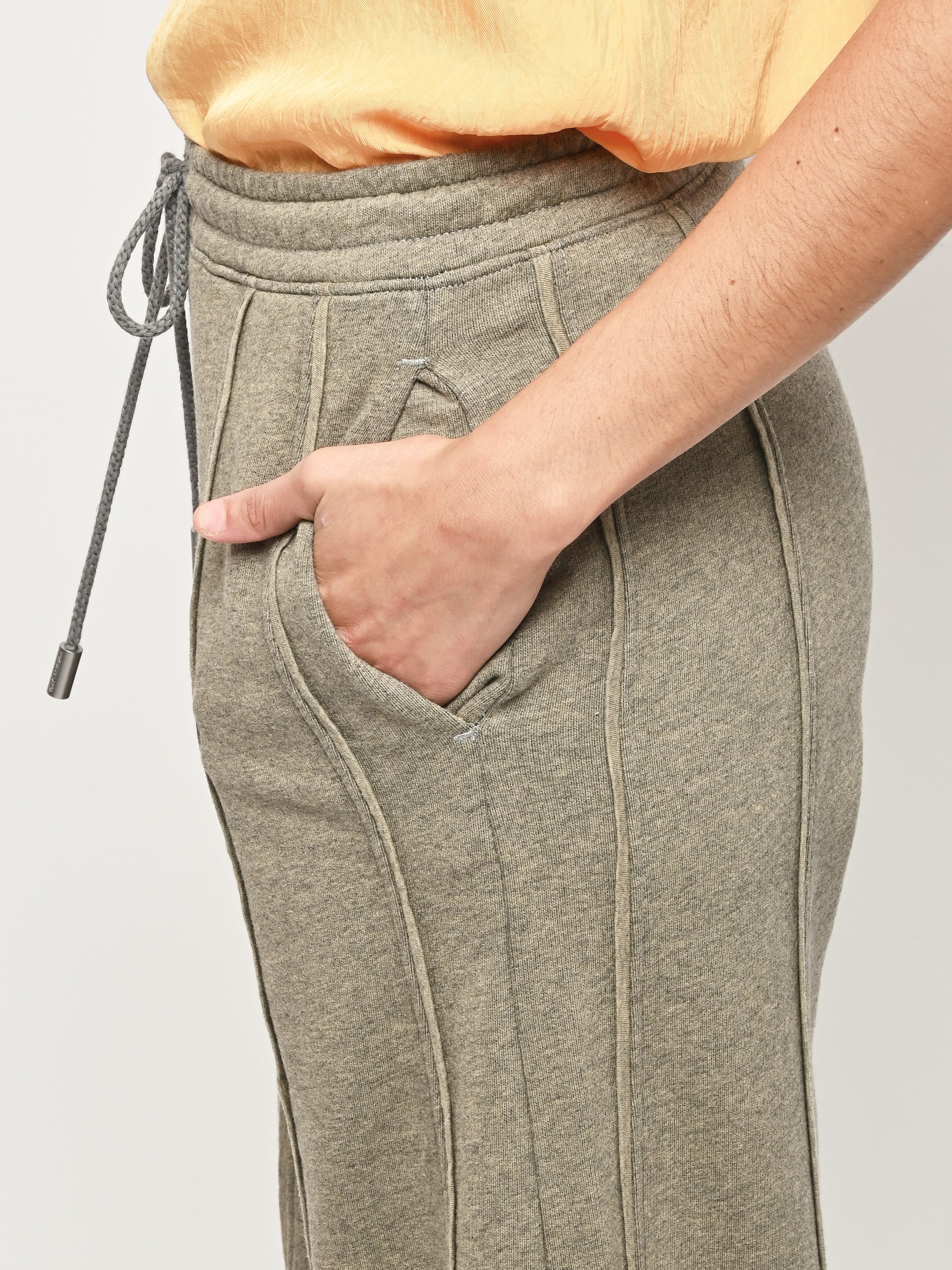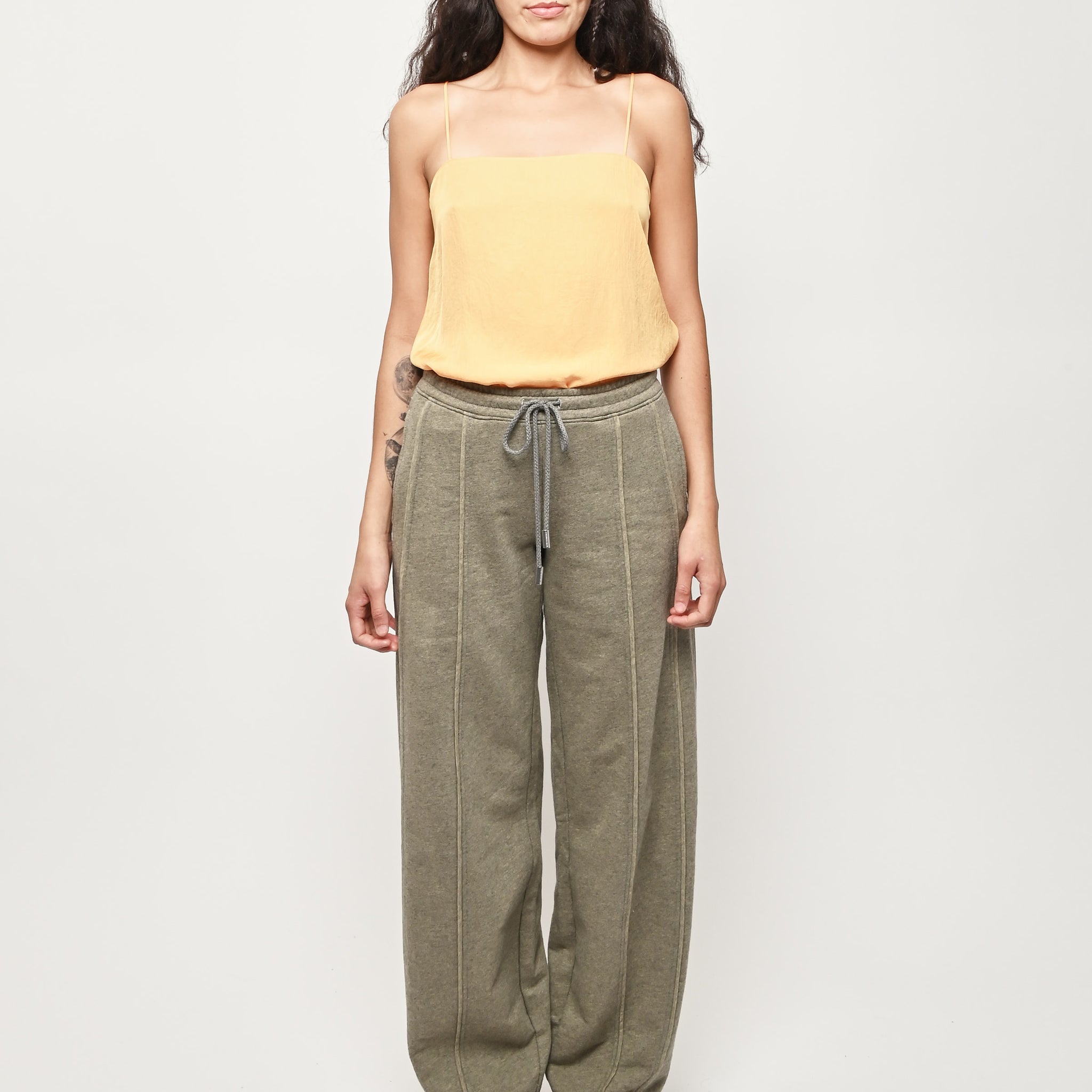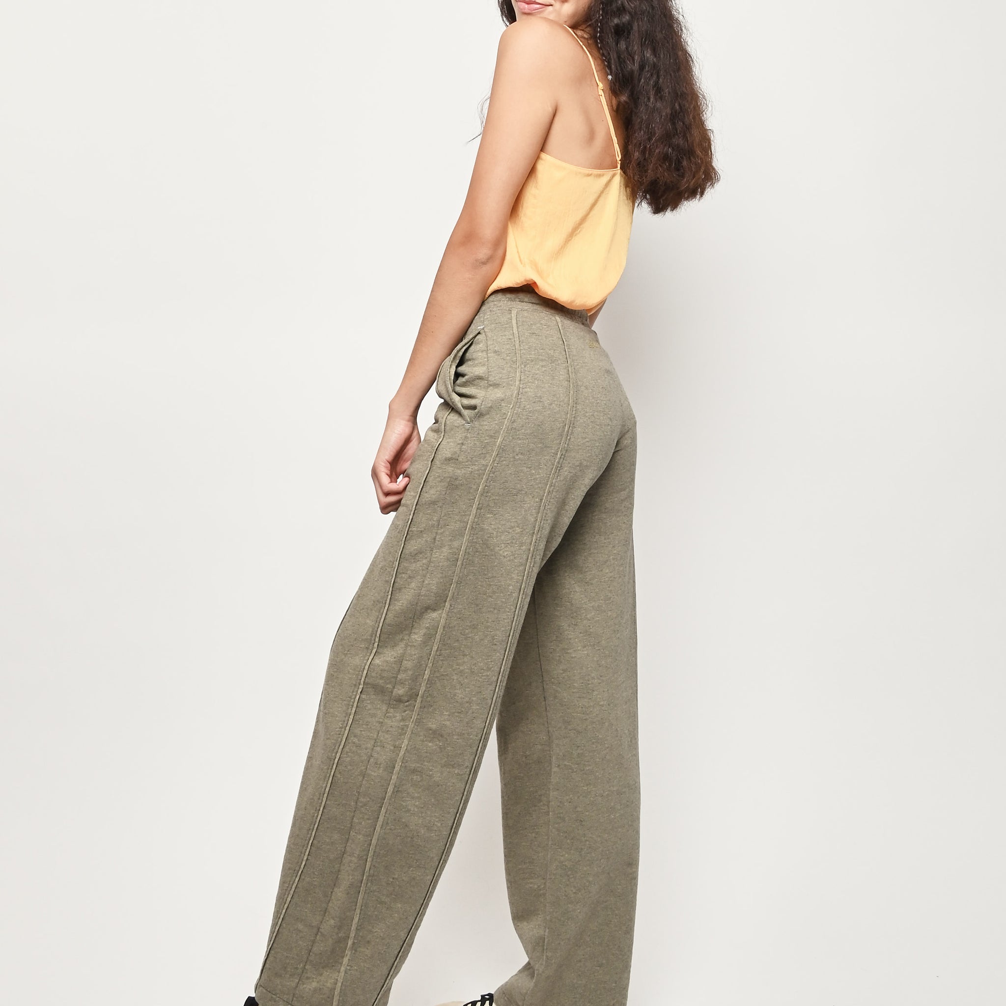 Mid-rise sweatpants in a heather grey fleece with a wide-leg. Overdyed a pale khaki for a vintage look and finished with a glossy green ""Eckhaus Latta"" logo on the rear.