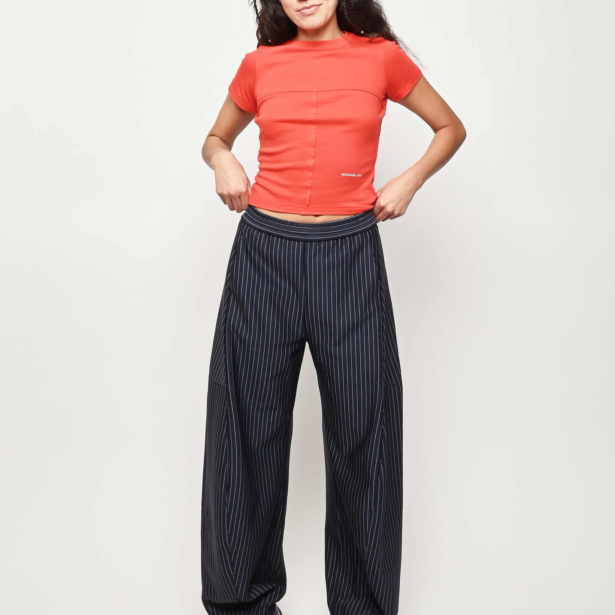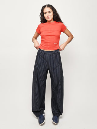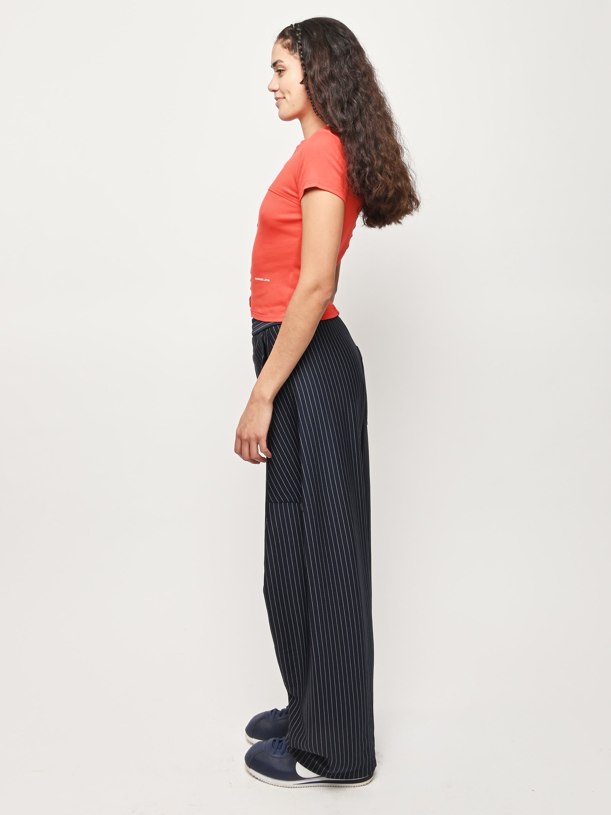 Complete the look: Tibi Navy/Multi Pinstripe Active Knit Winslow Pant