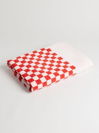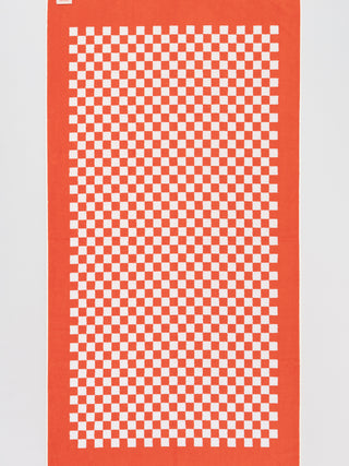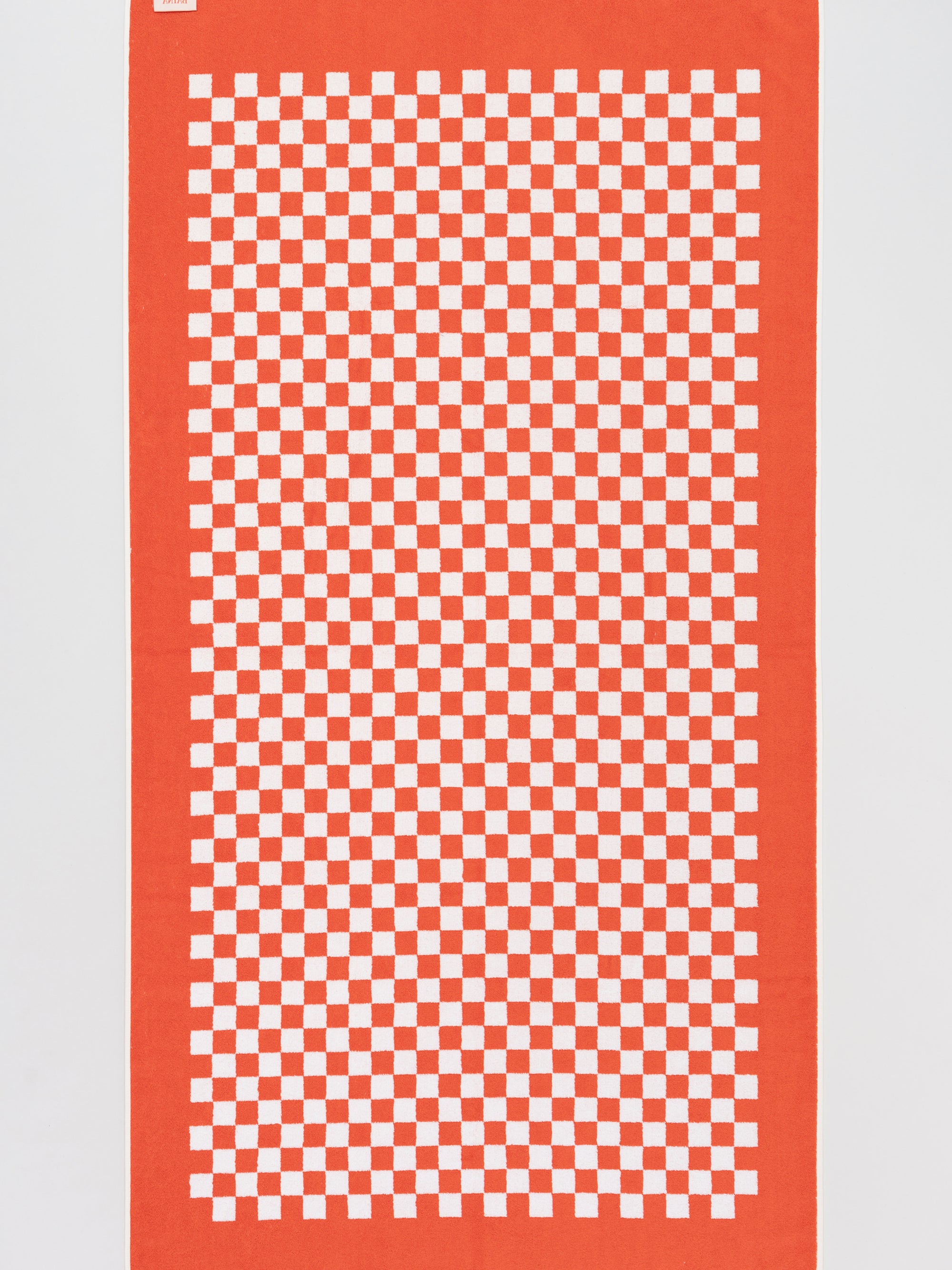 100% Organic Cotton pool towel or beach towel. This playful towel in checkerboard print is synonymous with the BAINA brand, and features a reversible colour-way. Contrasting against Ecru, the bright Paloma Sun checkerboard makes a statement in any bathroom or on any beach.