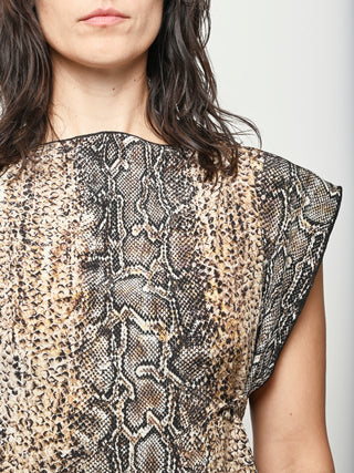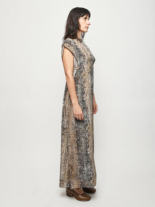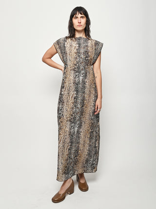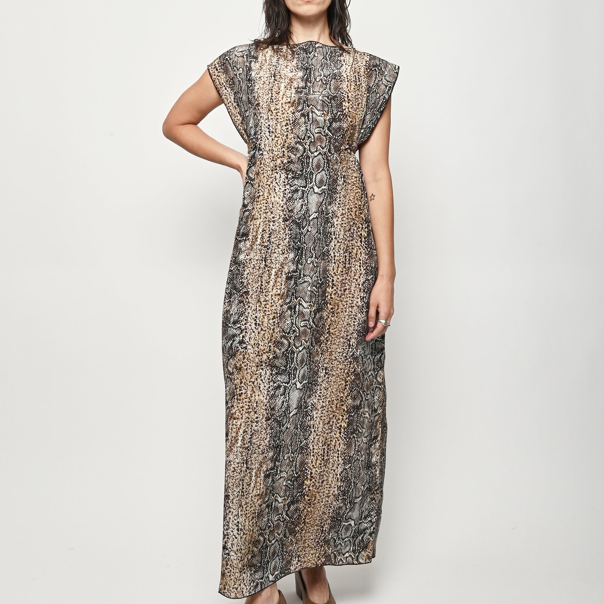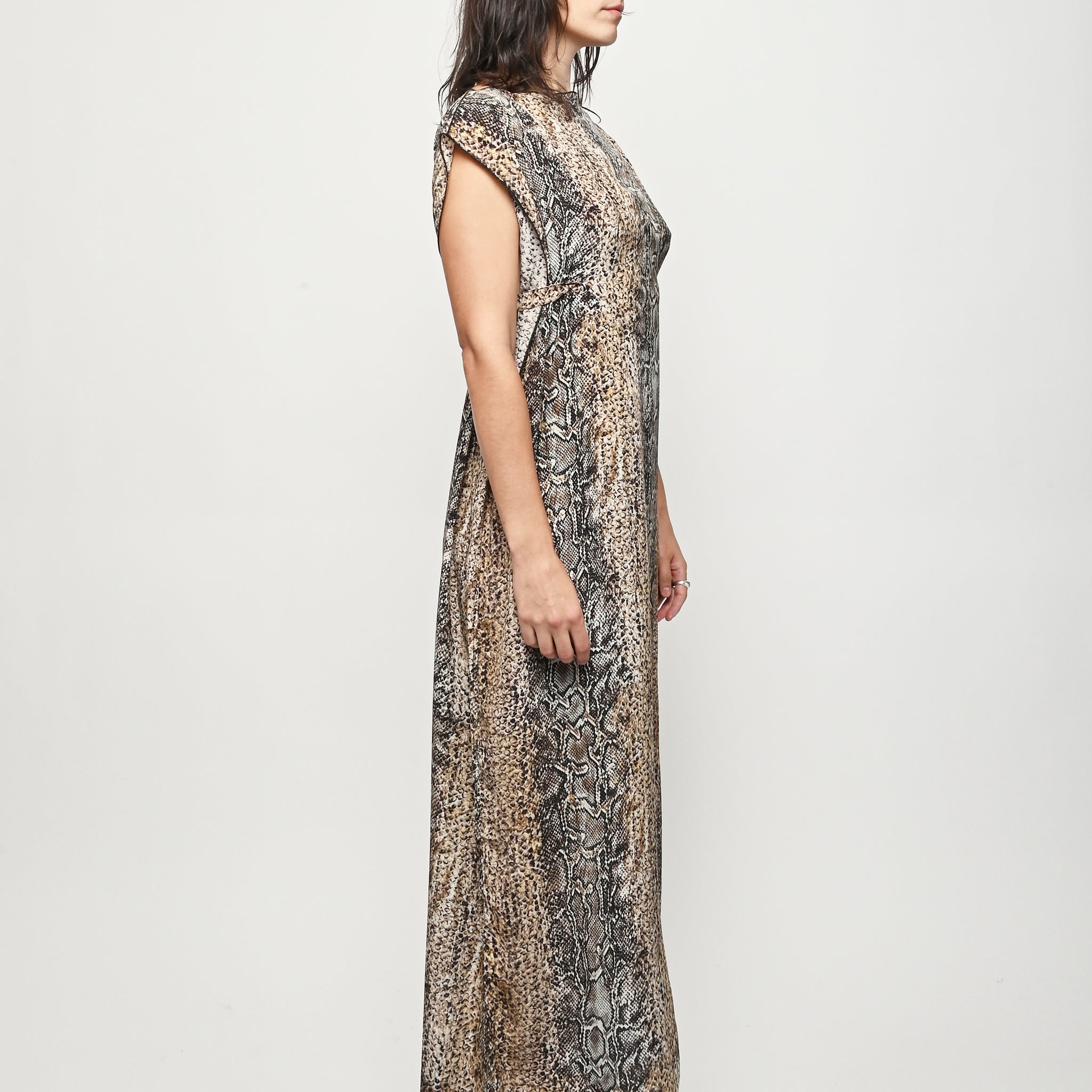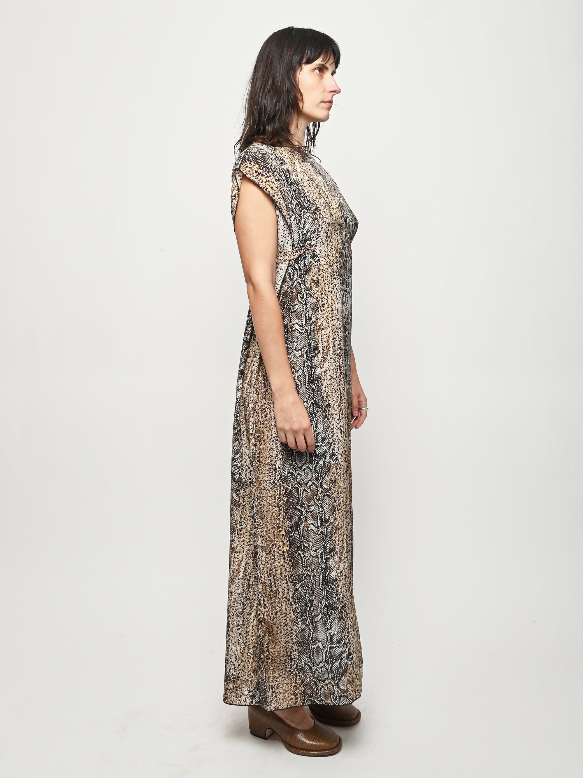 Silk crepe dress by Baserange featuring an allover snake print. This style can be worn multiple ways.