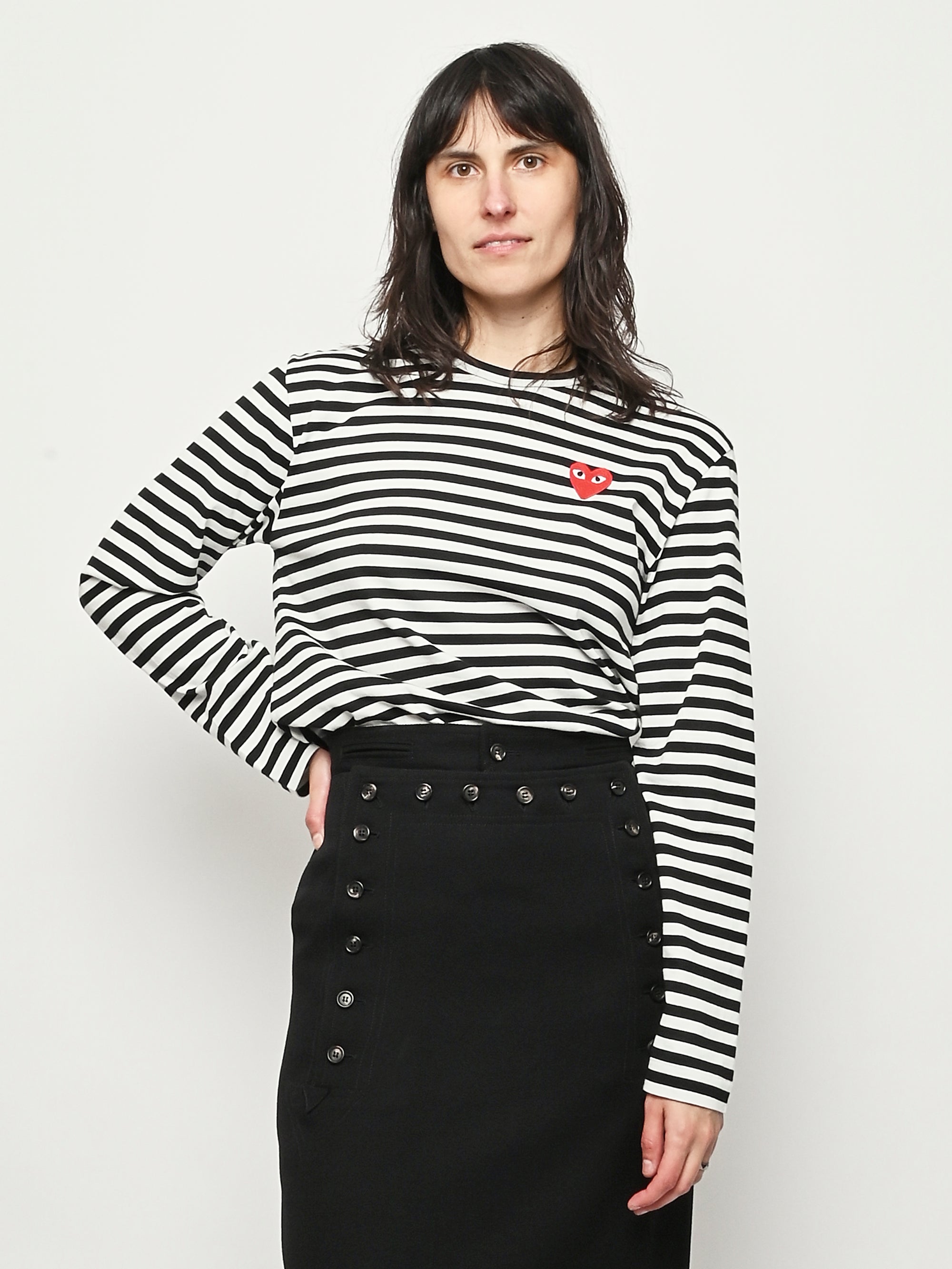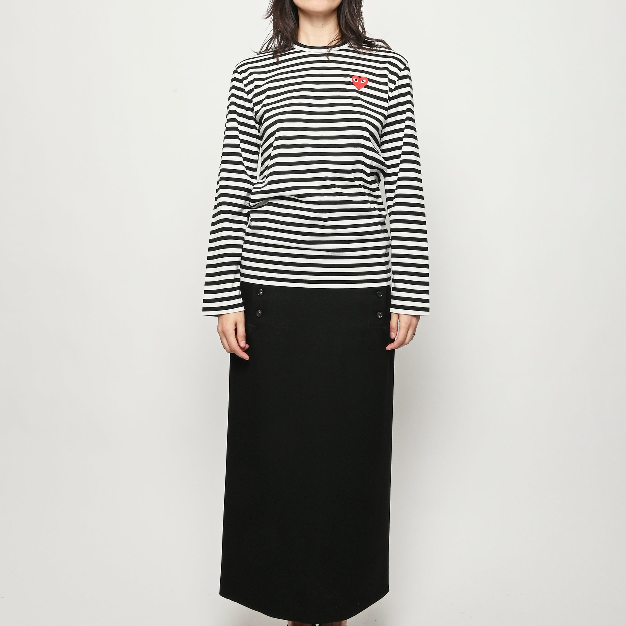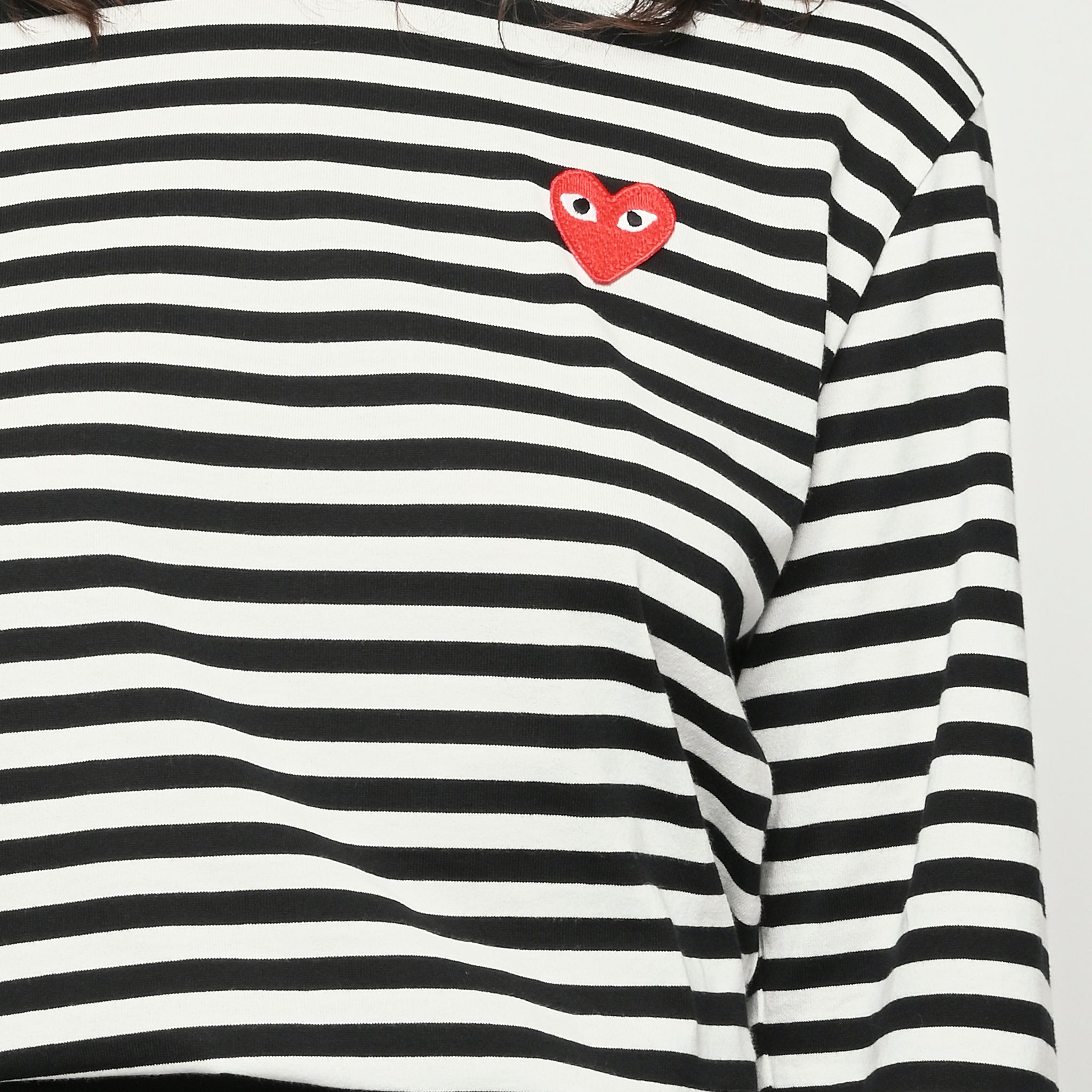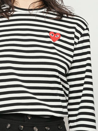 Black/white red heart Play striped long sleeved t-shirt by Comme Des Garçons PLAY.