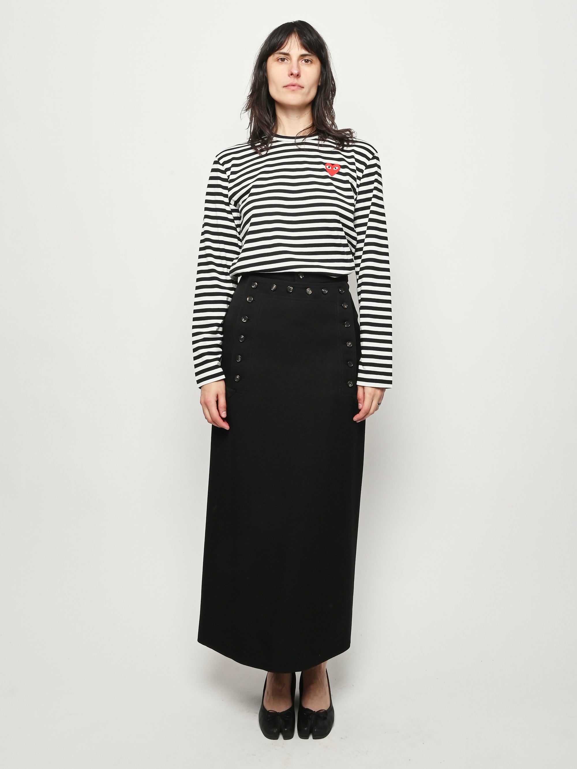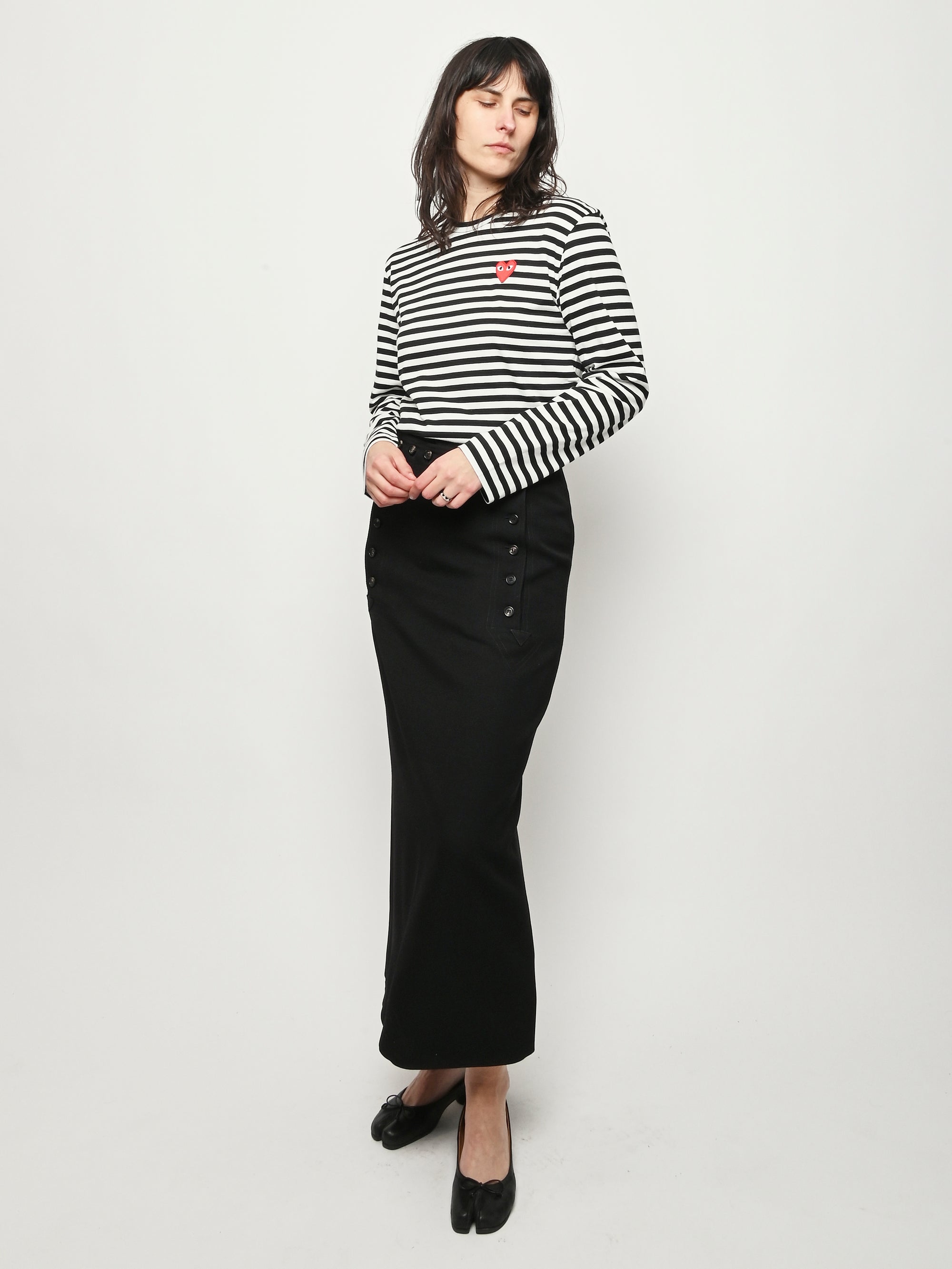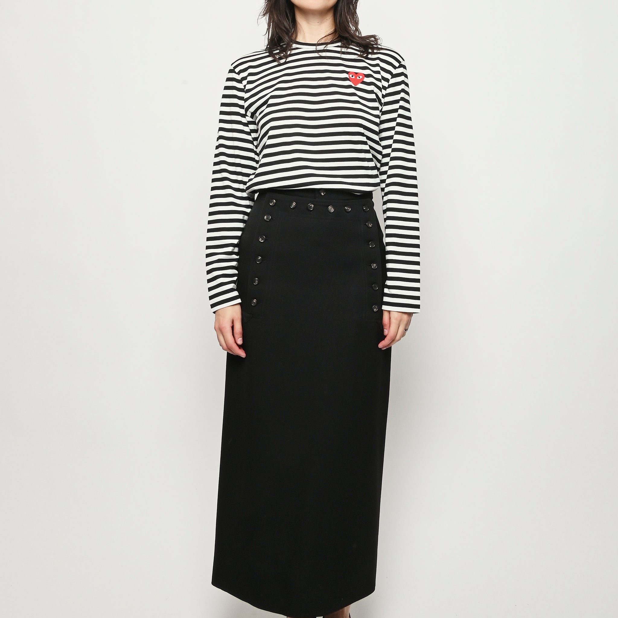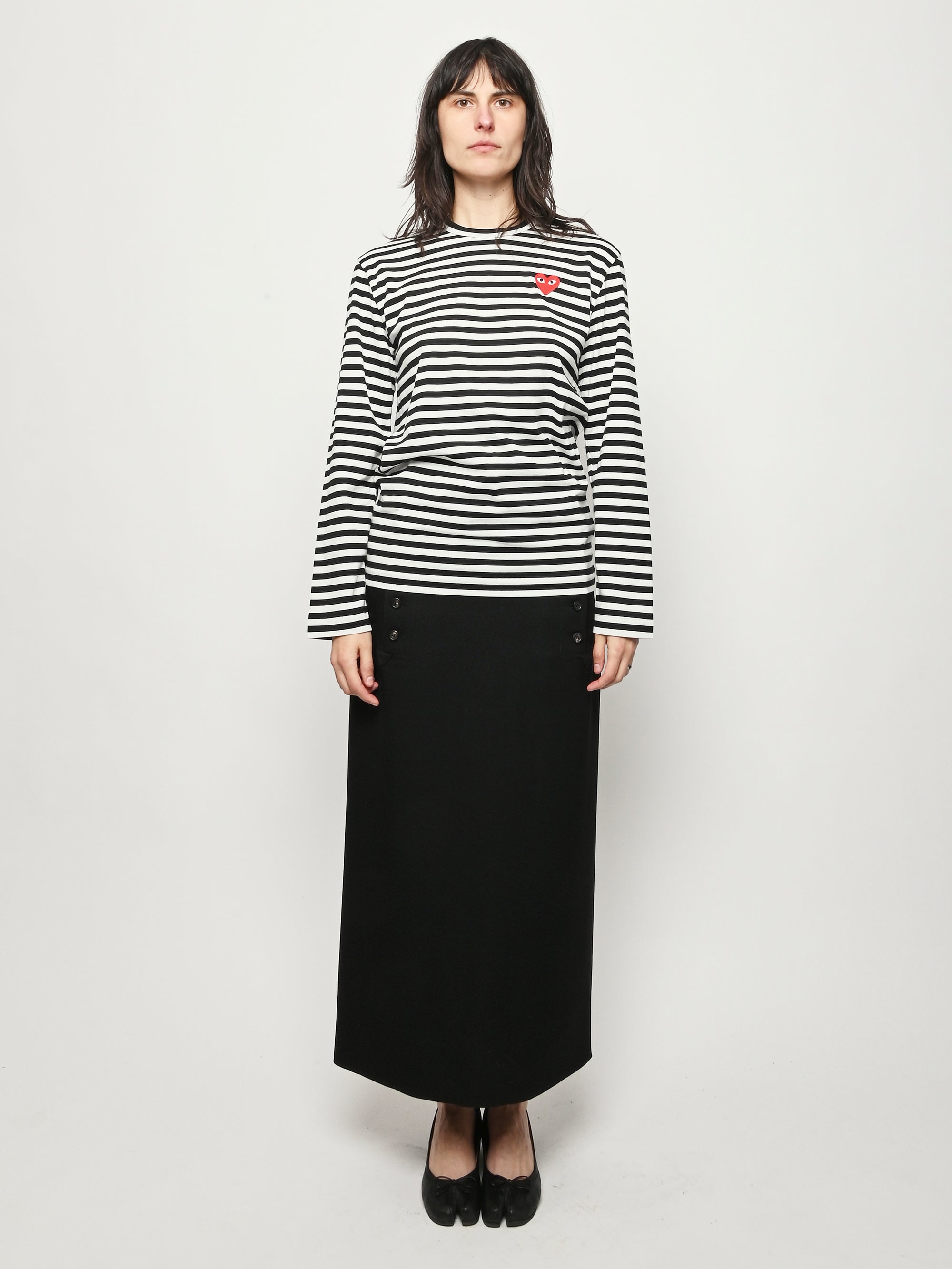 Black/white red heart Play striped long sleeved t-shirt by Comme Des Garçons PLAY.