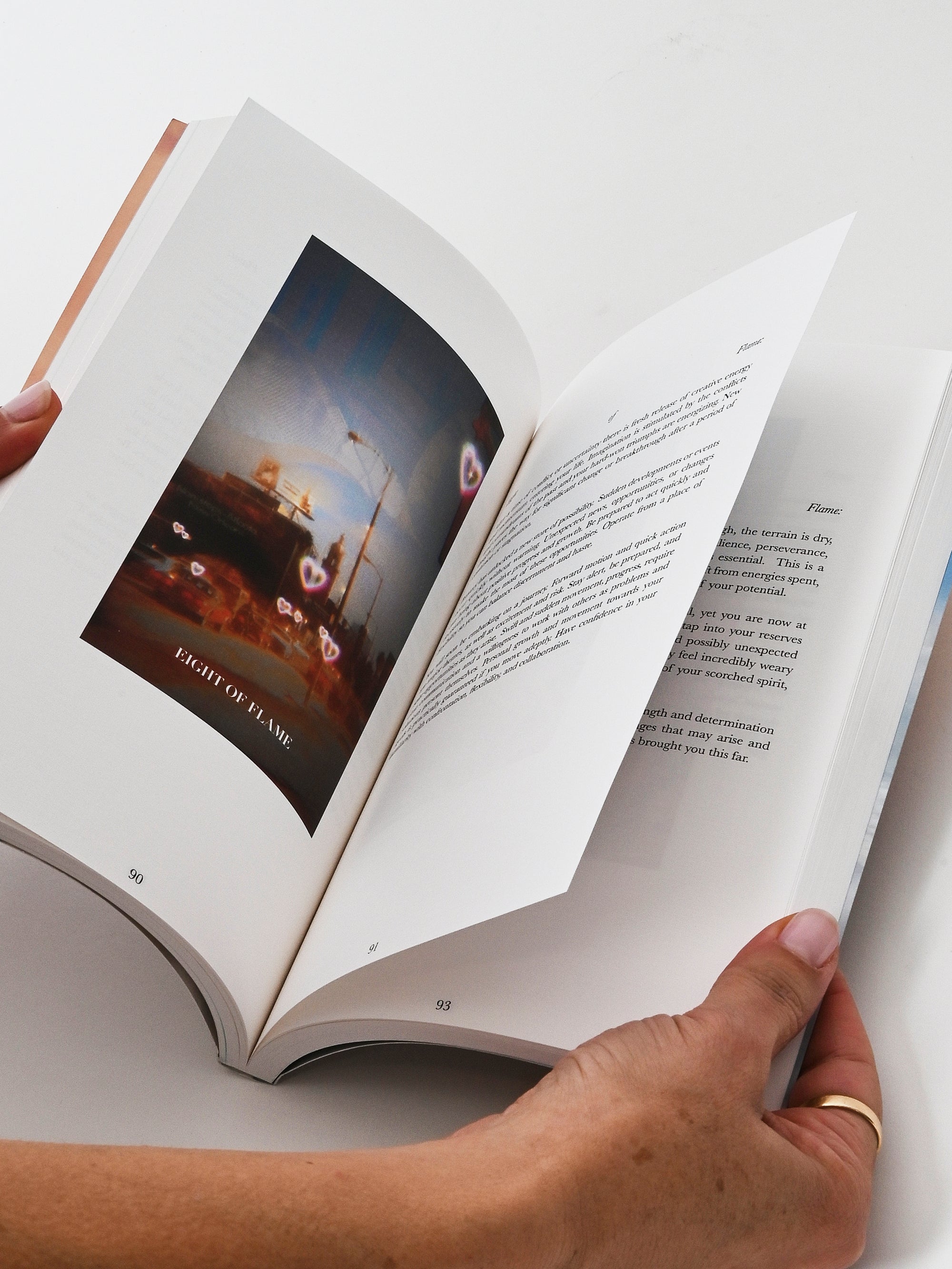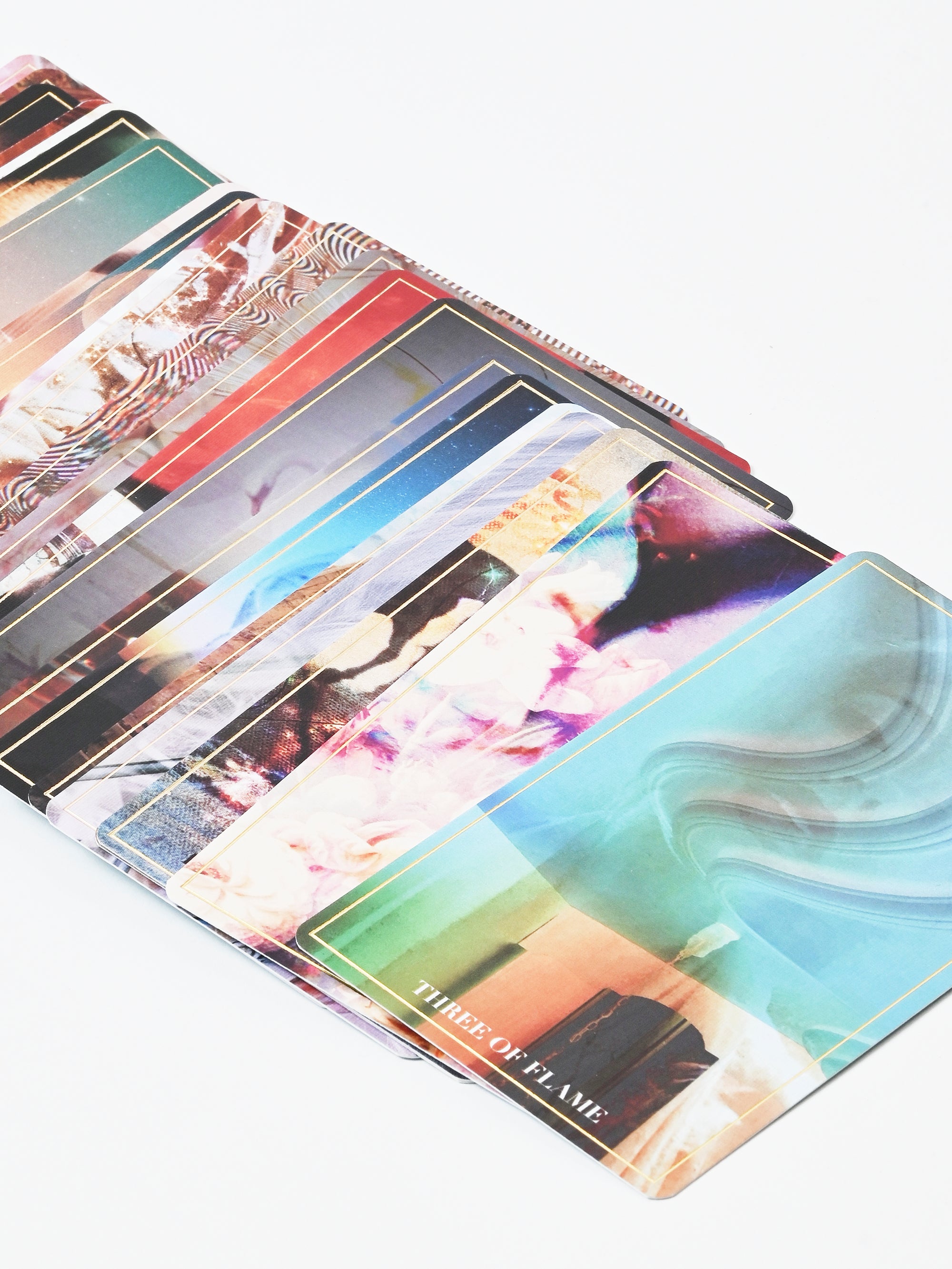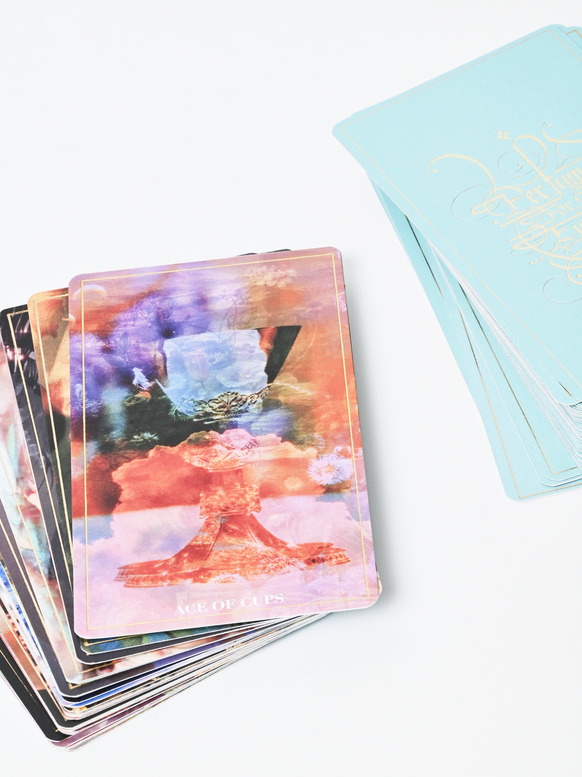 Perfume for the Eyes: A Tarot of Dreams. This set holds a full colour book and deck comprised of 78 visual perfumes based on the ancient art of tarot and the imagined art of visual perfumery created by Artist, Astrologer and Tarot Reader, Danielle Delceppo. Each box is gilded with gold leaf, printed on heavy 16pt silk linen stock and hand perfumed by the artist.