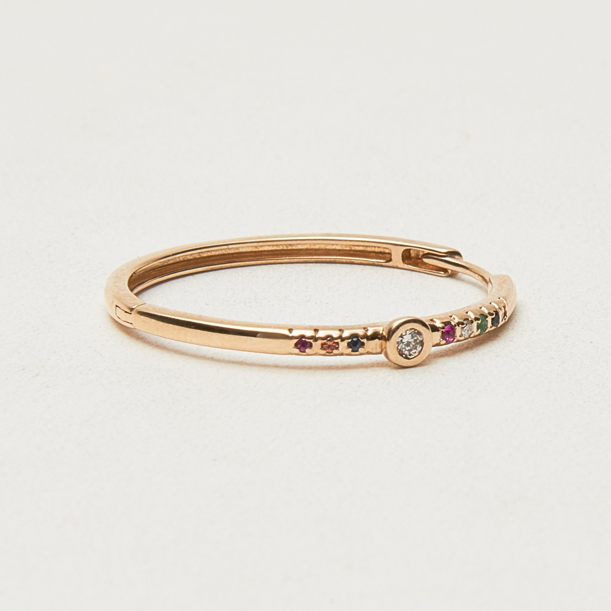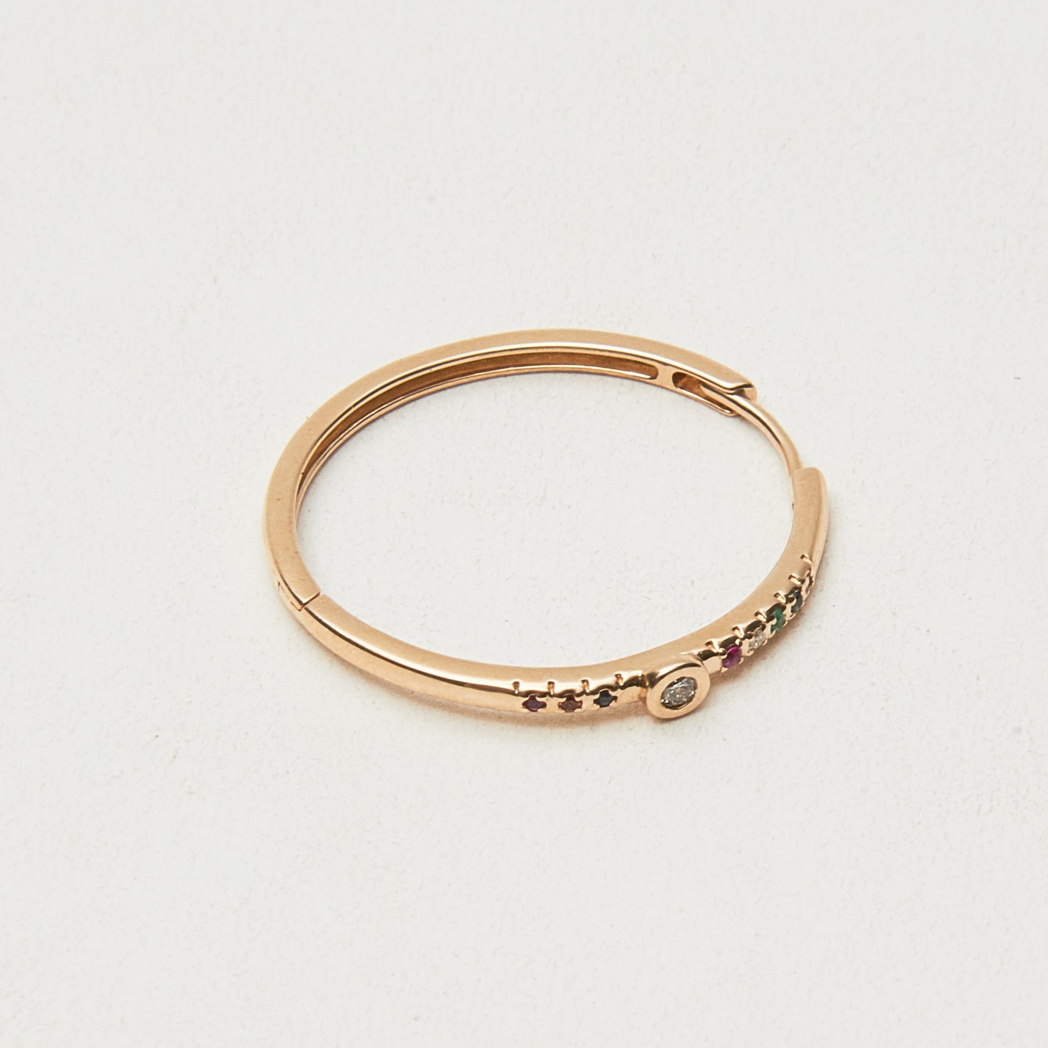Diamond Bezel Rainbow Gem Hoop (Single)