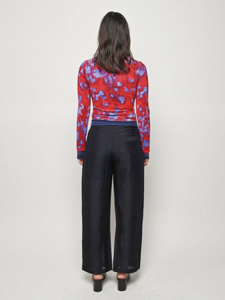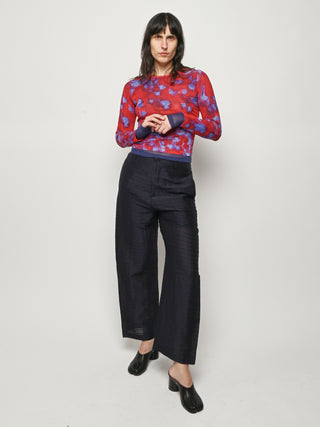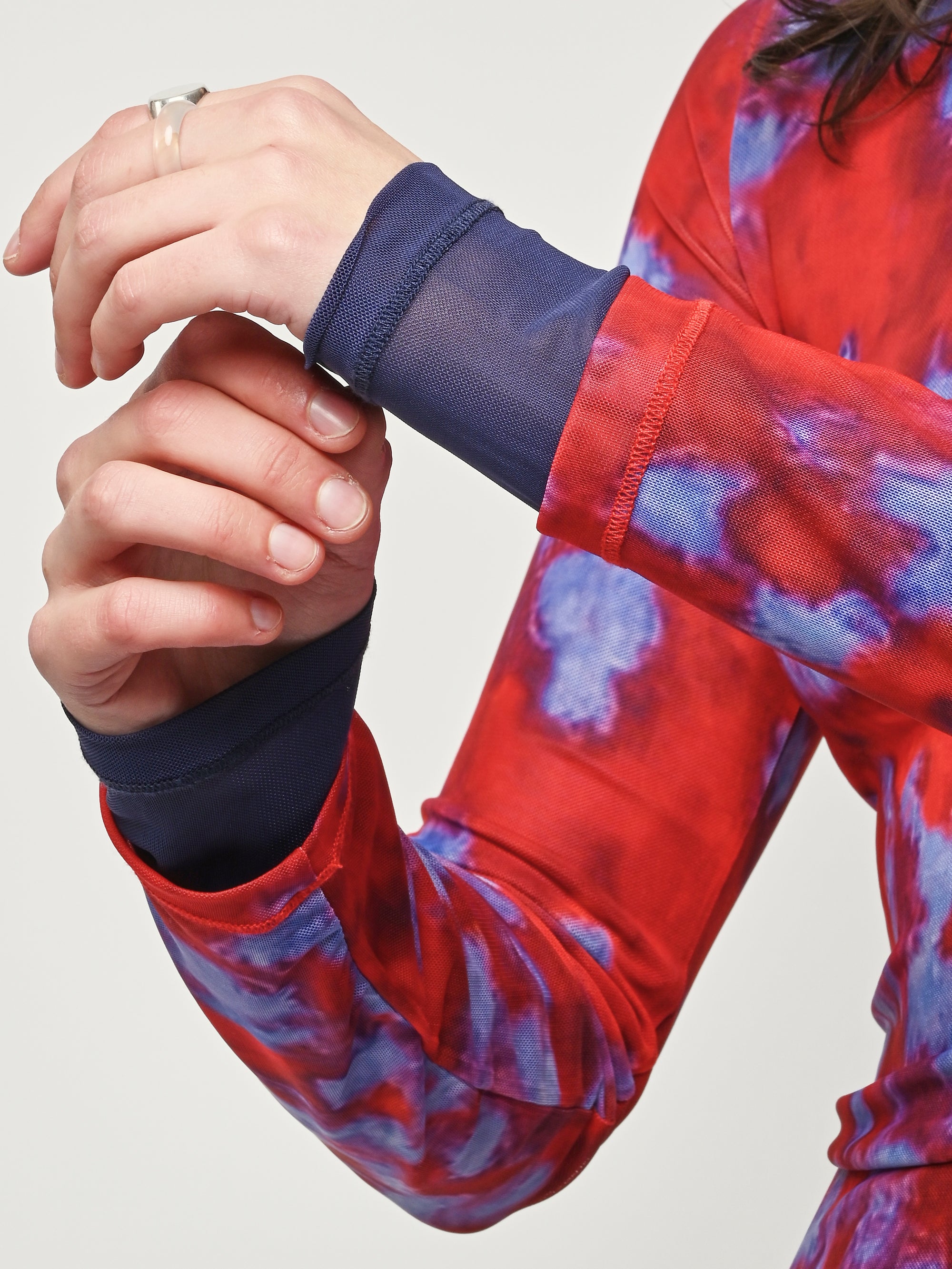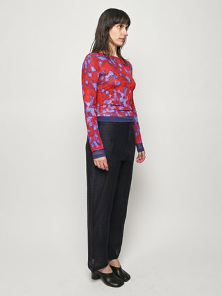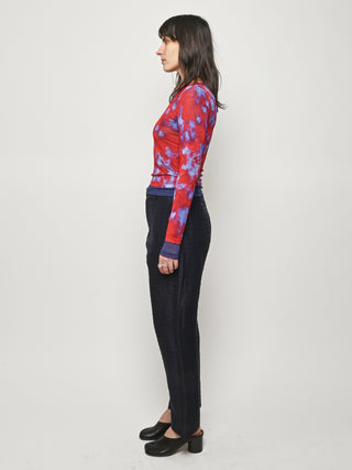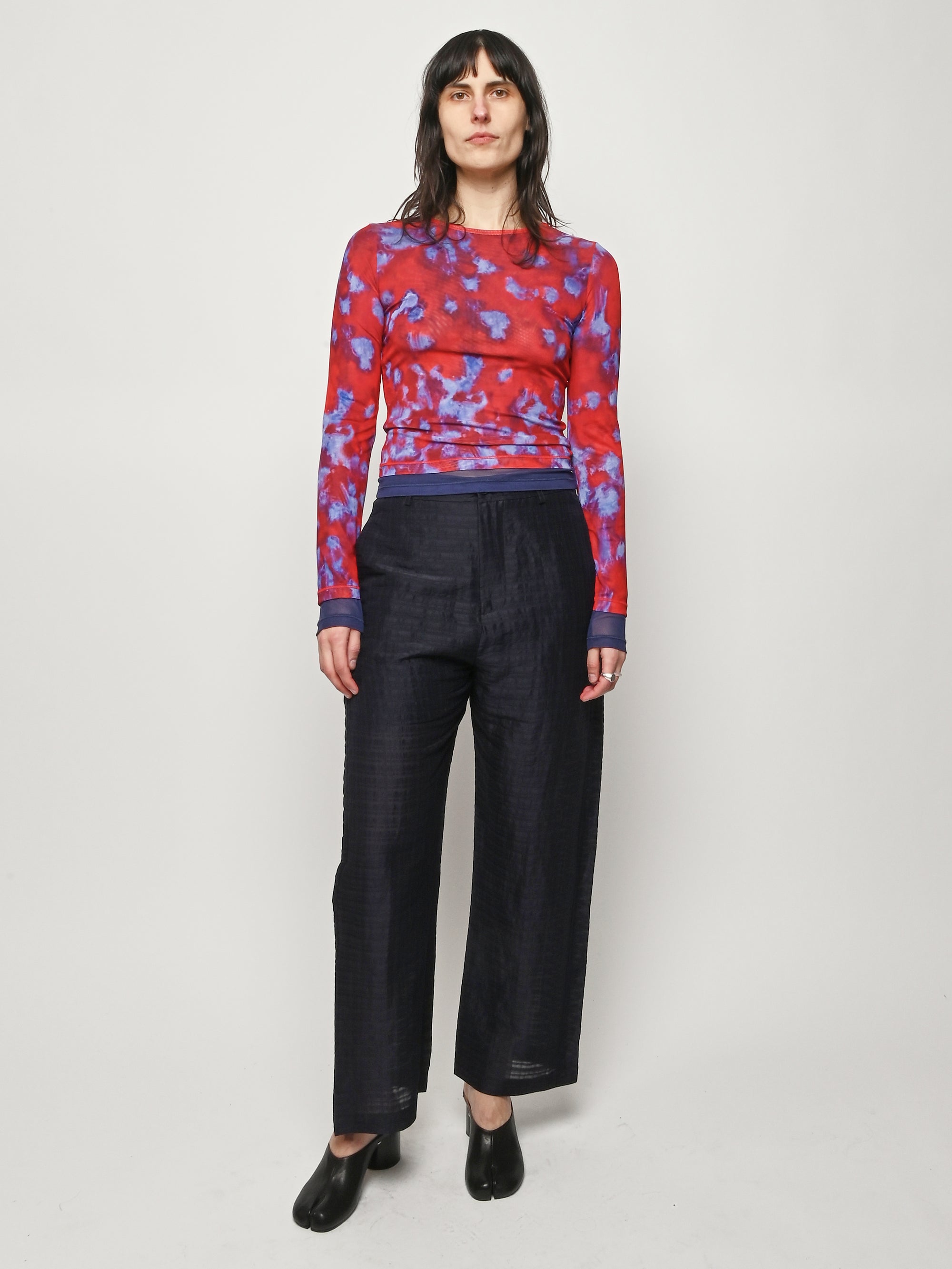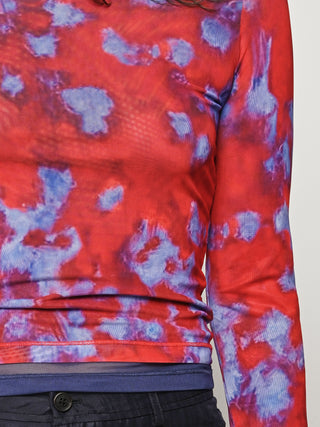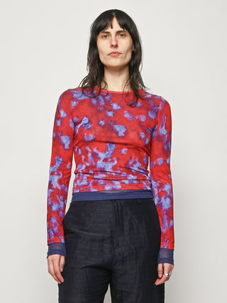 Slim-fitting, long-sleeve crewneck top by Eckhaus Latta in double-layer digitally printed micro mesh, featuring a distinct all-over print on the top layer and a bottom layer that peeks out from the hem.