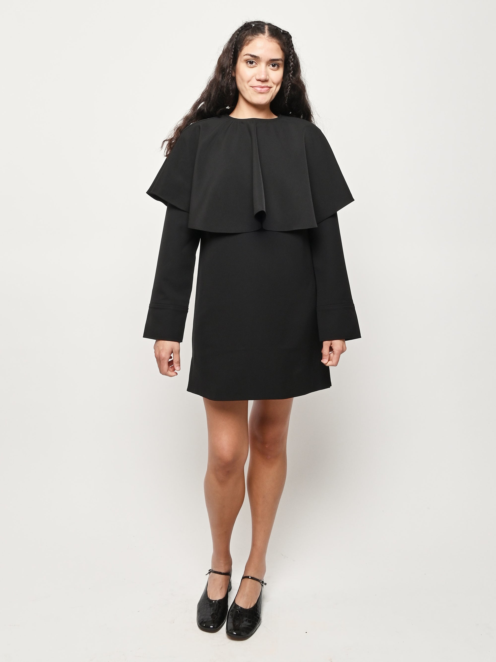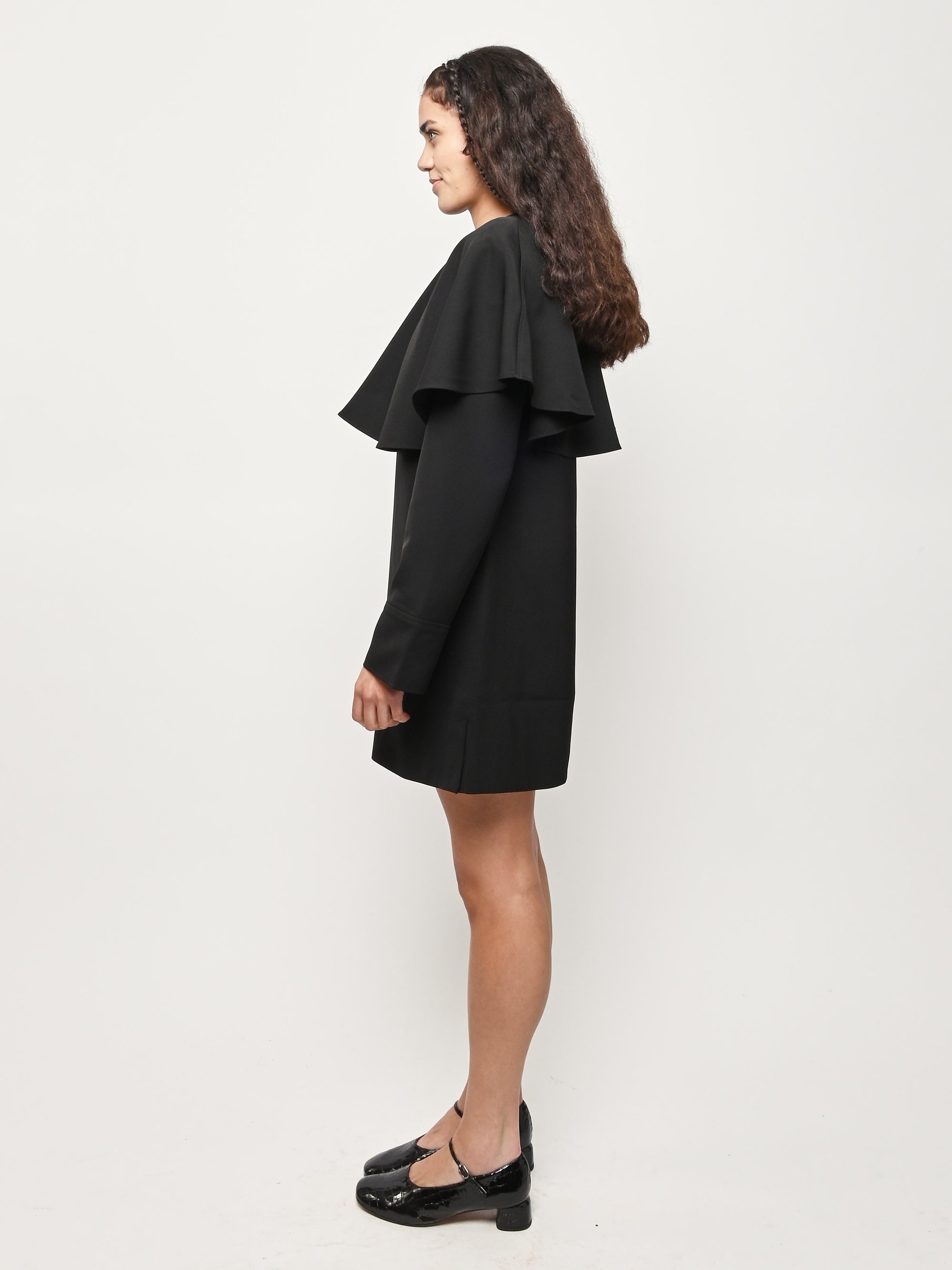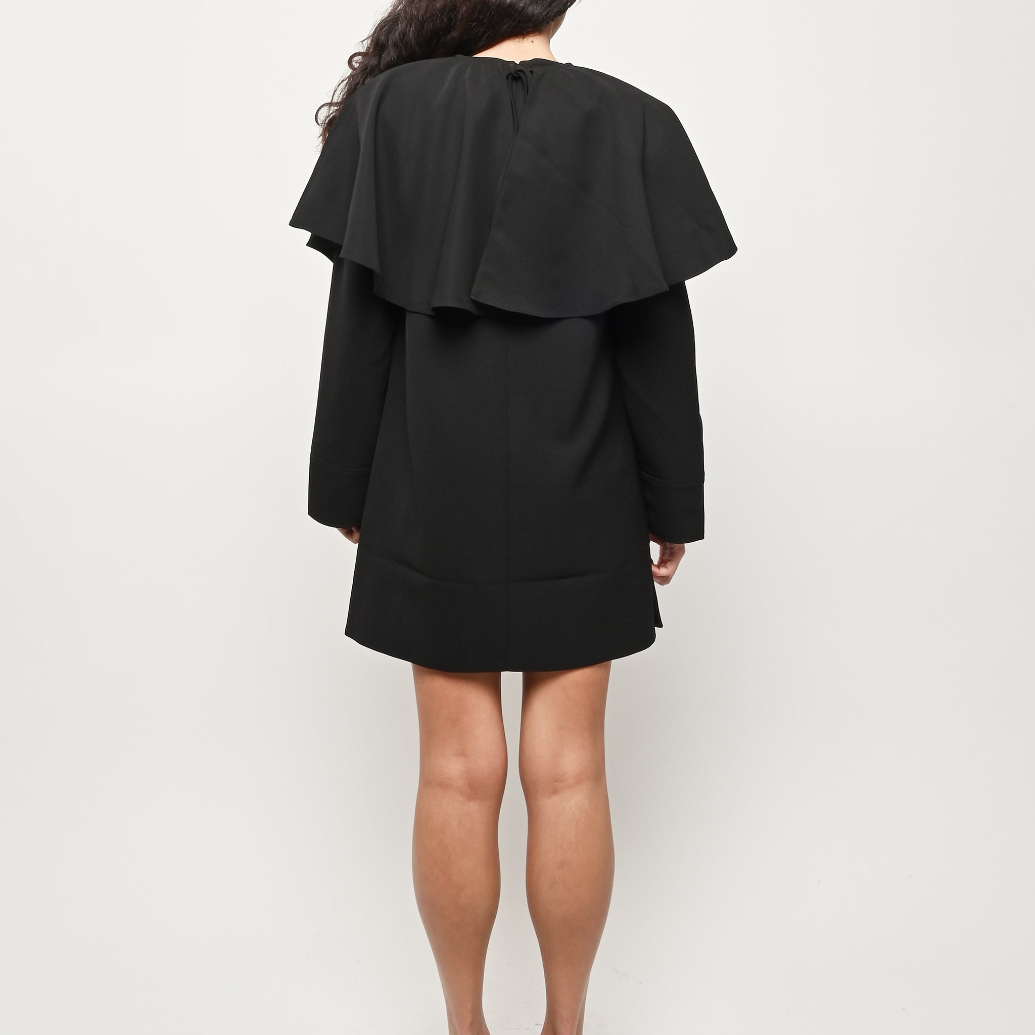 This Ganni mini dress features a removable circle collar, long sleeves with a wide cuff and a zipper closing at back.