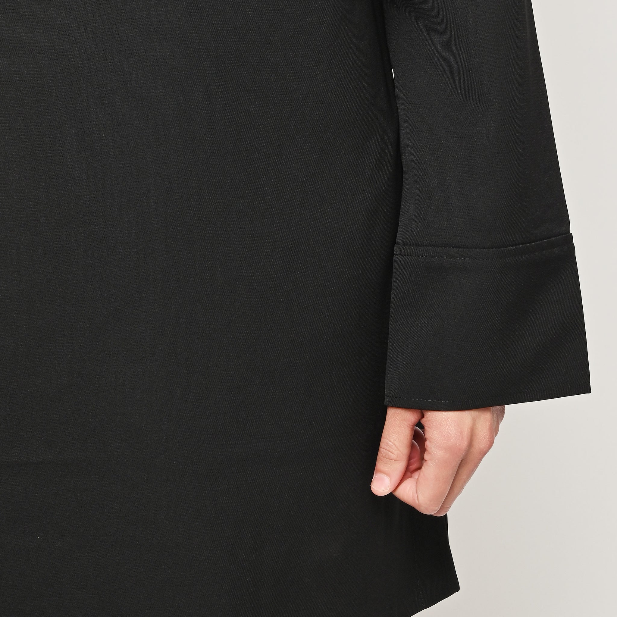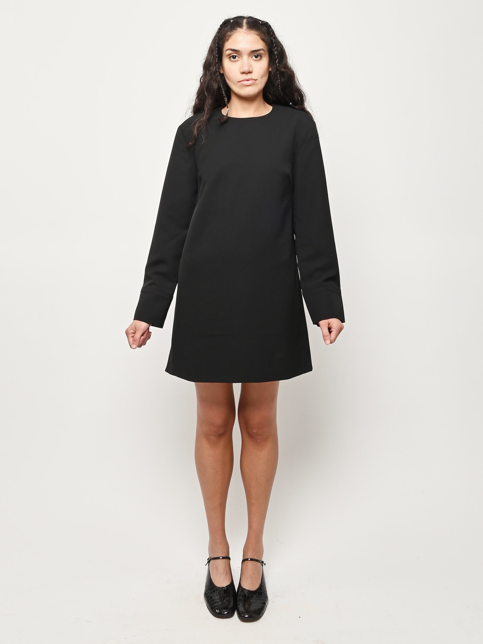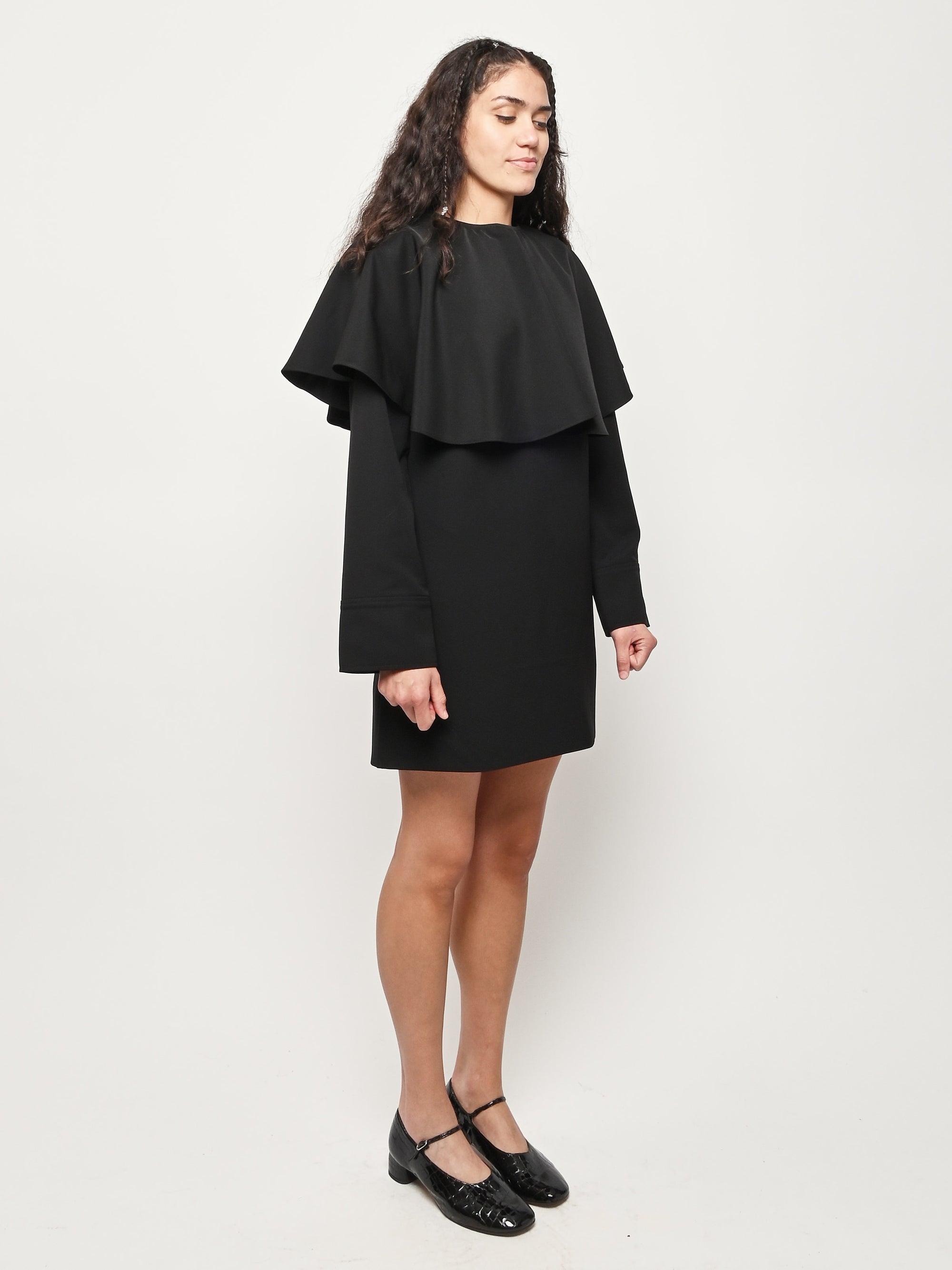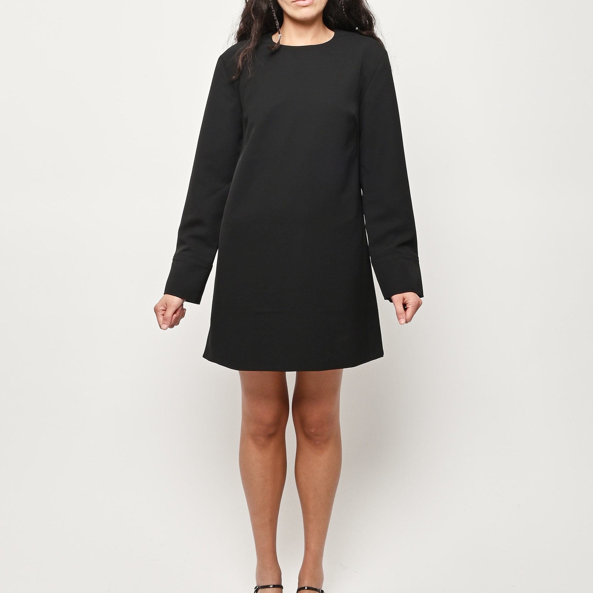 This Ganni mini dress features a removable circle collar, long sleeves with a wide cuff and a zipper closing at back.