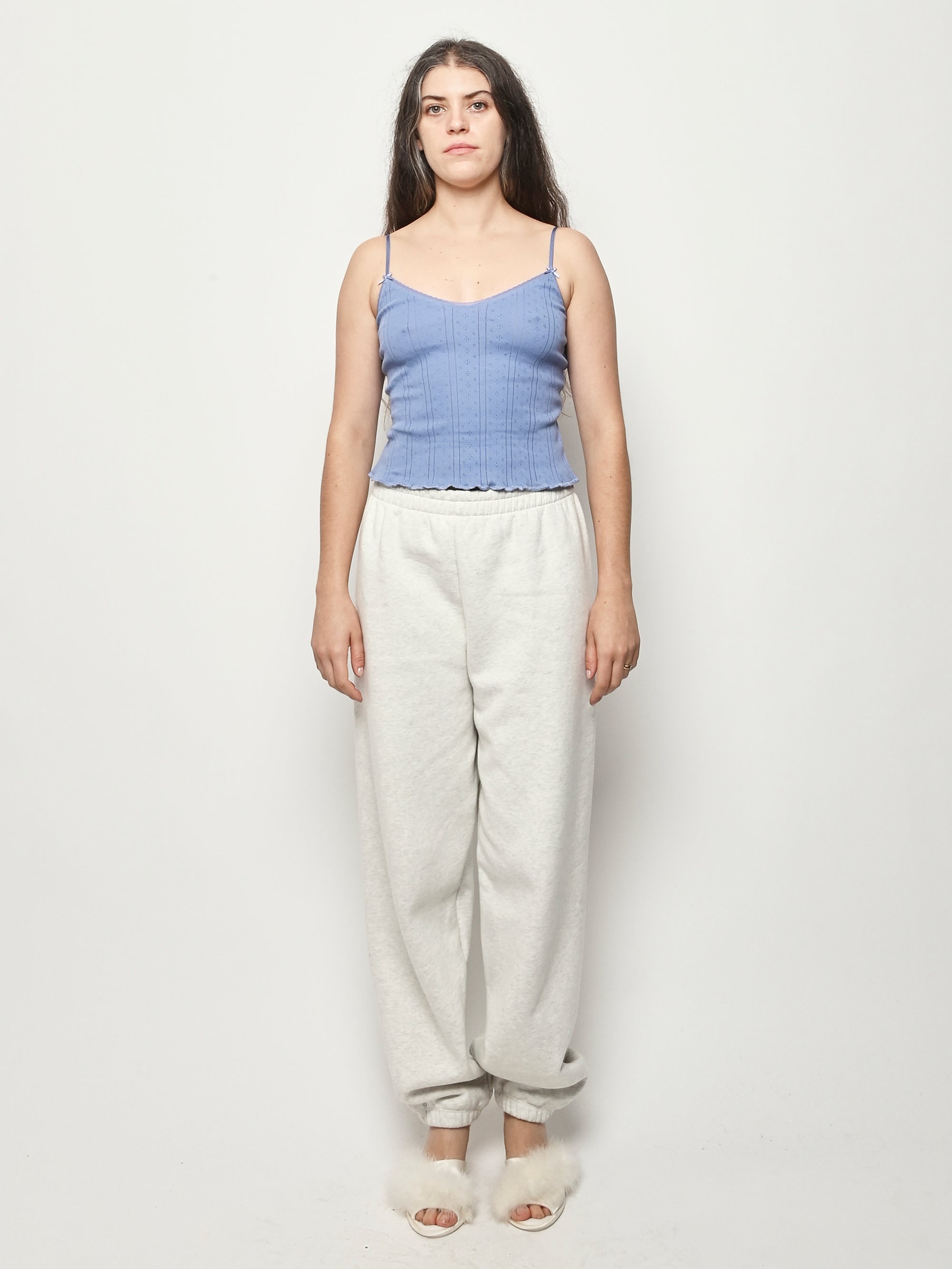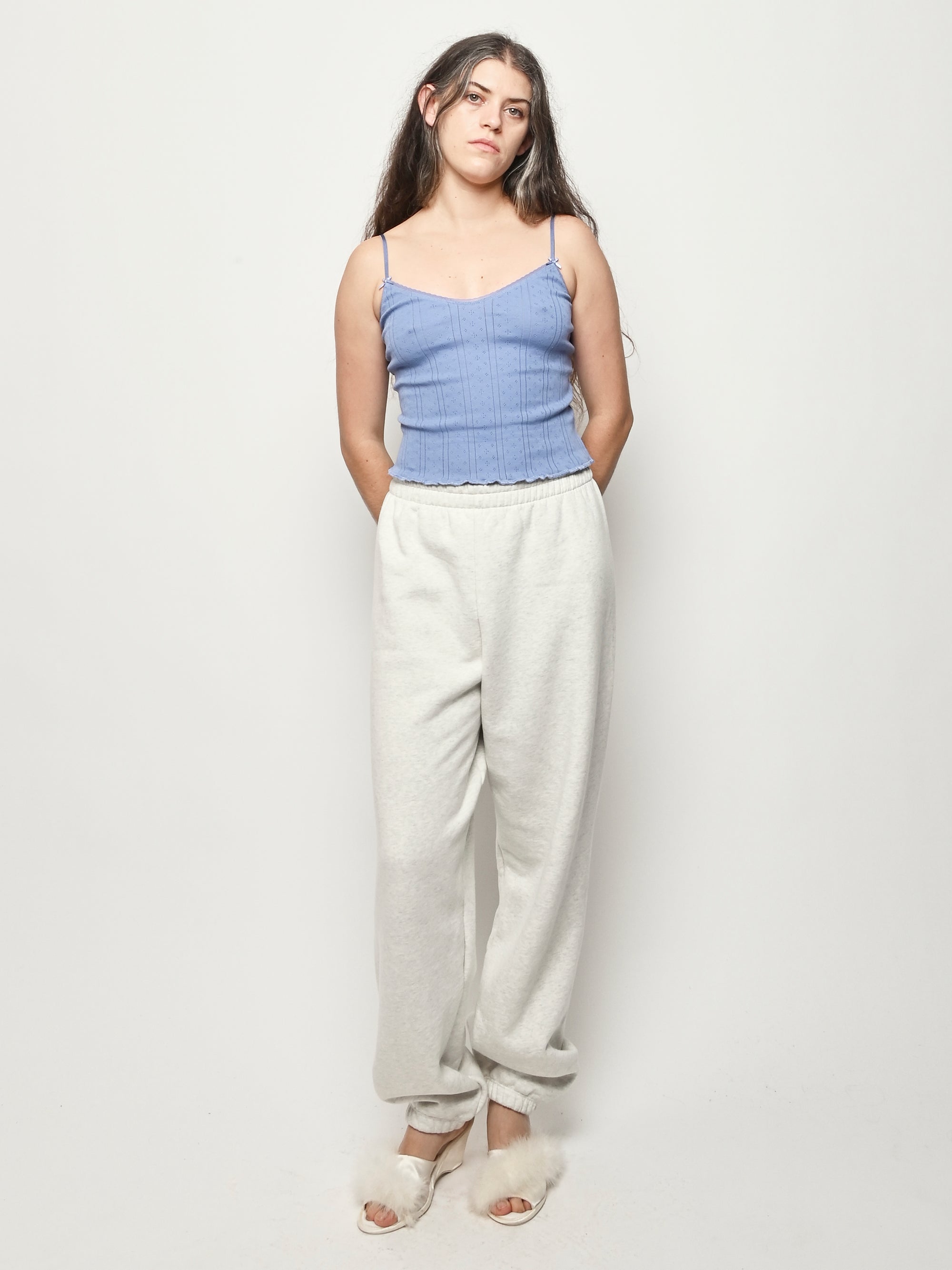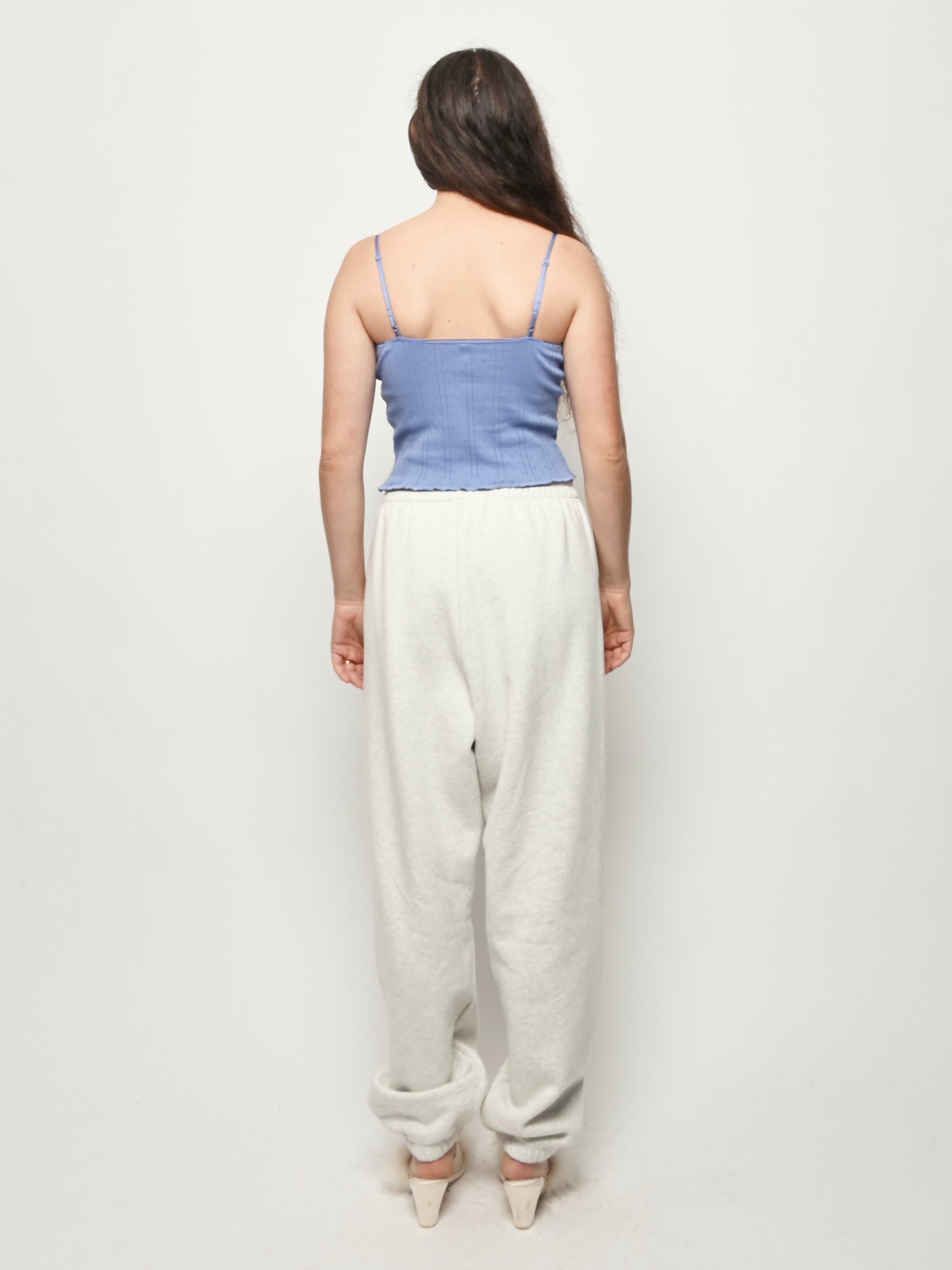 Oversized cotton sweatpant inspired by the iconic sportswear of the 80's and 90's. Features an interior drawcord, and elastic waistband and bottom cuff. Crafted in Los Angeles from plush, heavyweight 100% cotton fleece, locally knit for a distinct, luxurious hand feel.