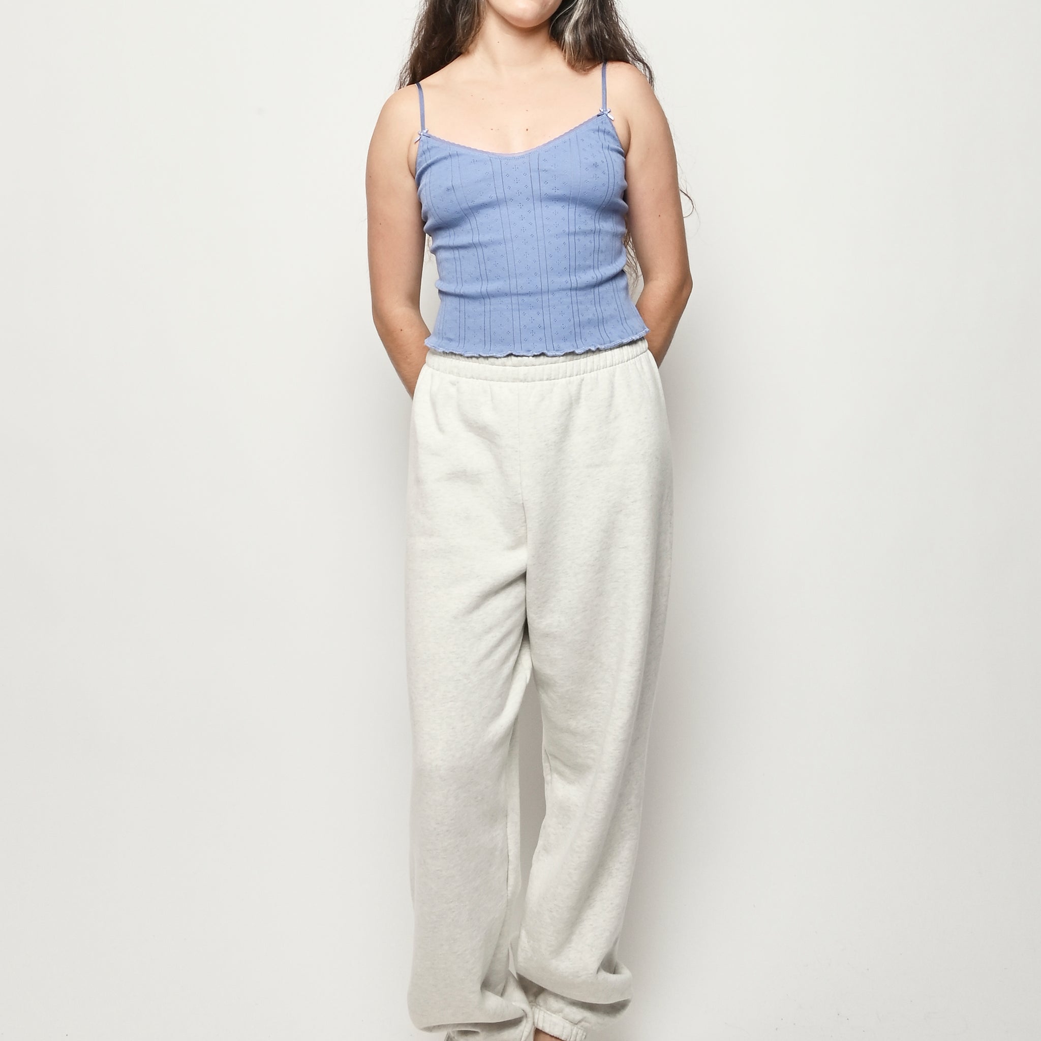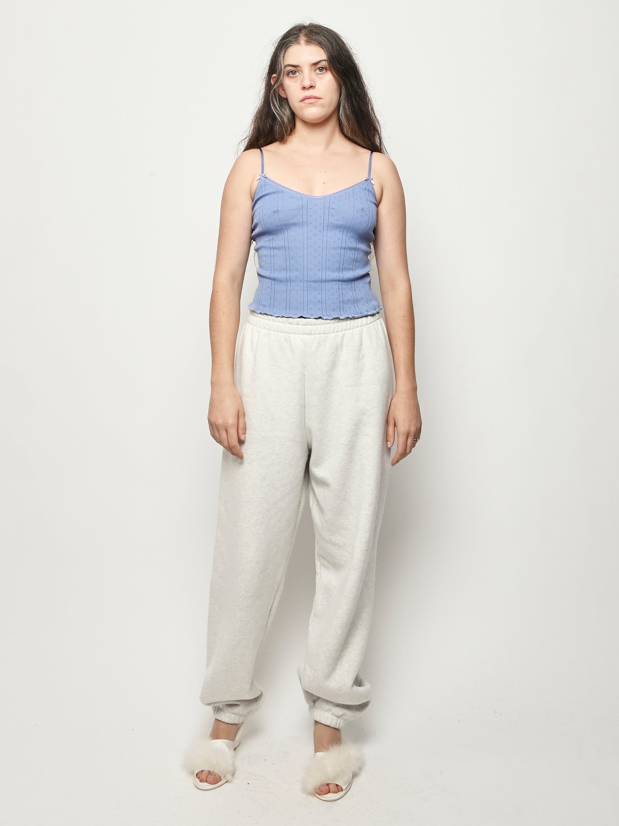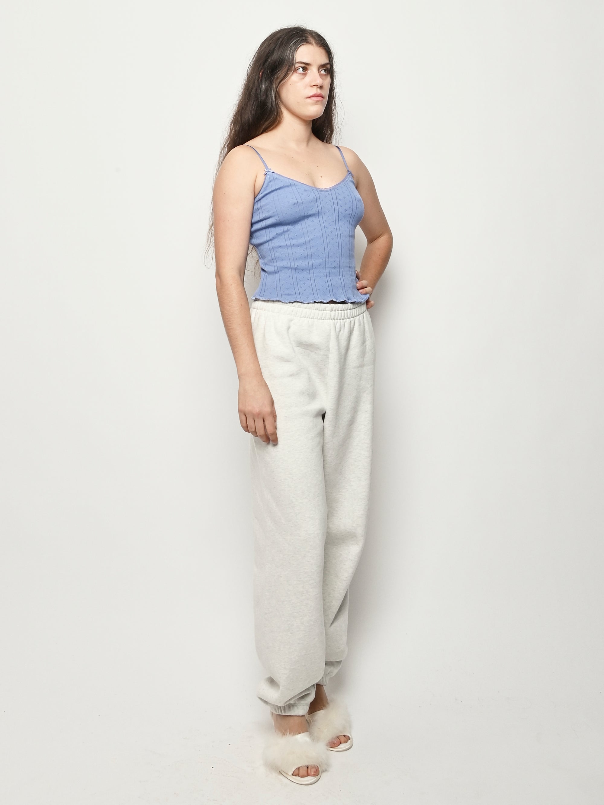 Oversized cotton sweatpant inspired by the iconic sportswear of the 80's and 90's. Features an interior drawcord, and elastic waistband and bottom cuff. Crafted in Los Angeles from plush, heavyweight 100% cotton fleece, locally knit for a distinct, luxurious hand feel.