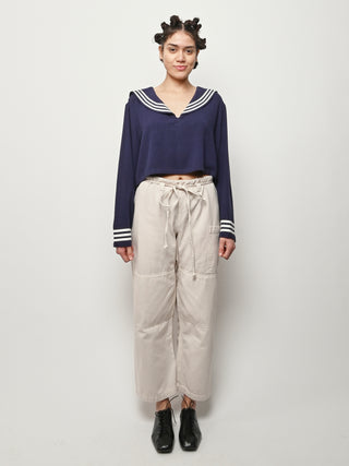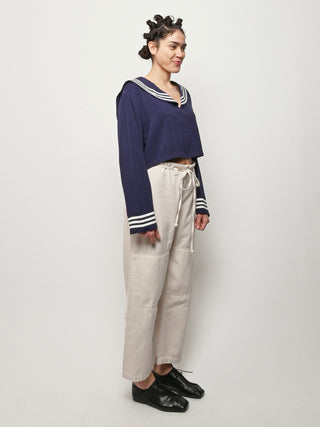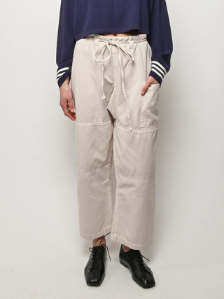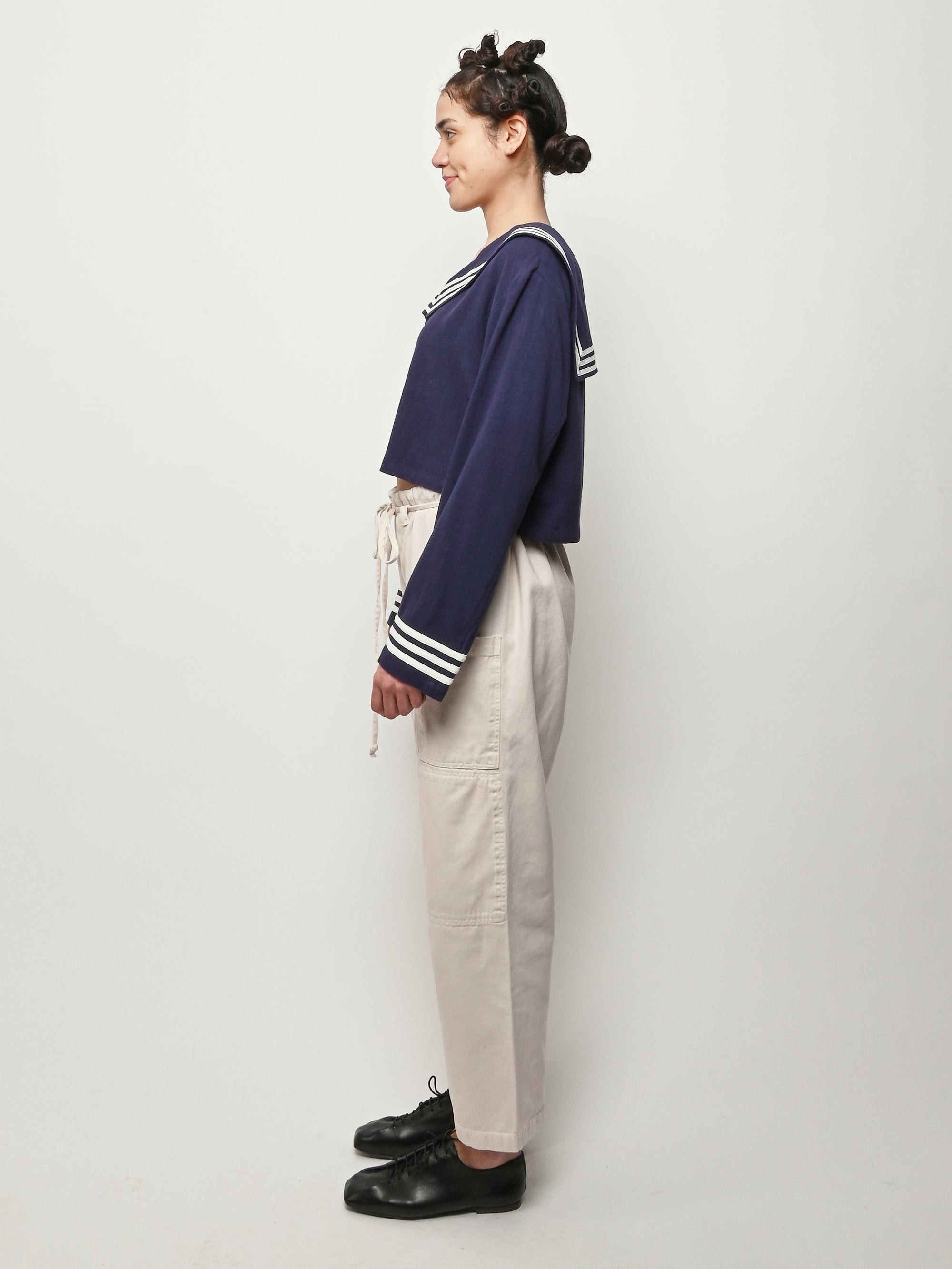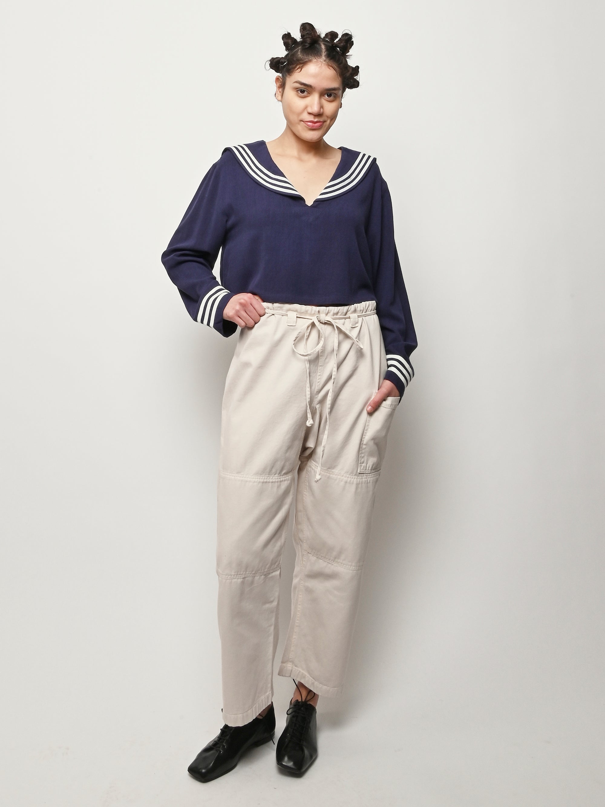 The Lou Pant: A unisex, highly adjustable, all-purpose pant with all-around drawcord, front ties, side keyhole detail - now with front and back patch pockets. One of those magical pieces that fits virtually everyone, through all stages of life. For taller frames, Gil Rodriguez added an extra 2 inches of fabric in the hem so your tailor can easily let the inseam out.