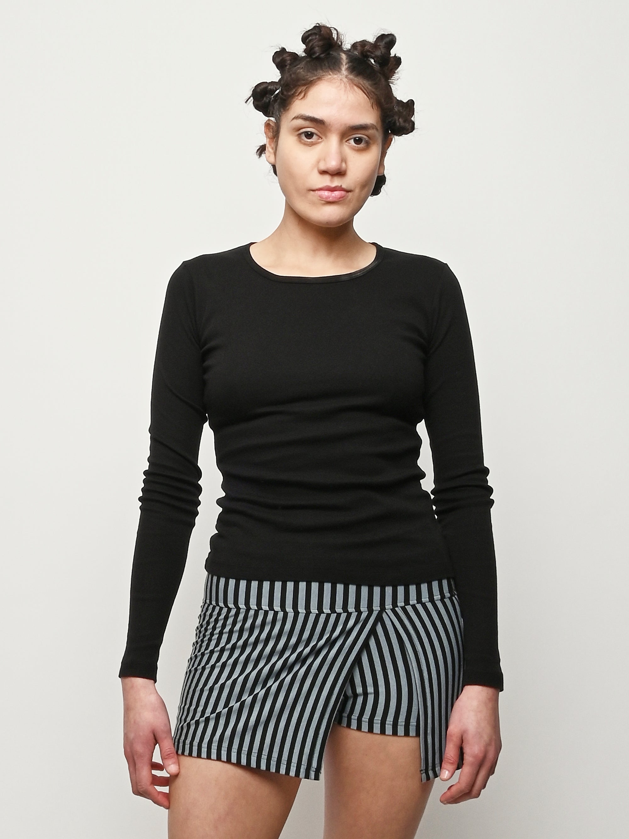 A classic long-sleeve tee made from super soft cotton baby rib. Flattering and form-fitting, it’s the perfect length to tuck into a high waist, or not. Made in USA from custom knit, locally sourced materials.
