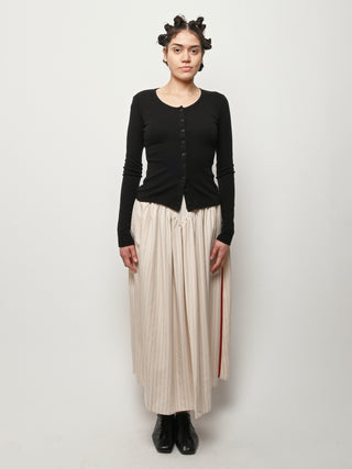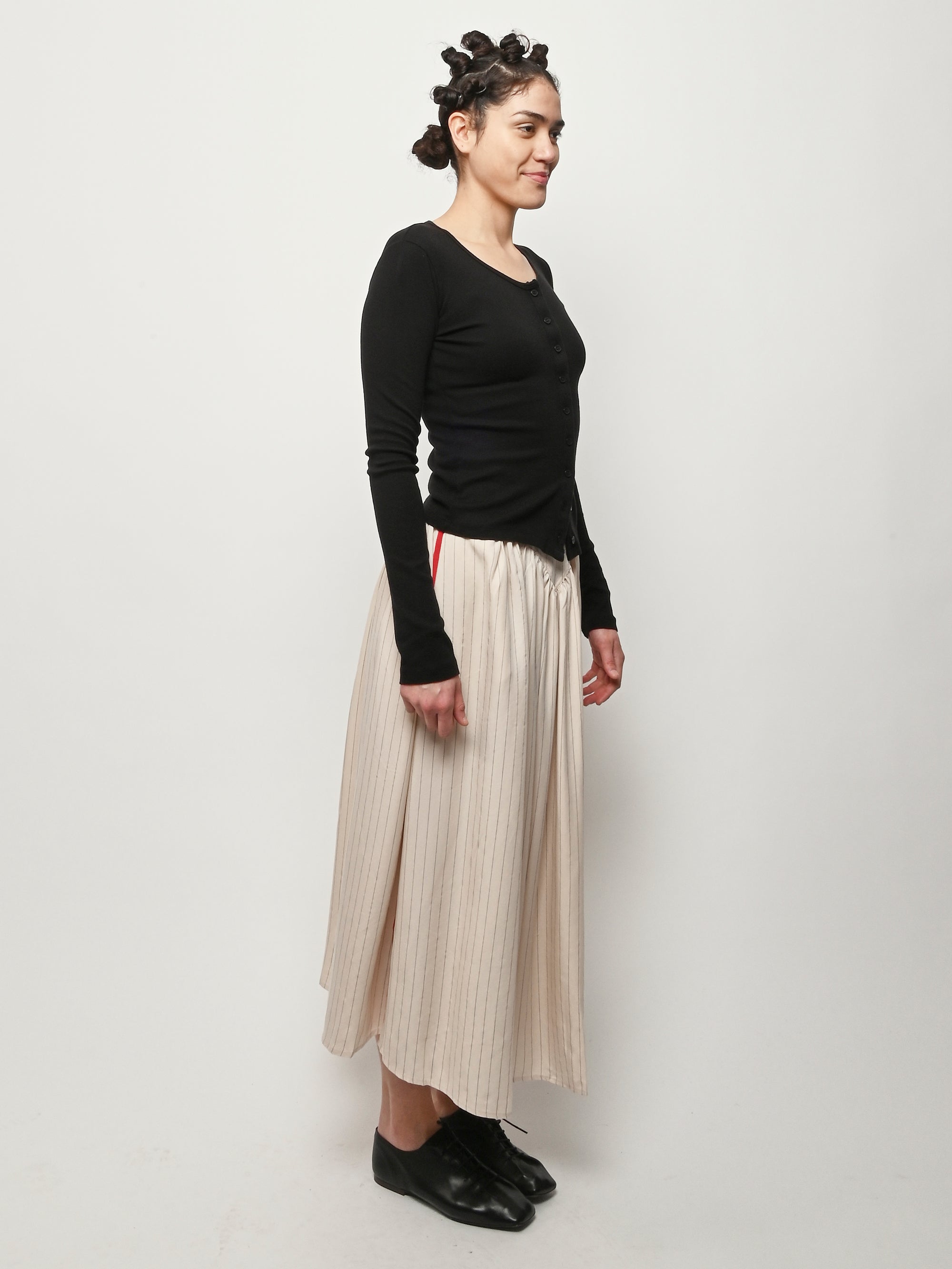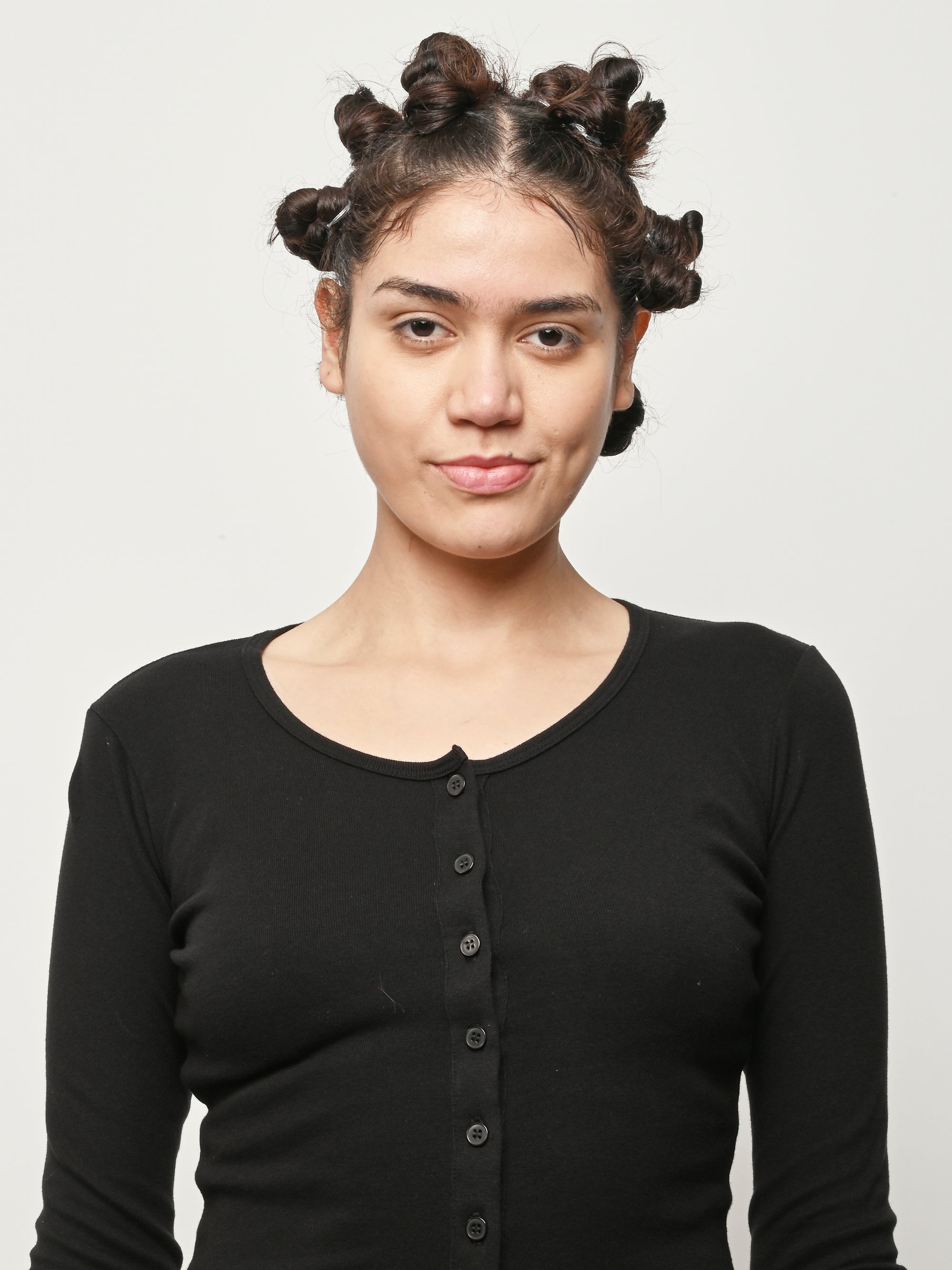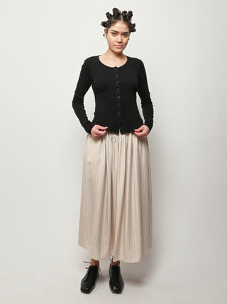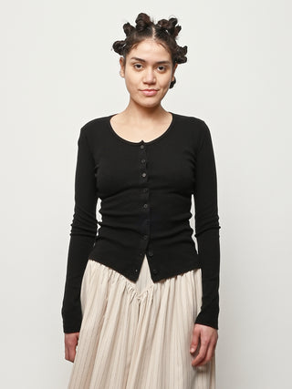 A long sleeve baby rib cardigan with button-closure and a scooped neckline. Made in Los Angeles from ultra-soft, locally-knit cotton baby rib.