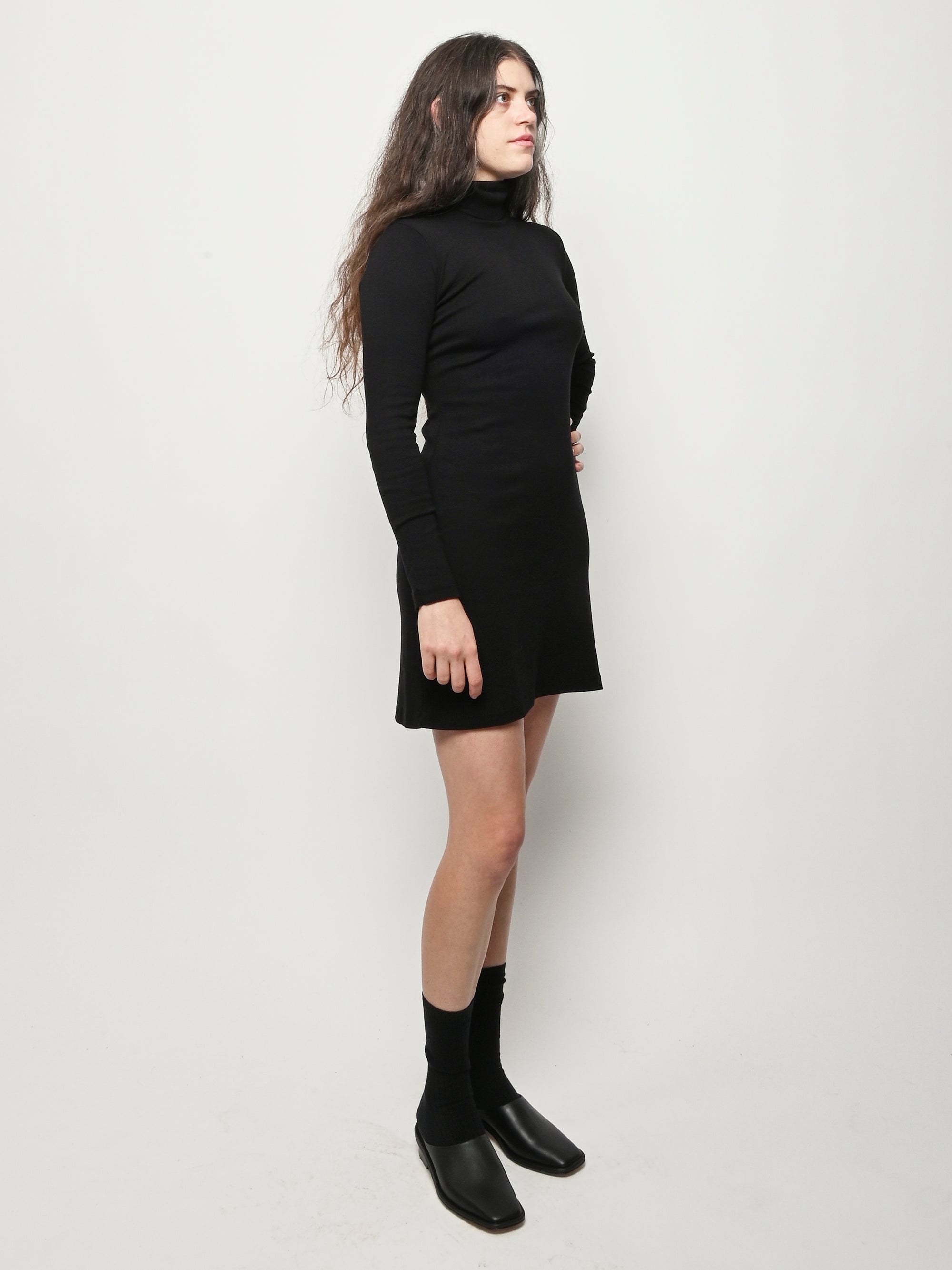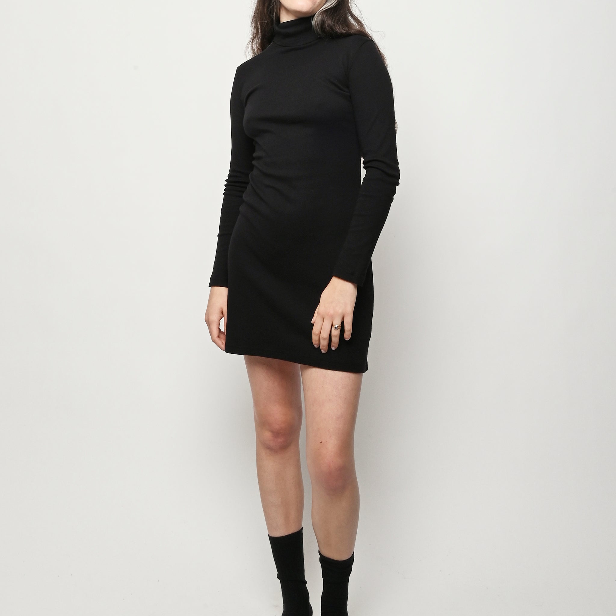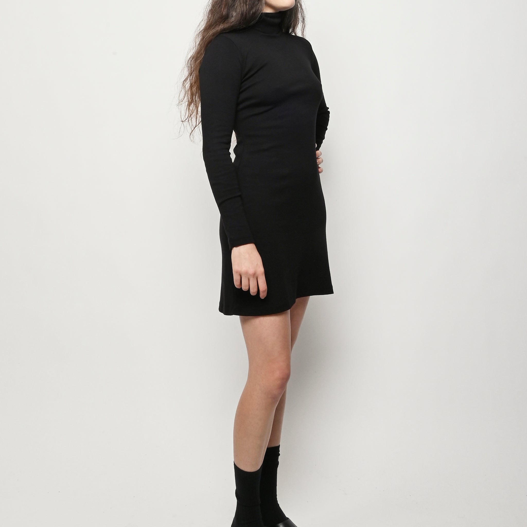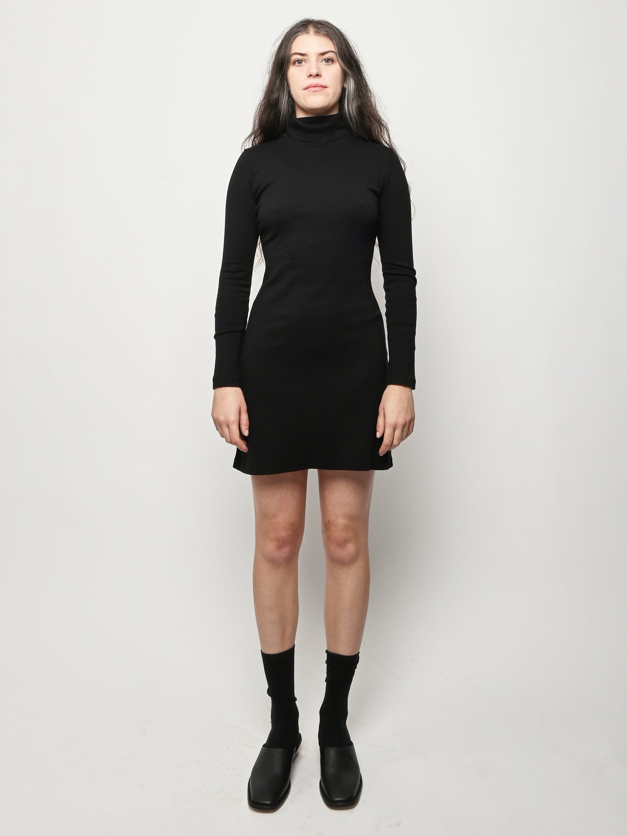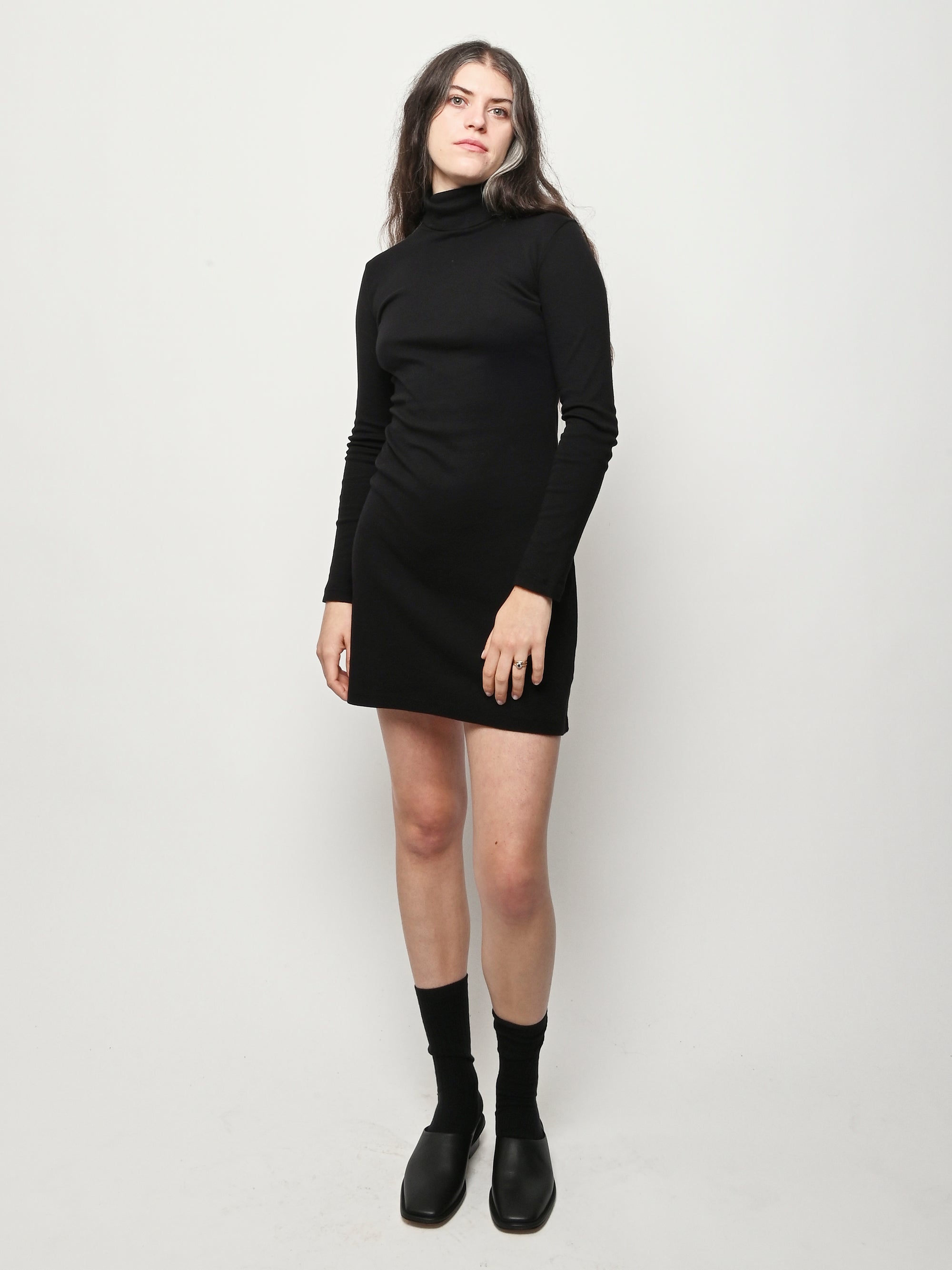 Gil Rodriguez Black Turtleneck long sleeve Bellevue Mini Dress. Made from the softest cotton baby rib knit in Los Angeles. Fits true to size. Size up for a more relaxed fit or for taller frames.