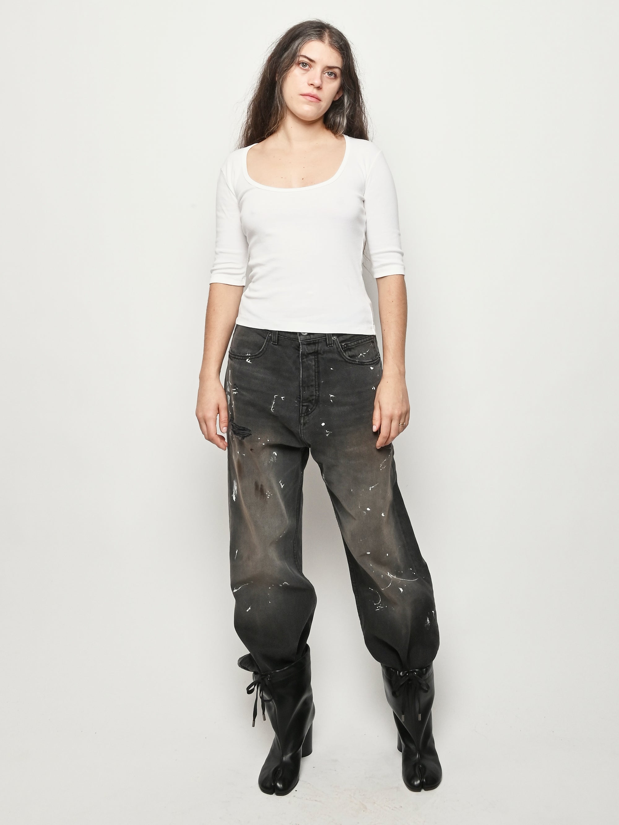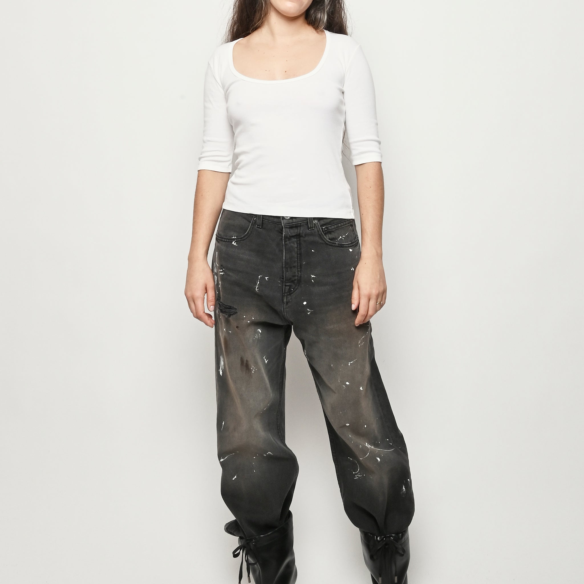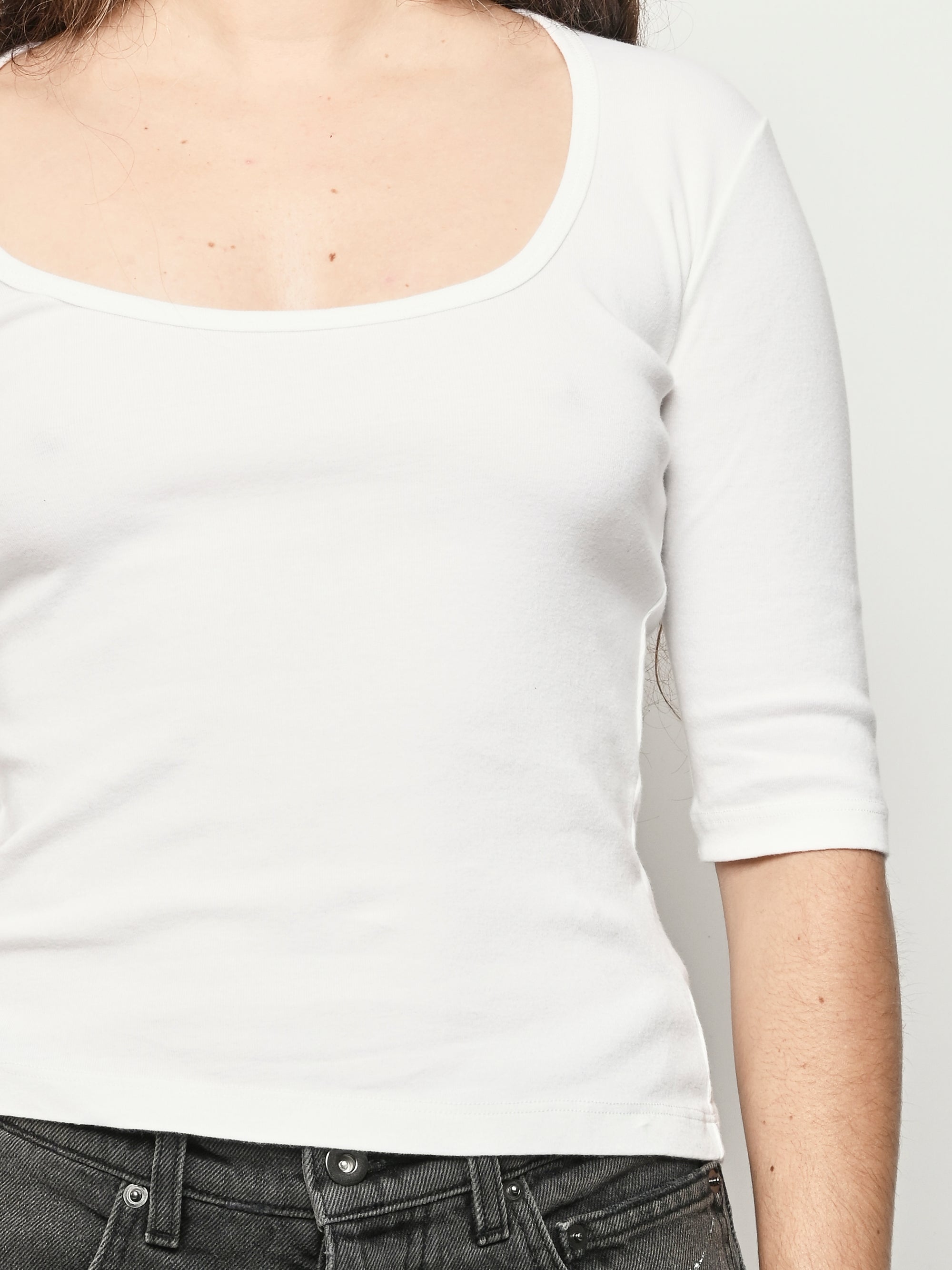 A super soft short-sleeve tee featuring a scooped neckline and mid-length sleeves. Flattering and form-fitting, it’s the perfect length to tuck into a high waist, or not. Made in Los Angeles from ultra-soft, locally-knit cotton baby rib.