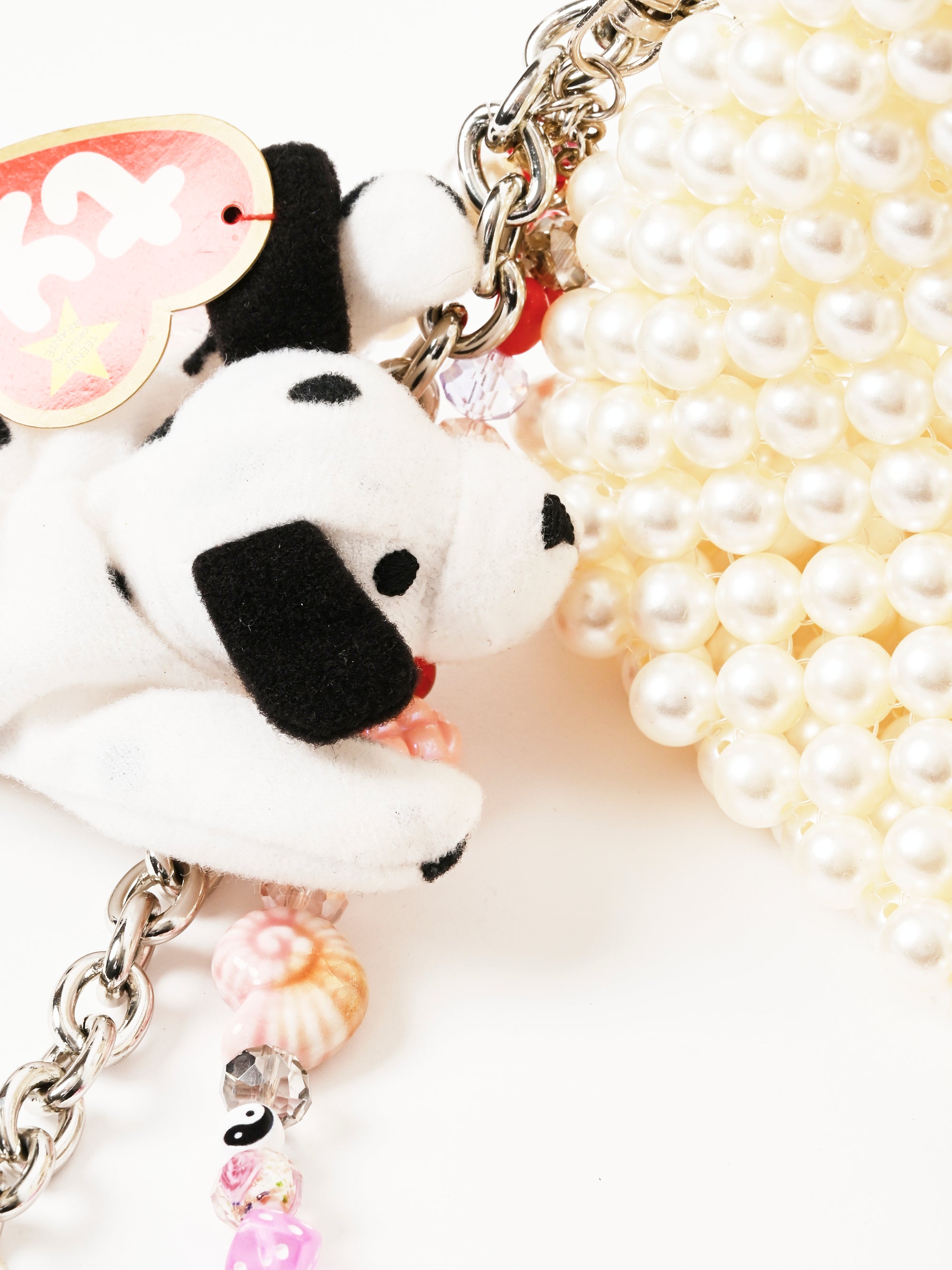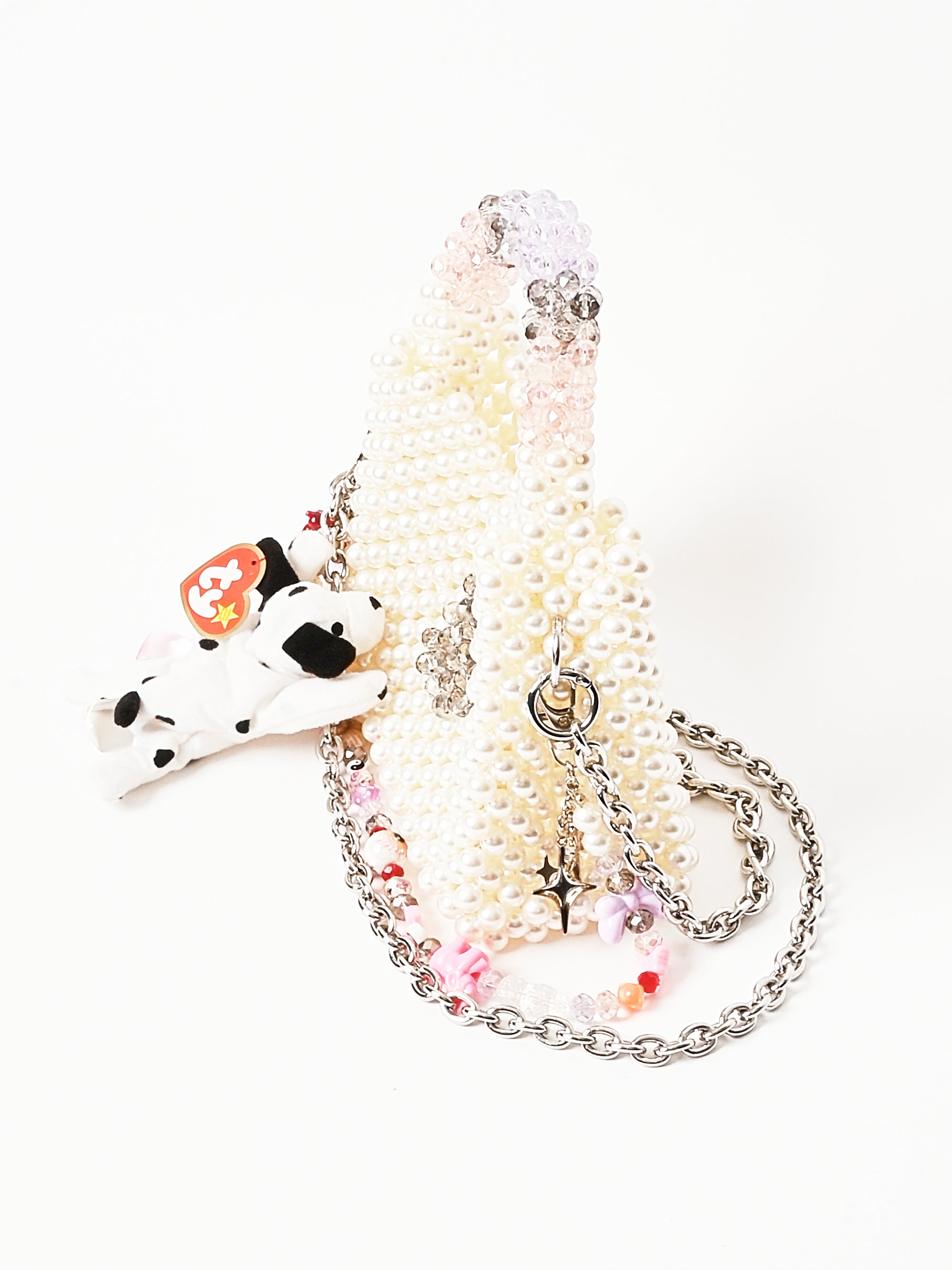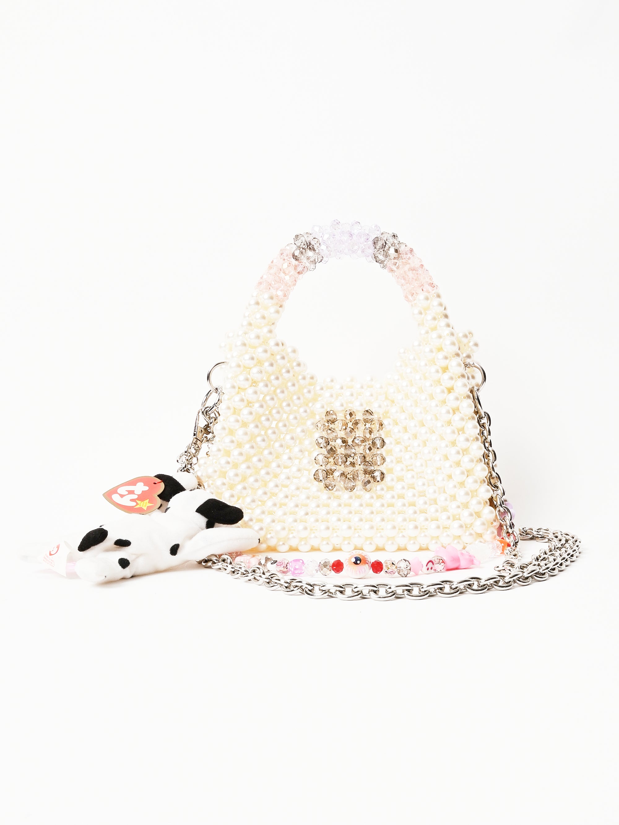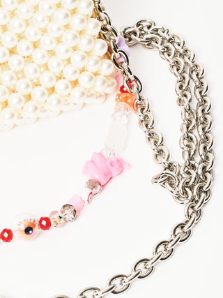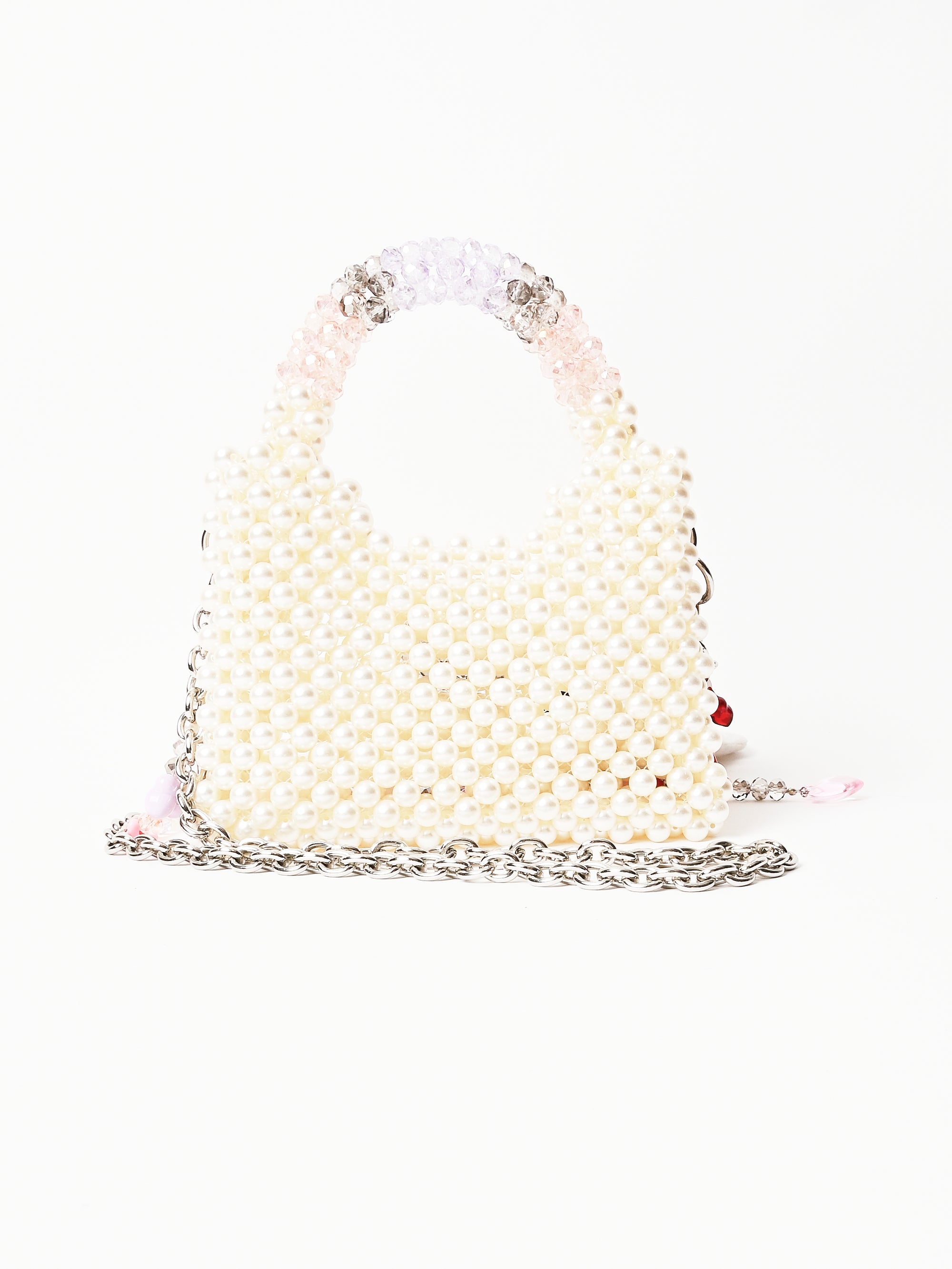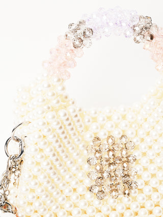 • Bag body made of imitation (plastic) pearls and glass
