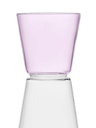 Handcrafted glass pitcher in light pink glass. Intended to be used with the stackable High Rise Tumblers.