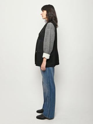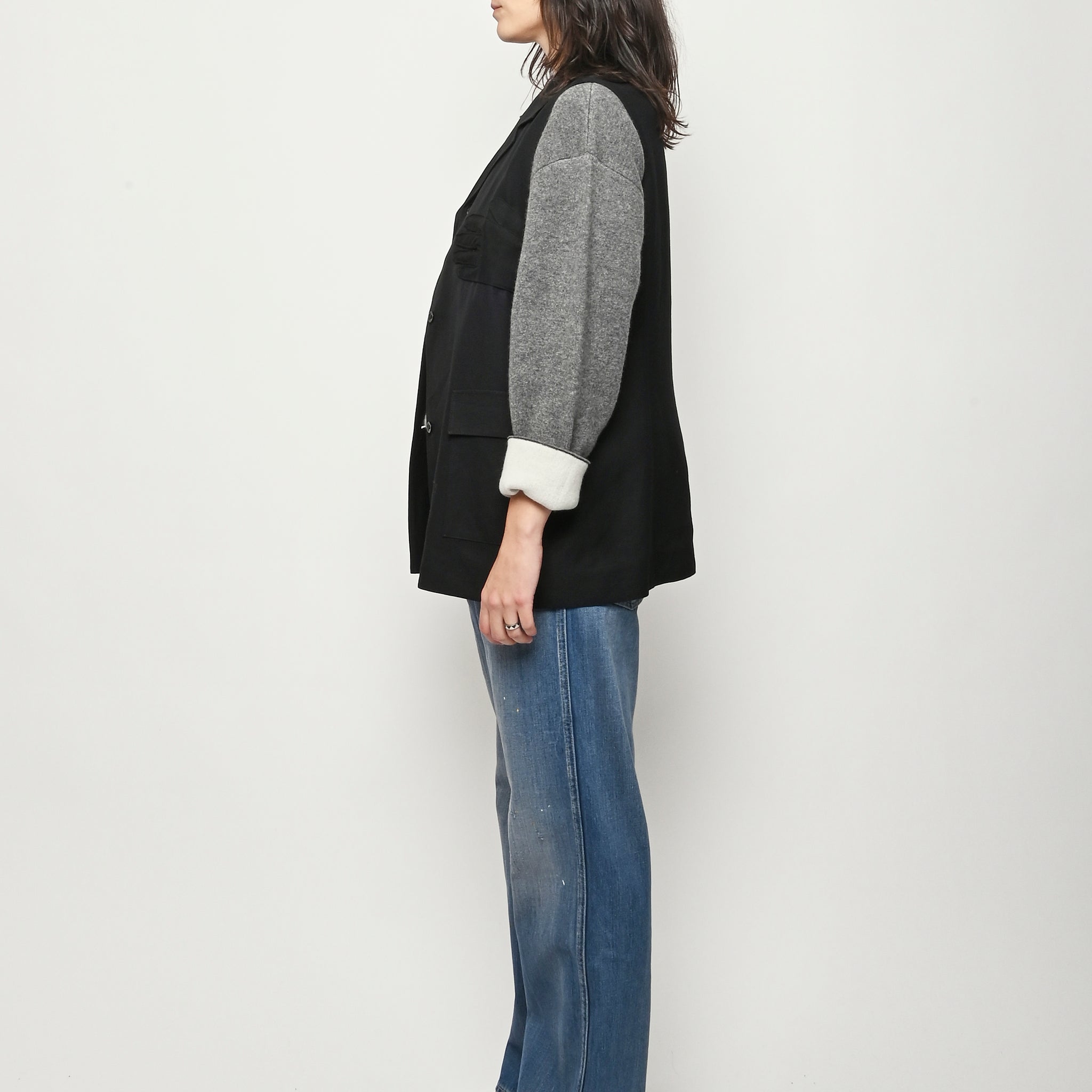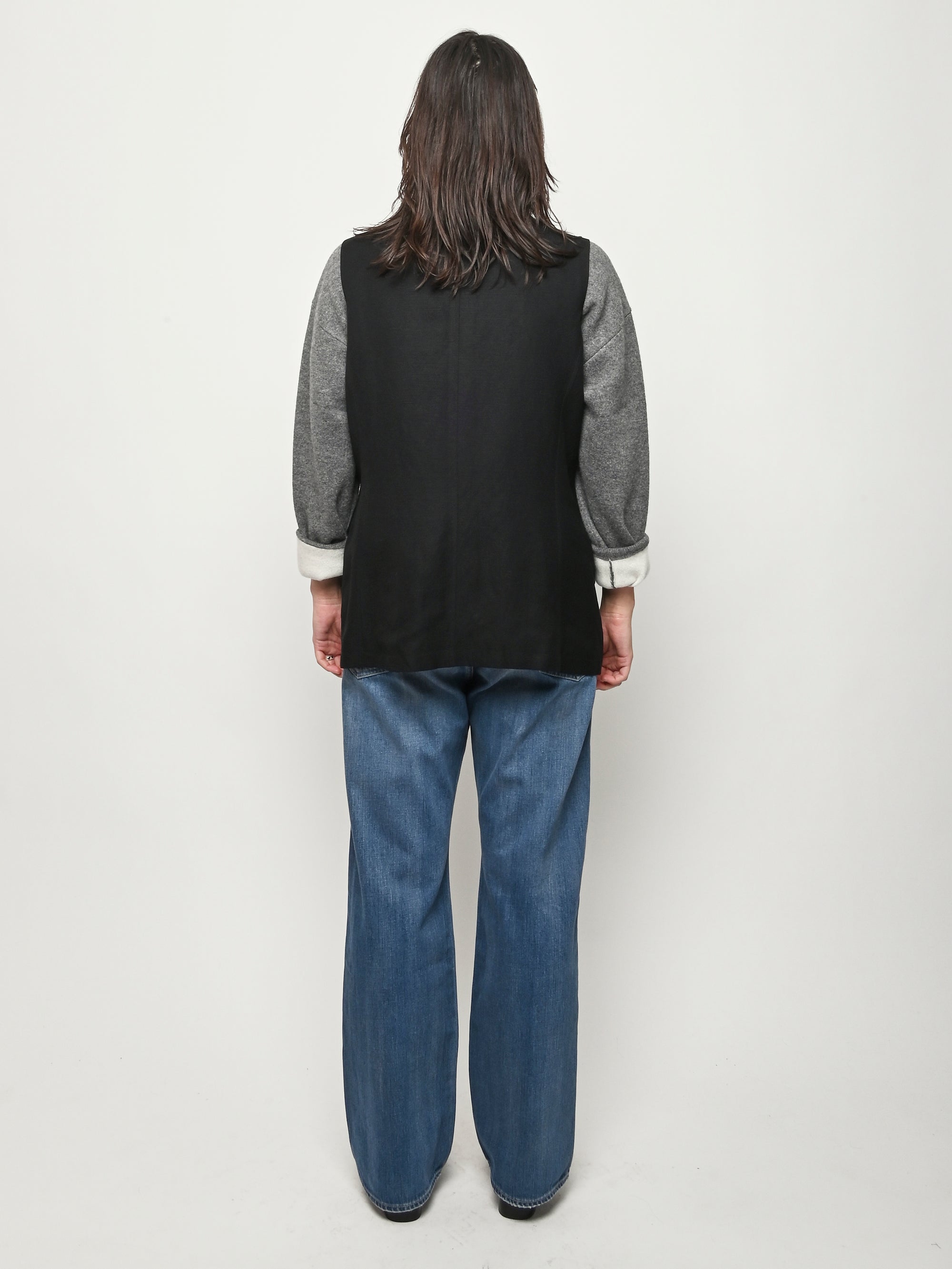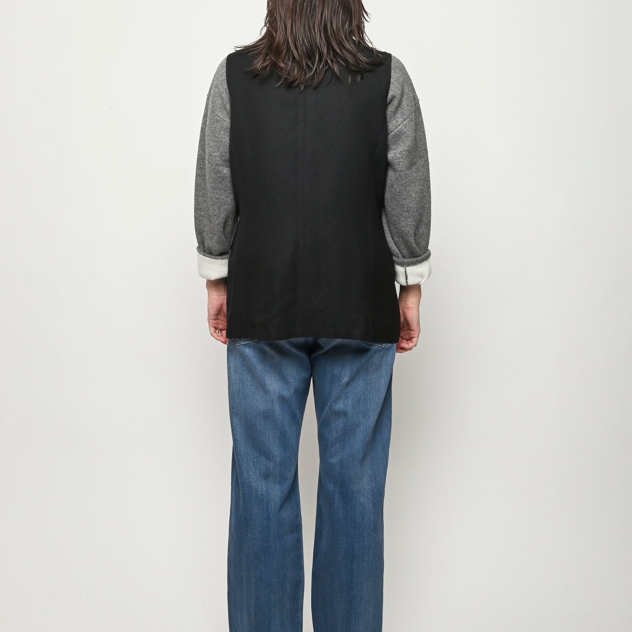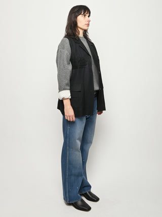 Black re-worked vest with tonal black gloves detail at the bust. By local artist/designer, Laurs Kemp.