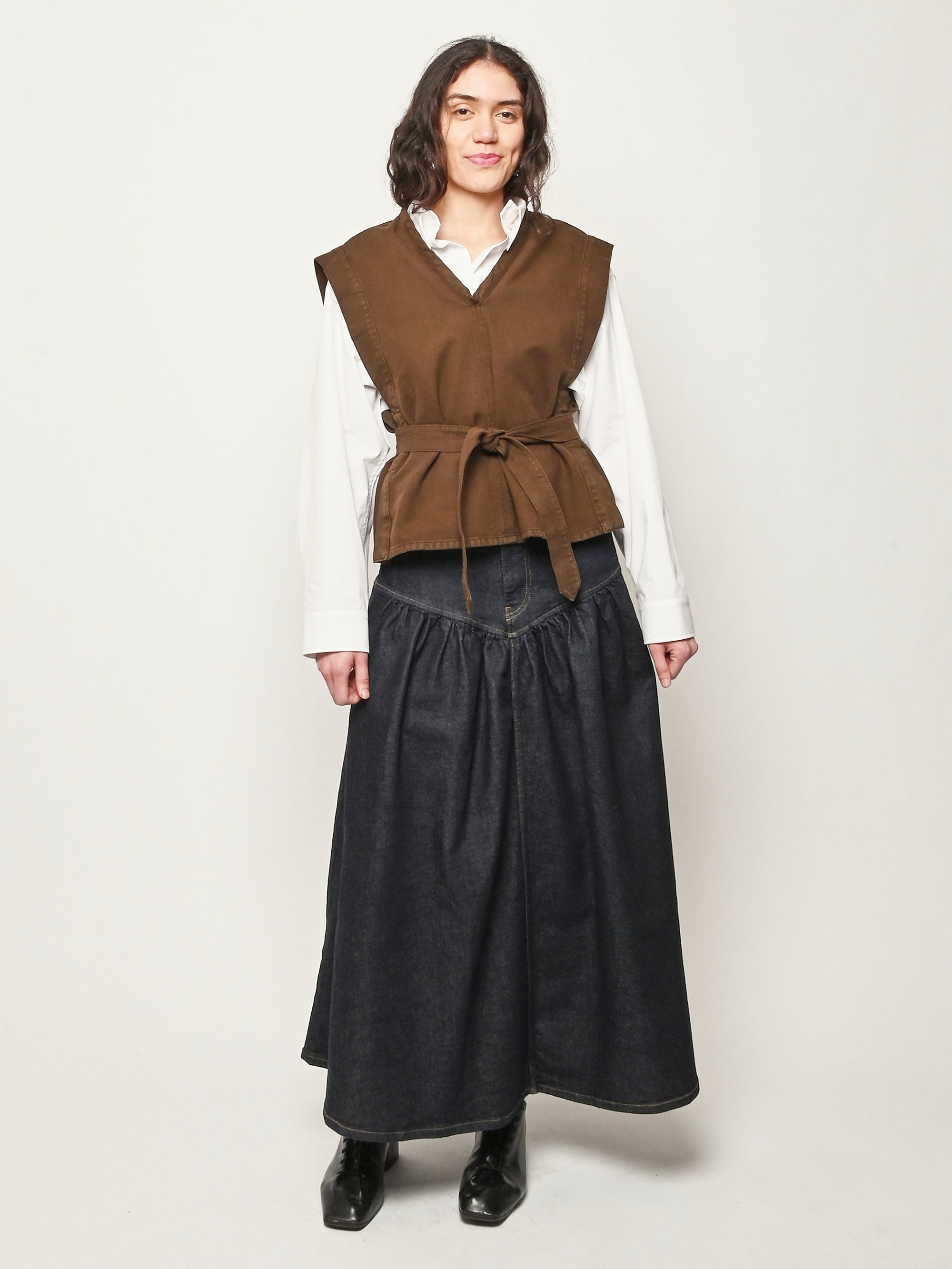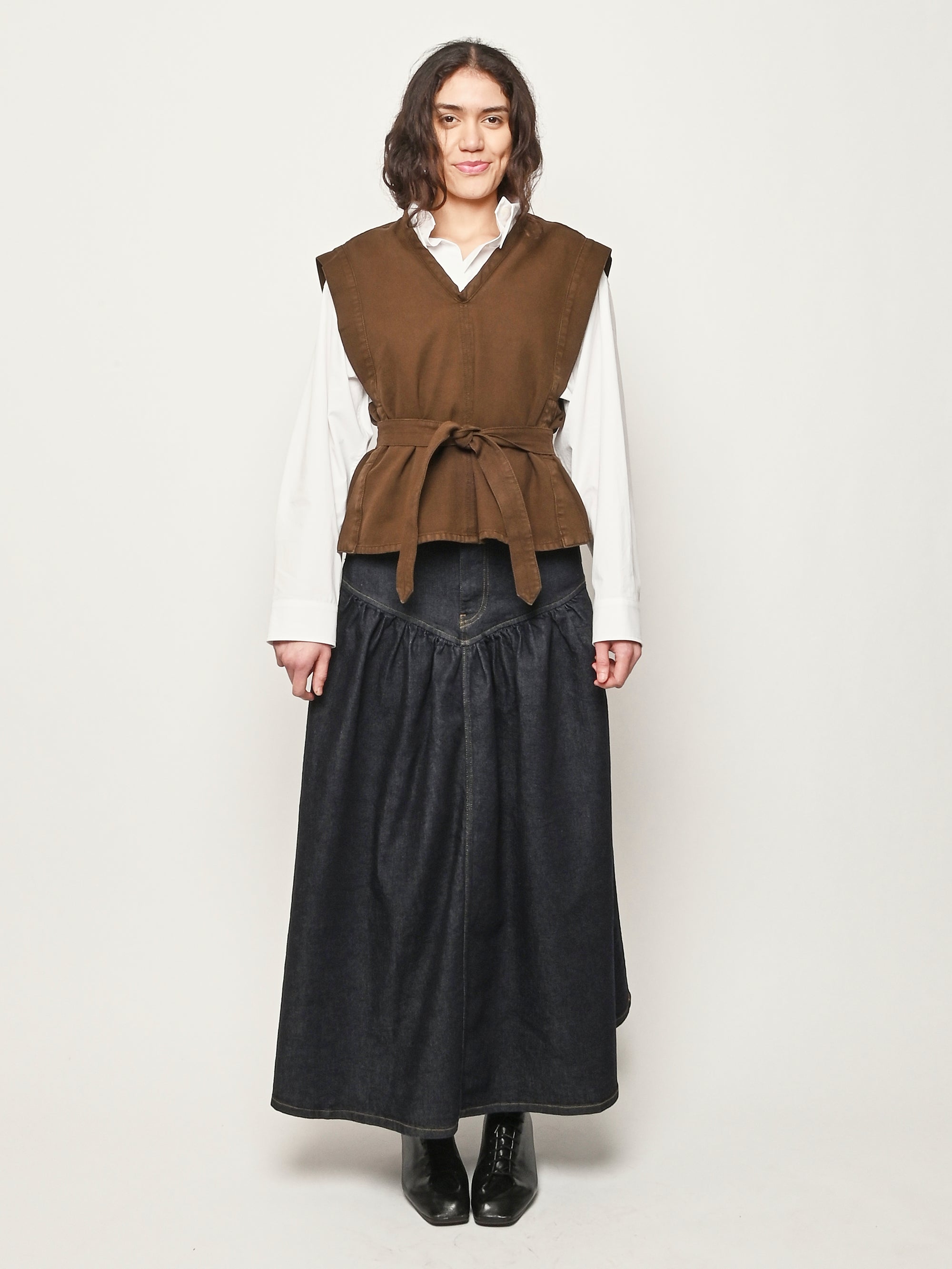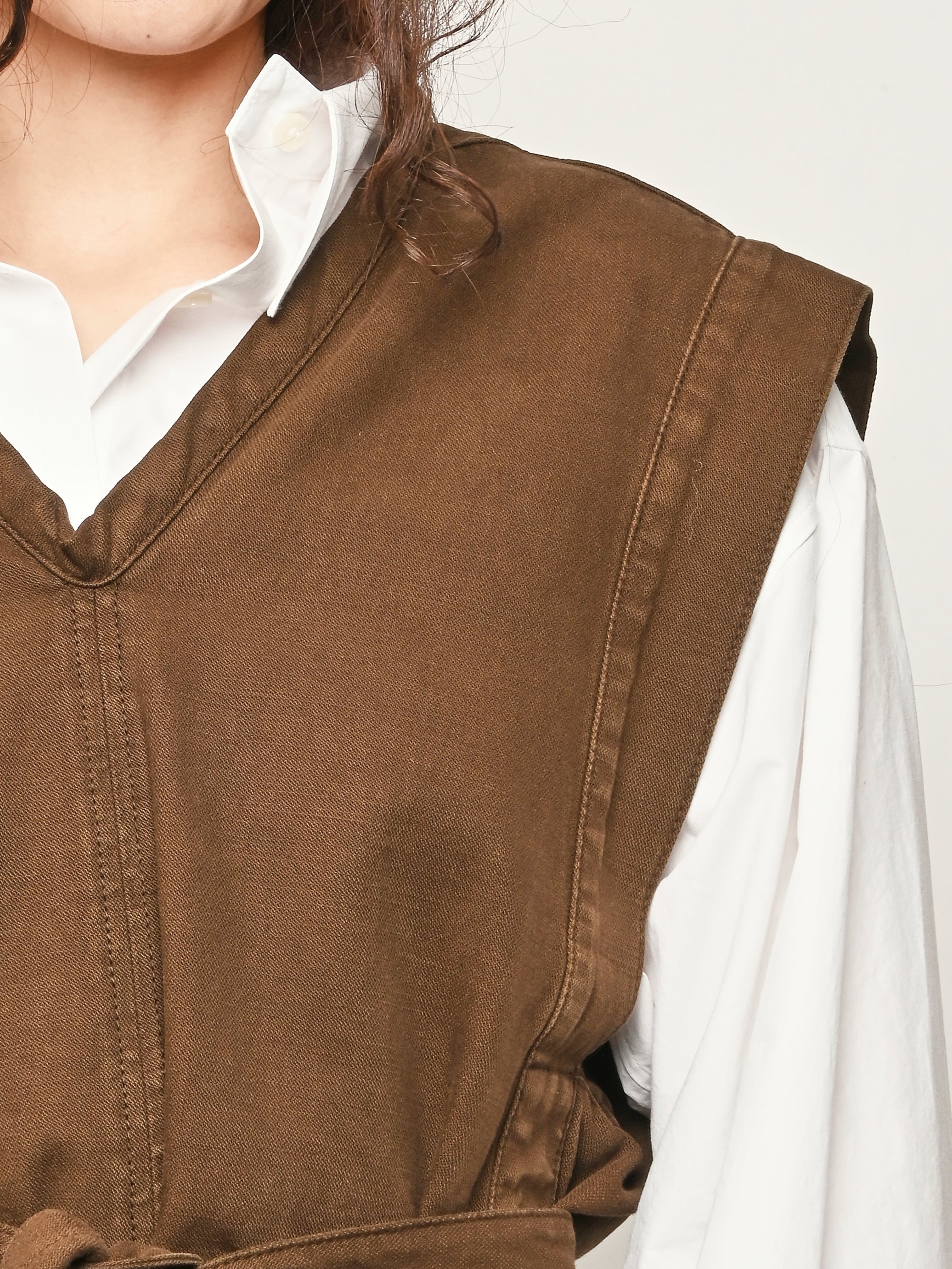 Inspired by LEMAIRE’s balance between comfort and elegance, this chasuble top is made from broken twill, offering a feminine and timeless silhouette.