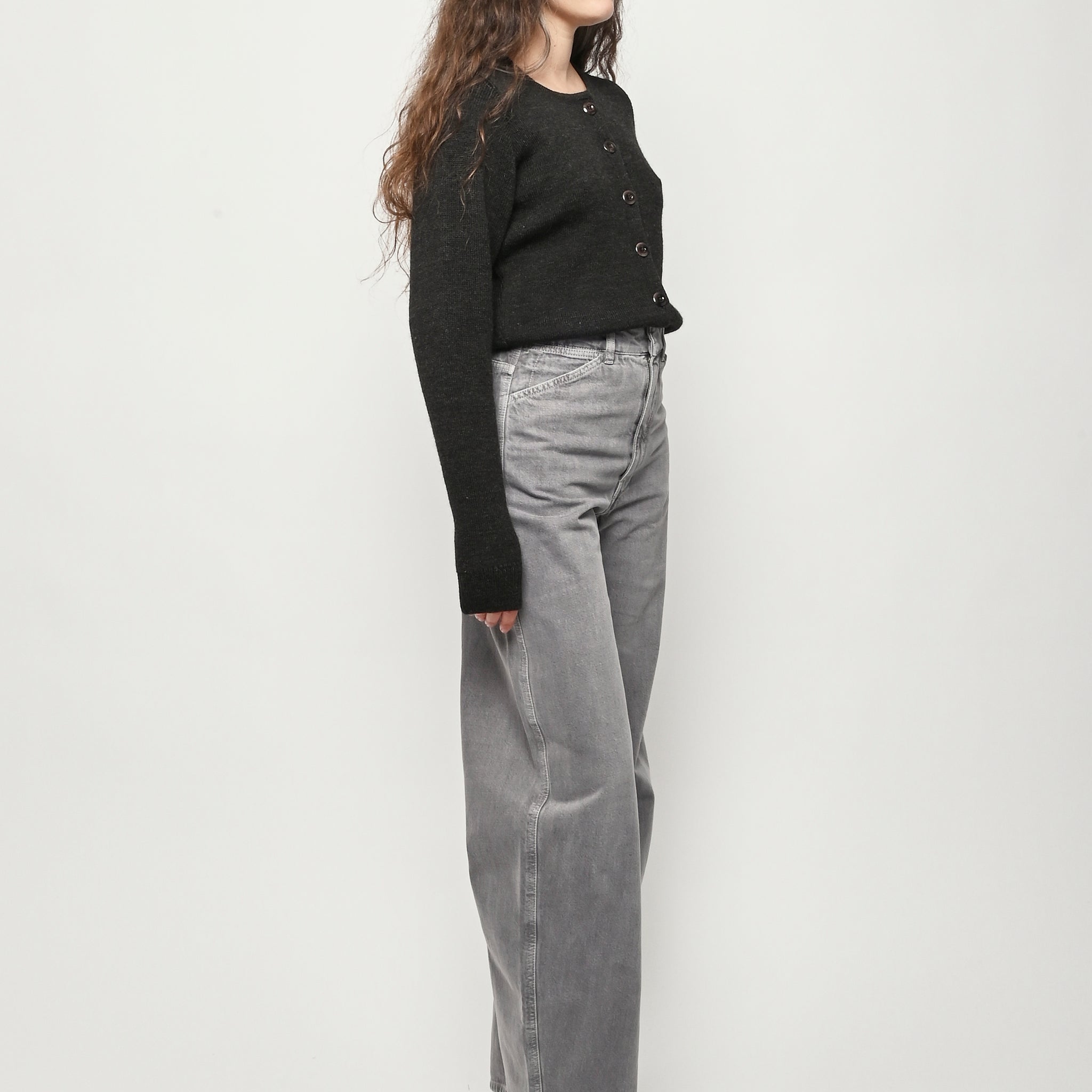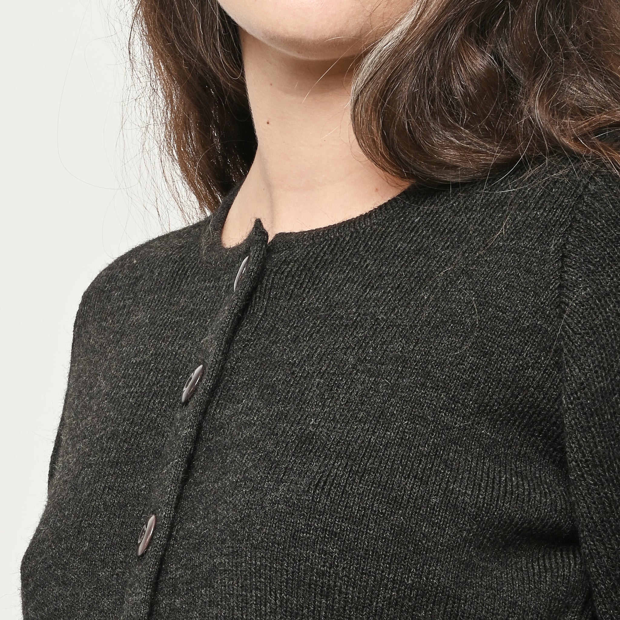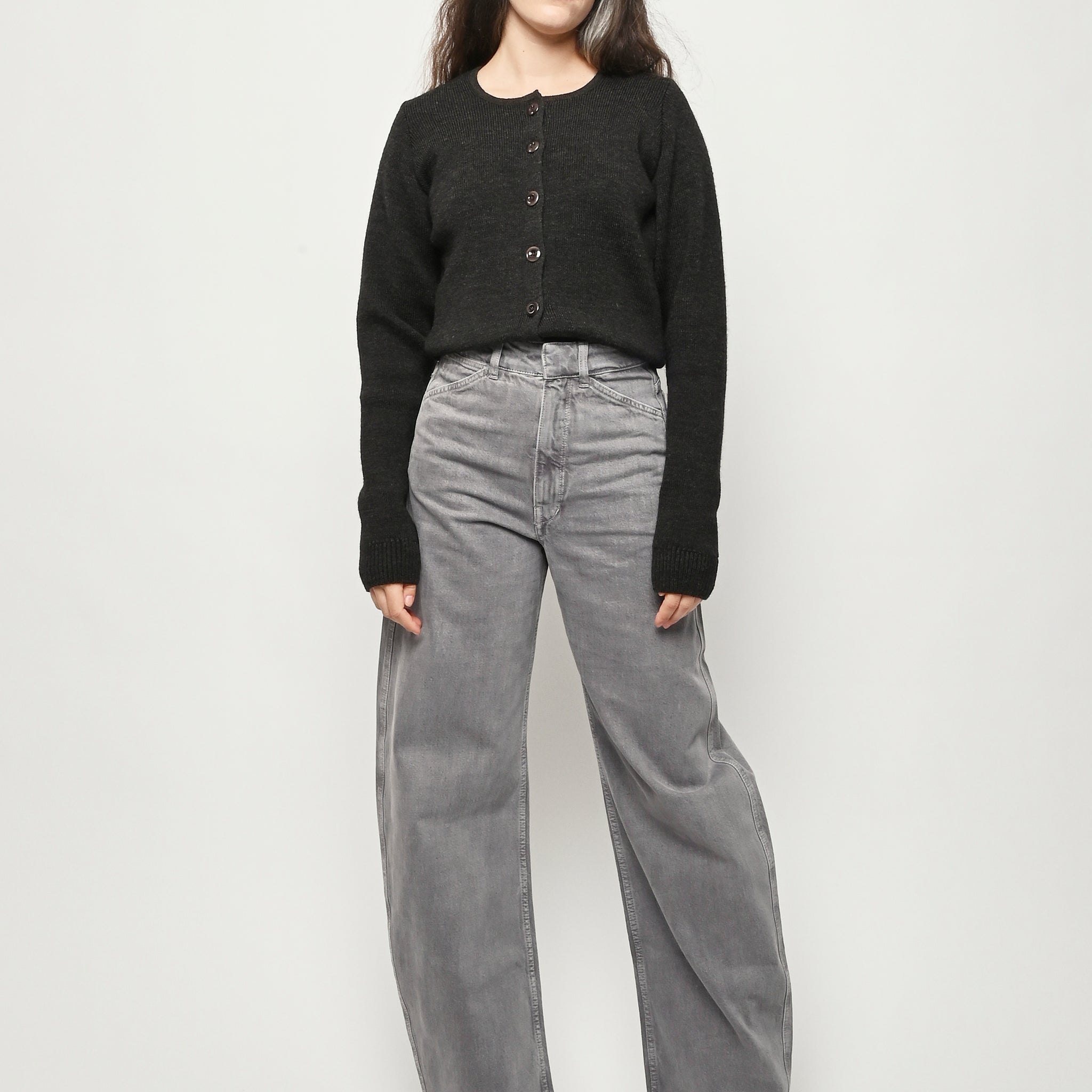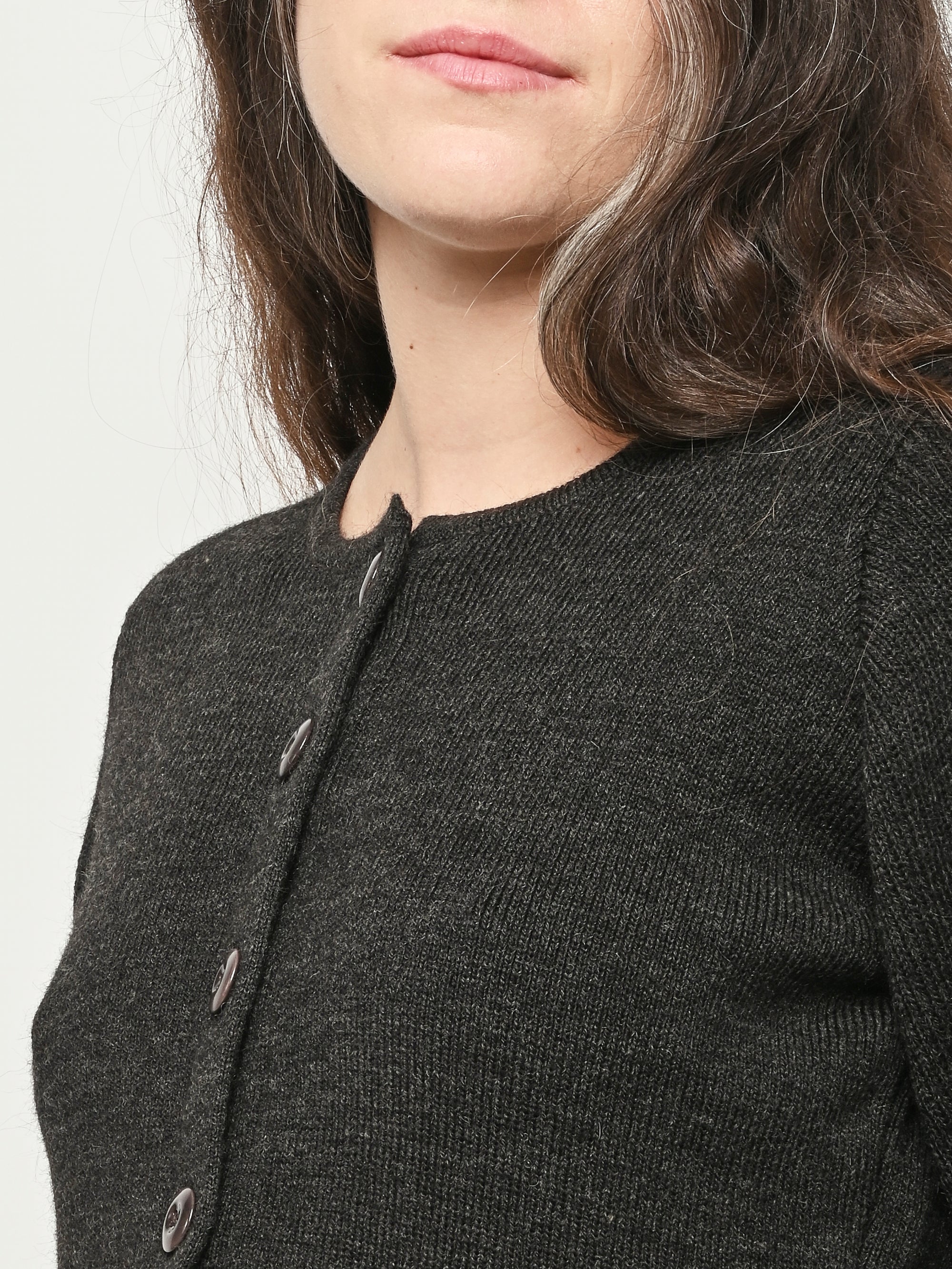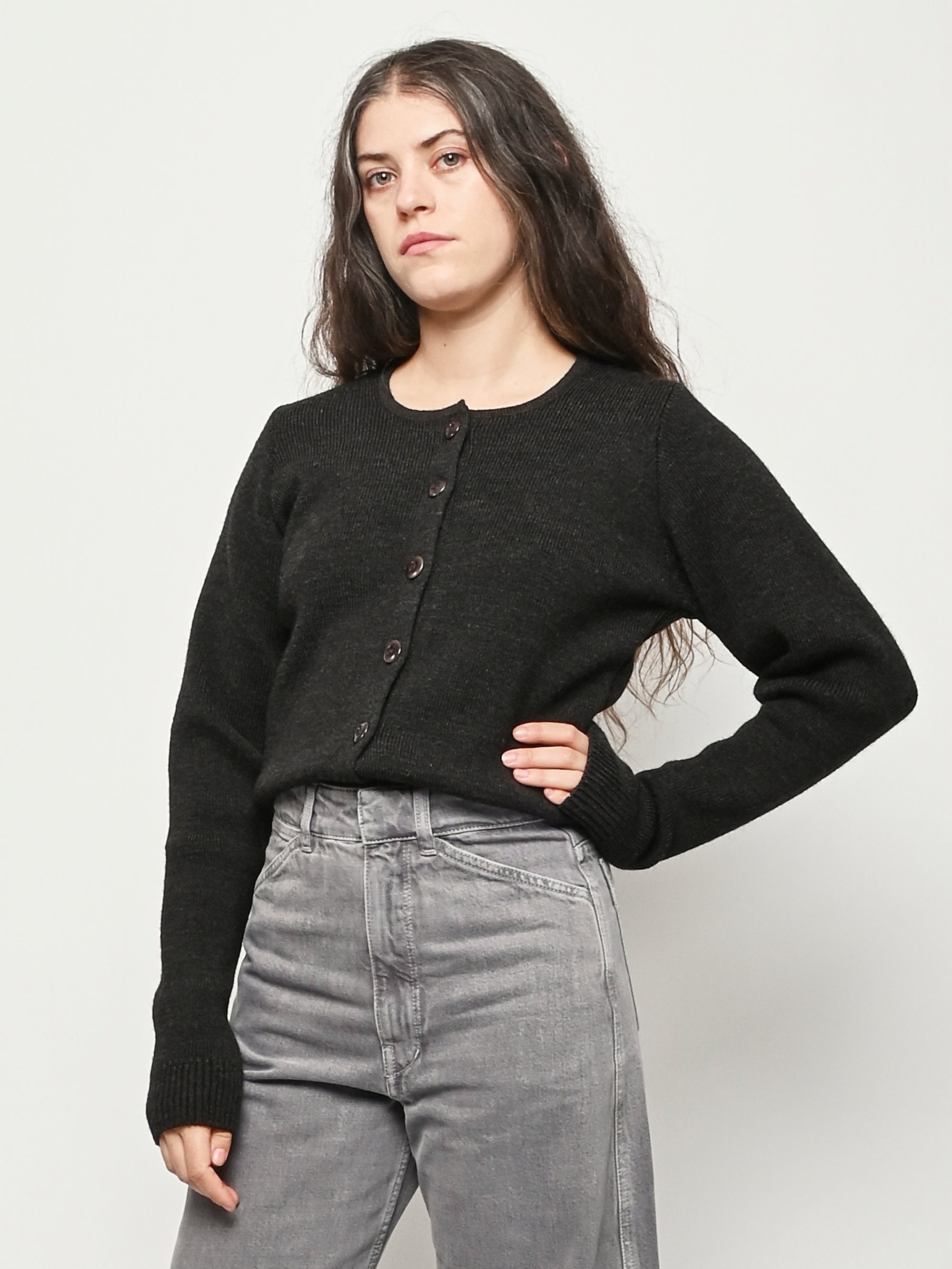 Beautiful Dark Espresso Lemaire cardigan with a slightly shrunken and feminine silhouette.