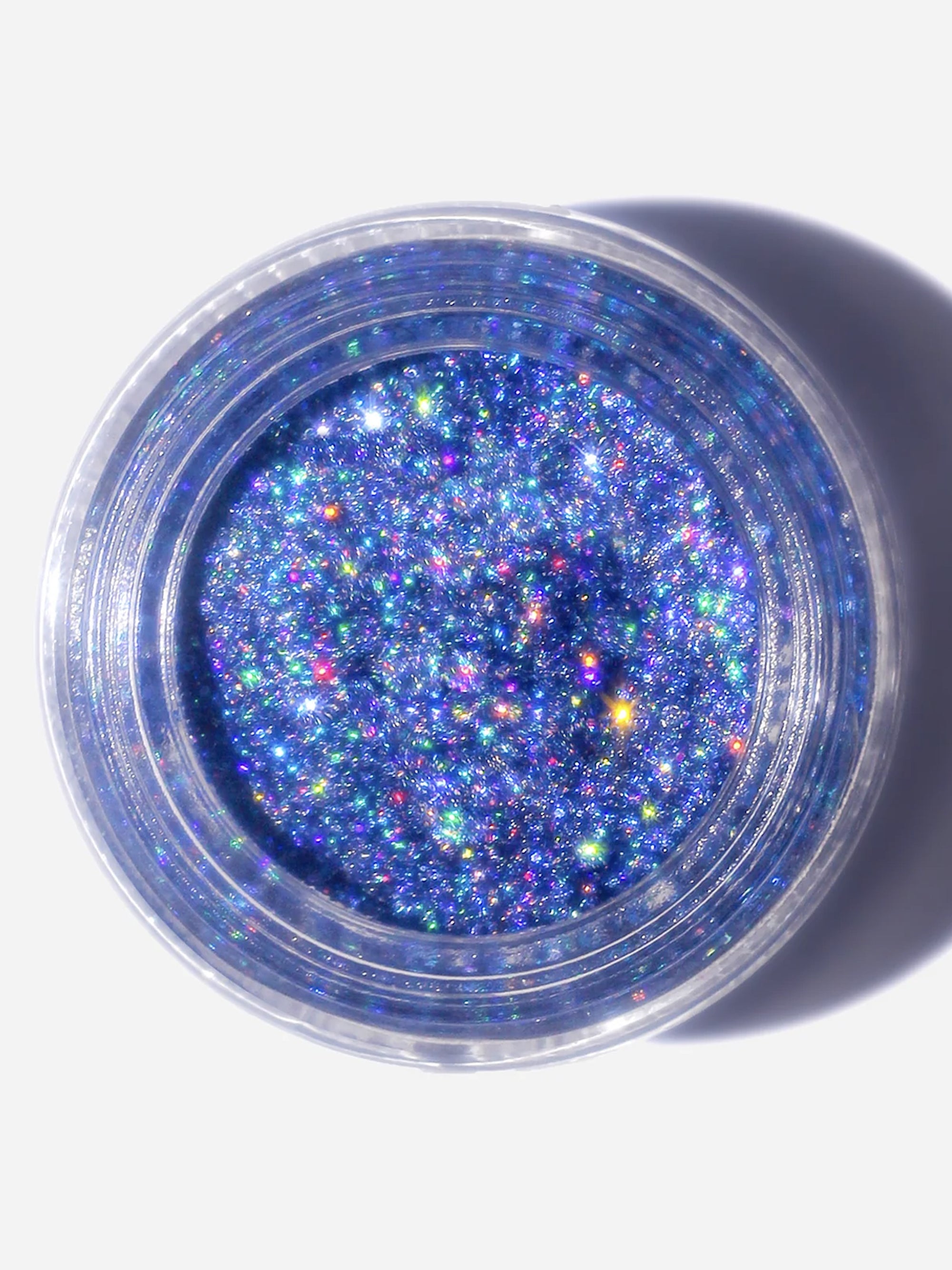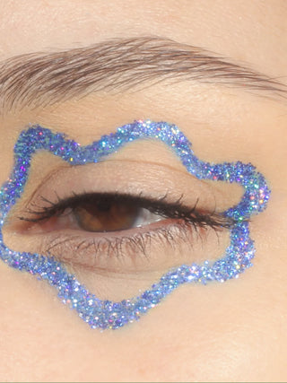BUNGALOW Spacepaste® is a holographic cobalt blue glitter concentrate. *Spacepaste's game-changing formula is a must-have staple of celebrity makeup artists & beauty editors because of its easy, no-mess application (no glue required!), comfortable wear (you can't even feel it!) and high-impact finish that lasts until you're ready to take it off!