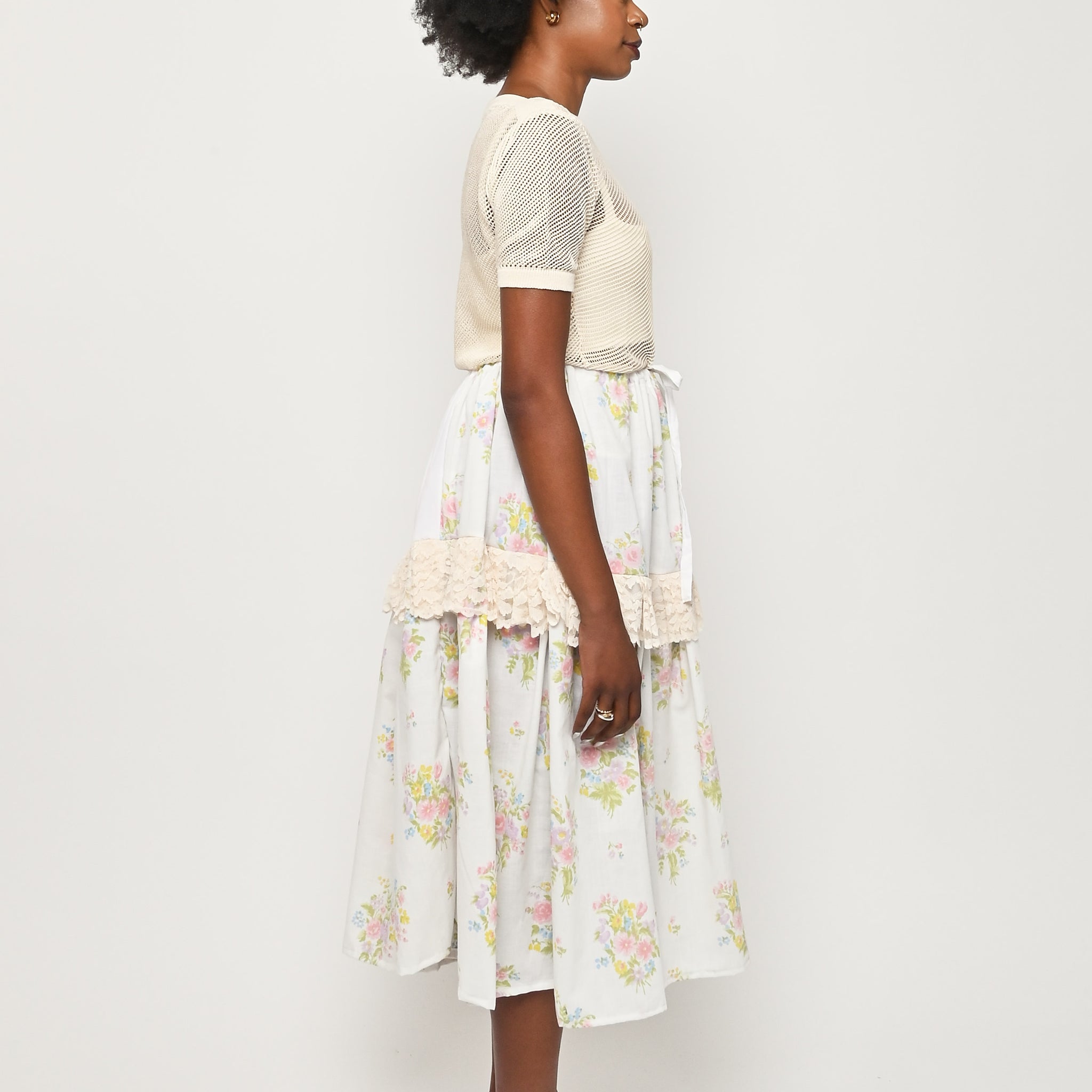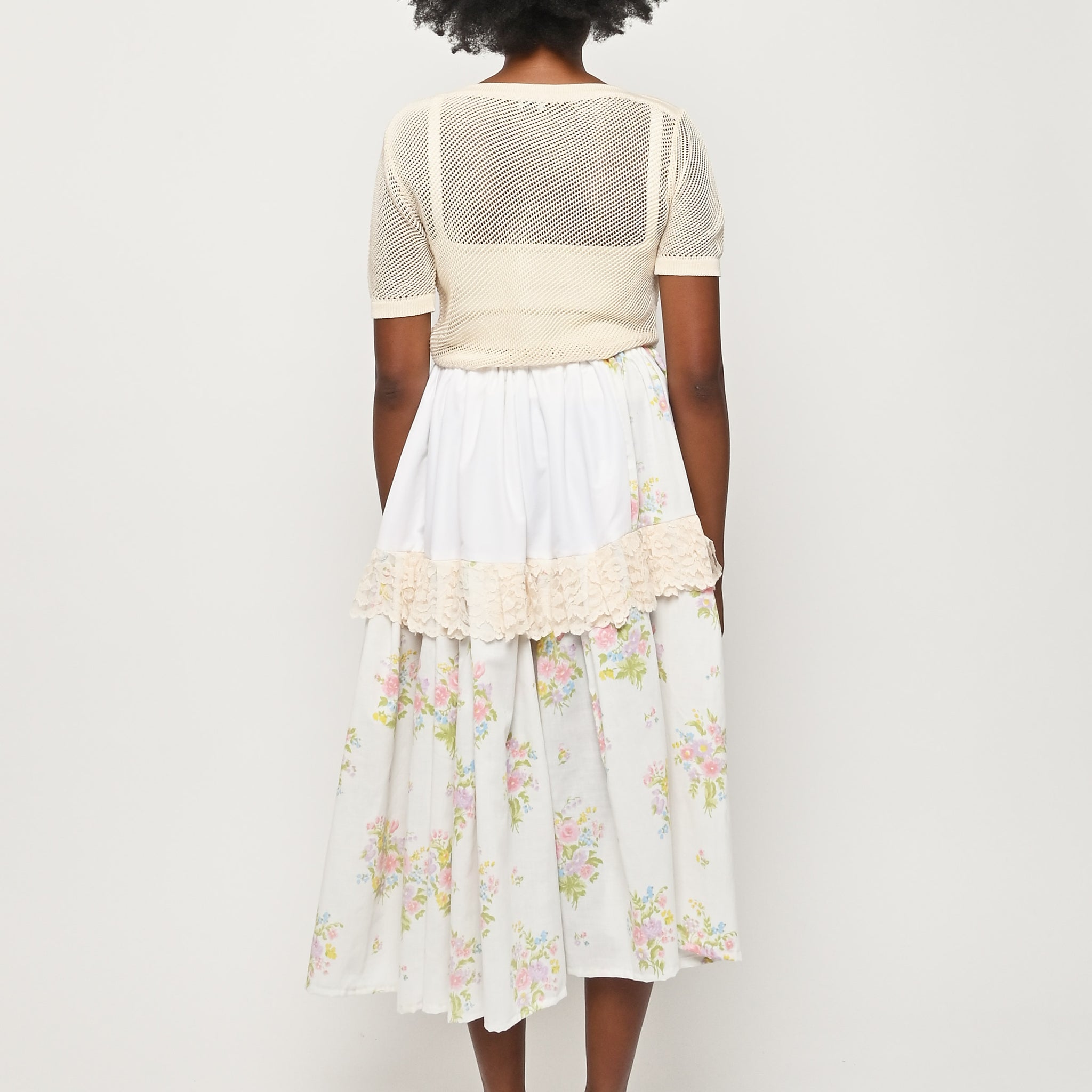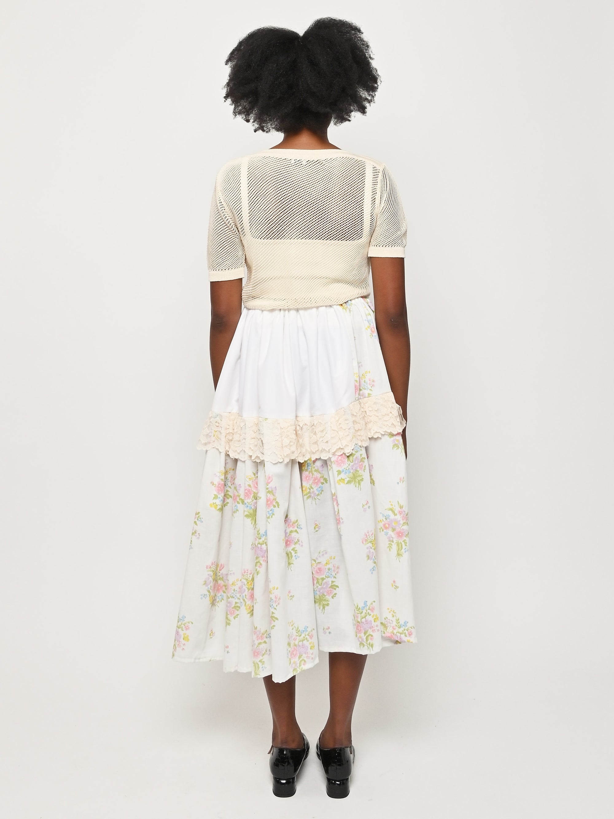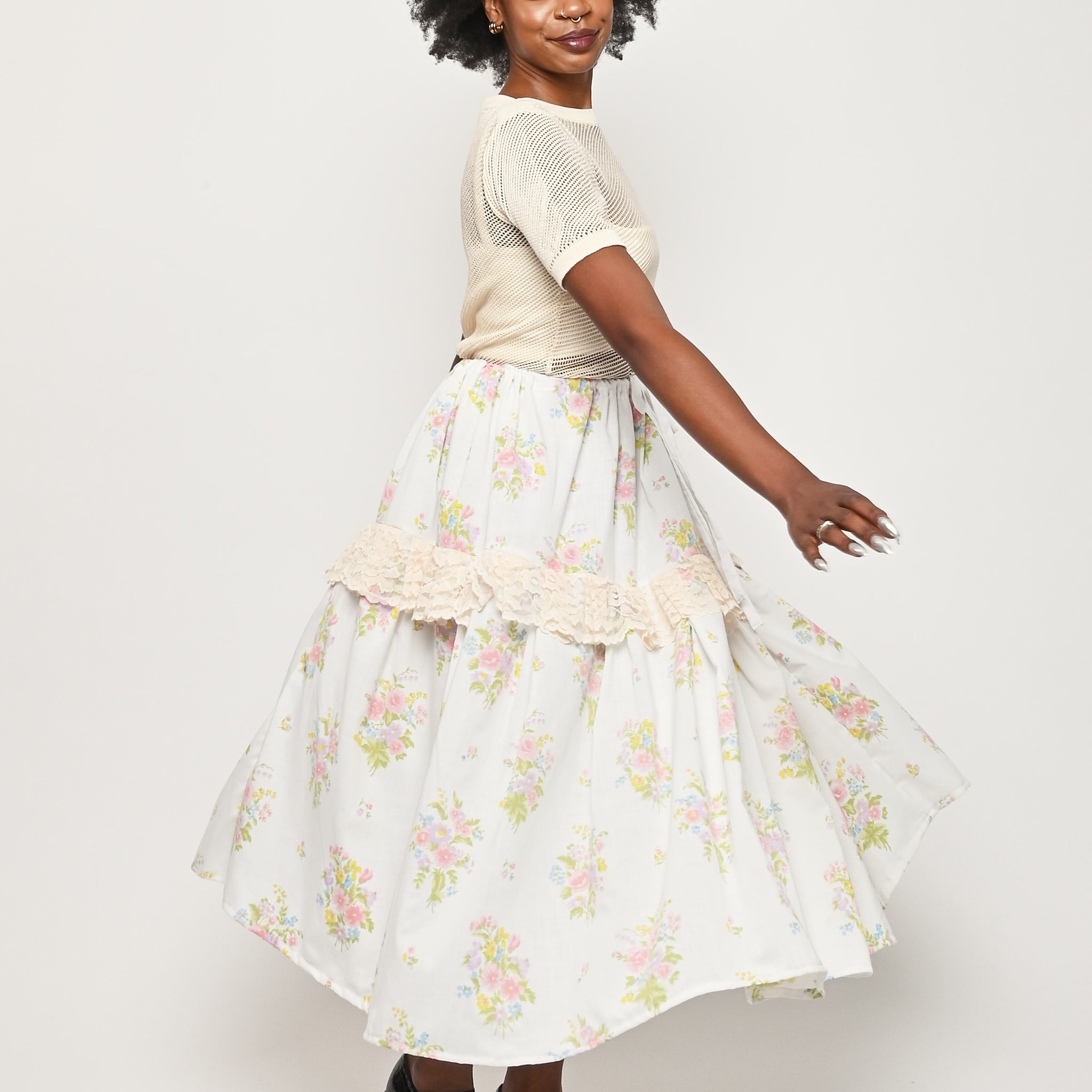 One of a kind Pastel Floral/Cream Lace Skirt handmade from upcycled materials by local Portland, OR designer Makmak.