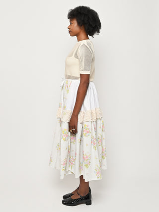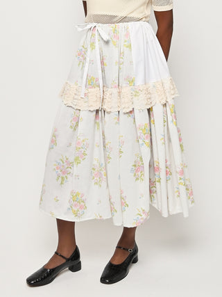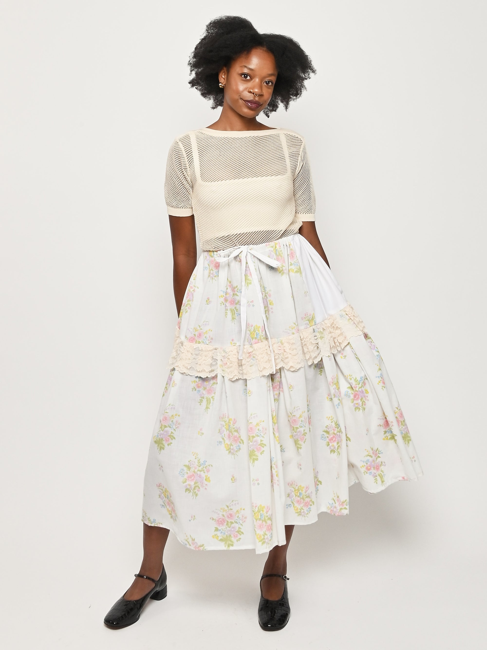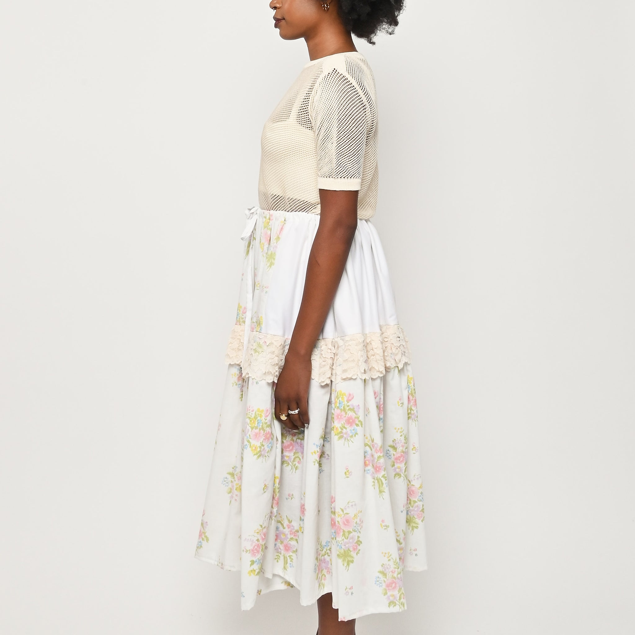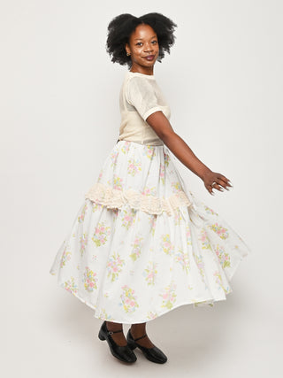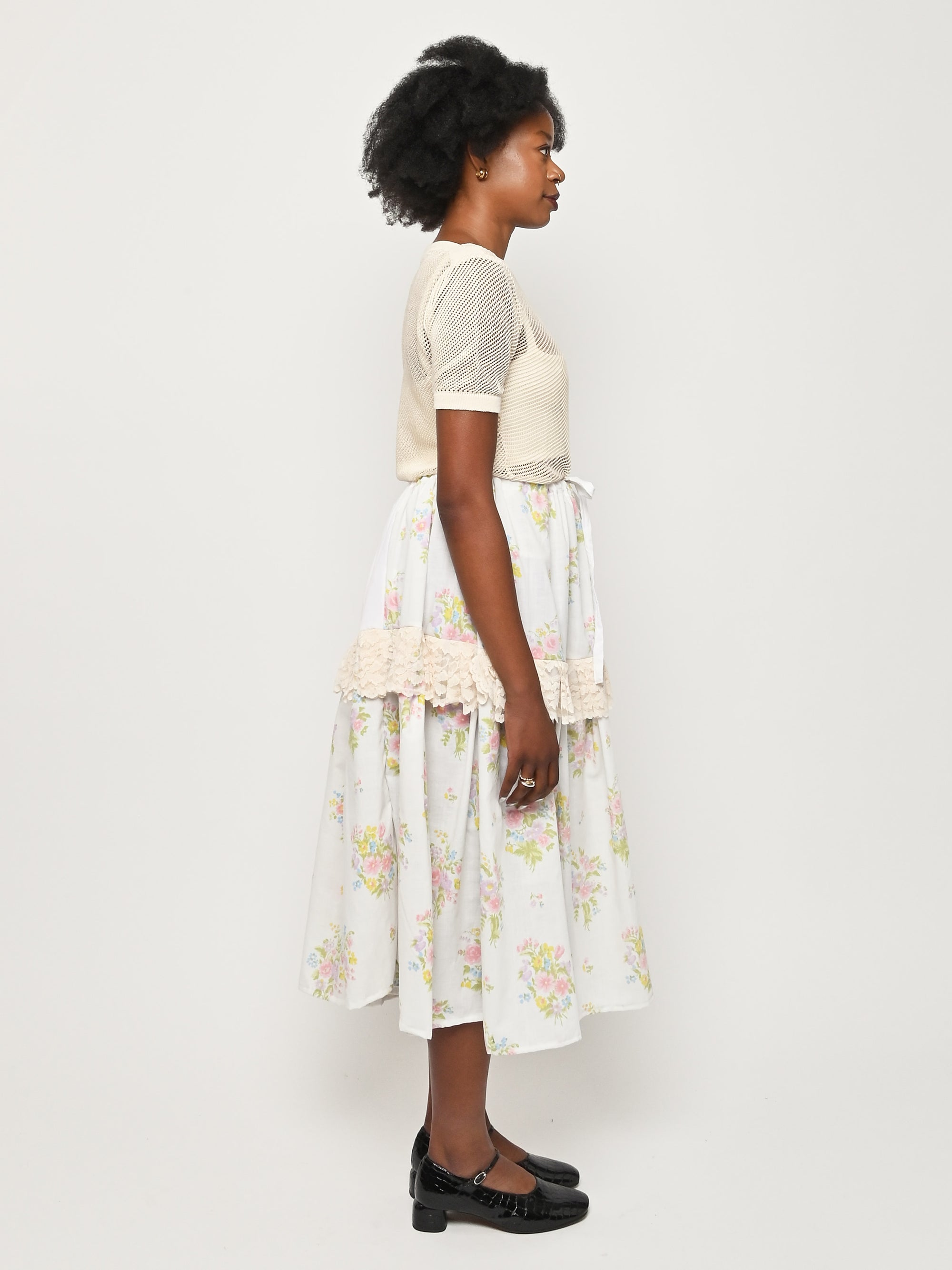 One of a kind Pastel Floral/Cream Lace Skirt handmade from upcycled materials by local Portland, OR designer Makmak.