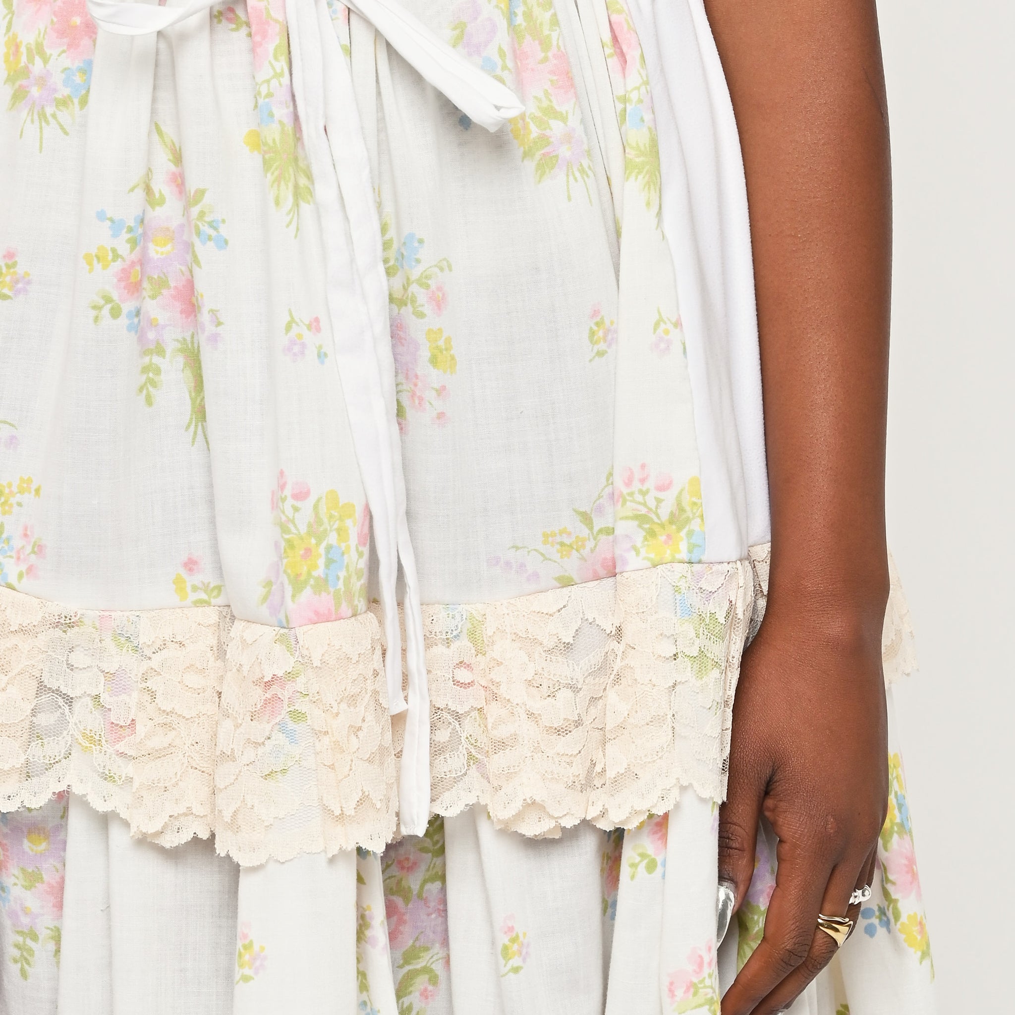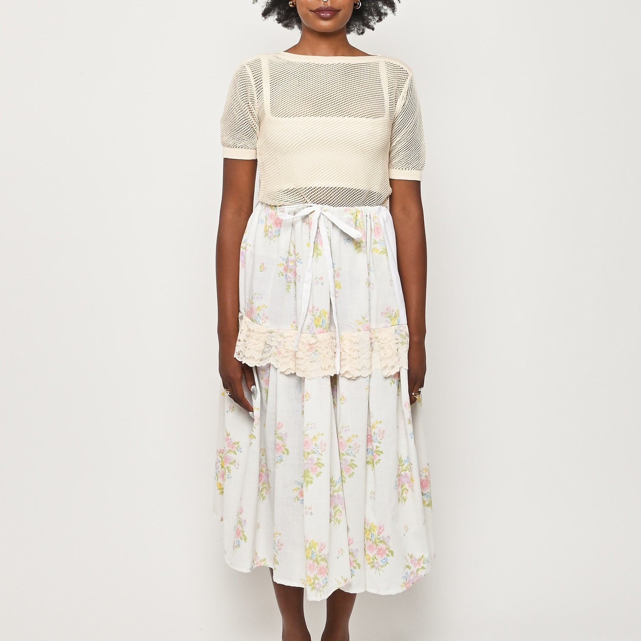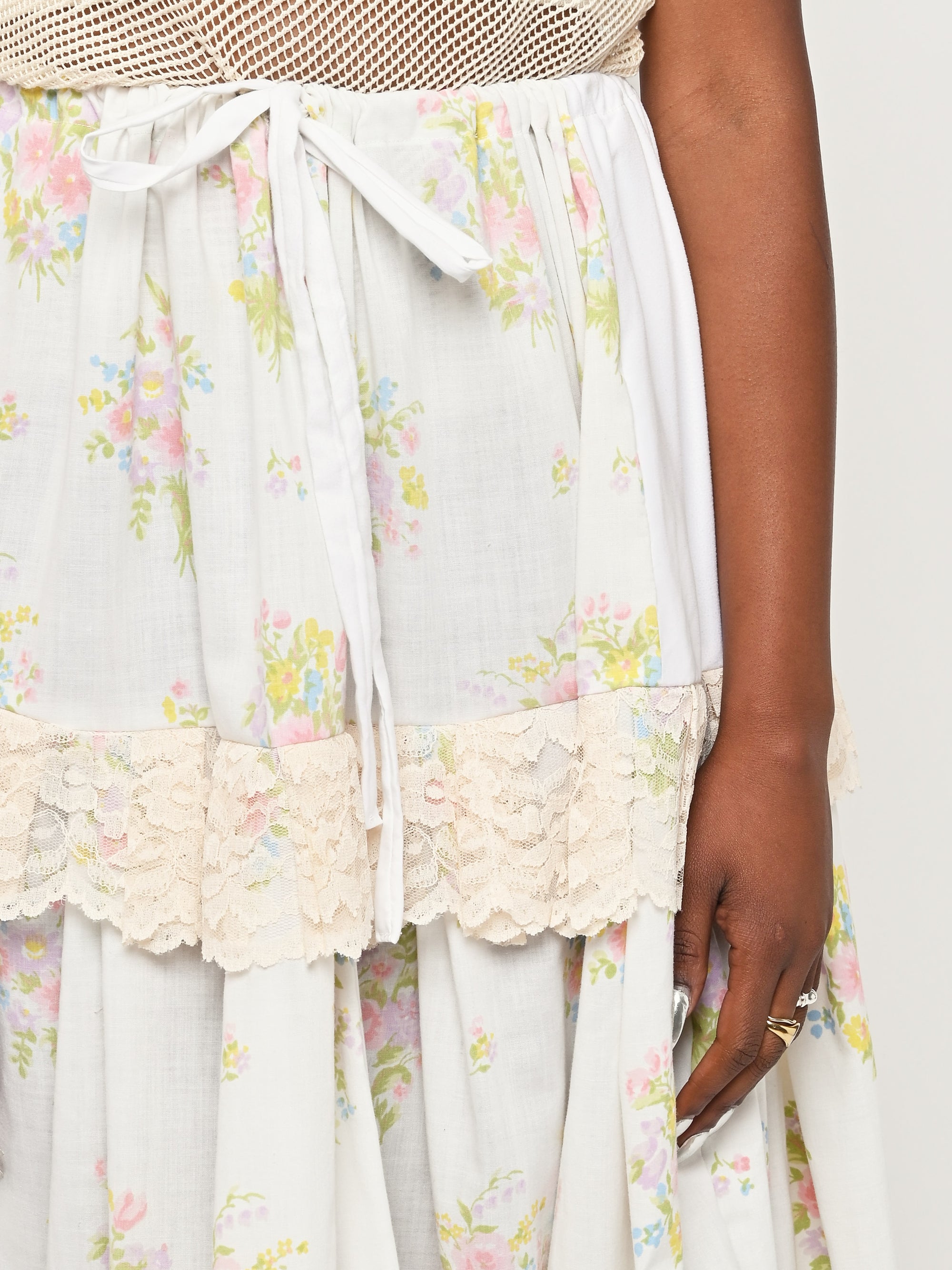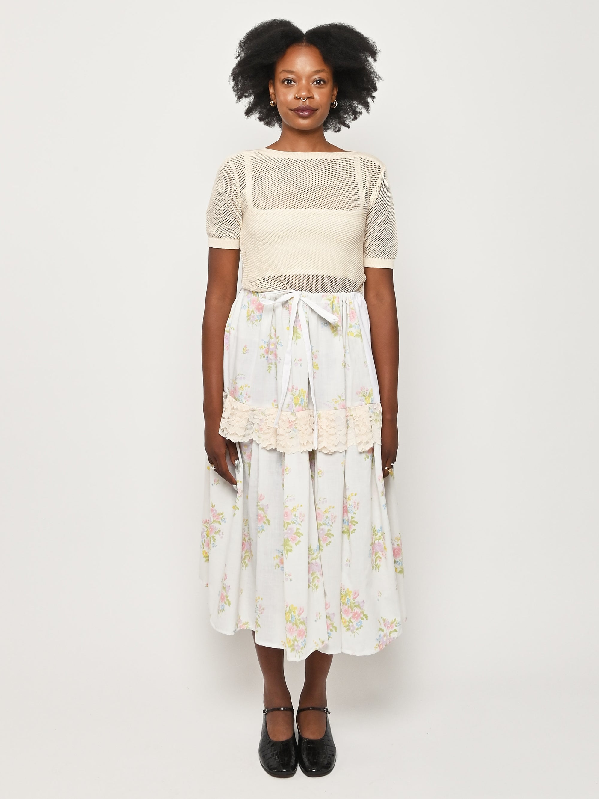 One of a kind Pastel Floral/Cream Lace Skirt handmade from upcycled materials by local Portland, OR designer Makmak.