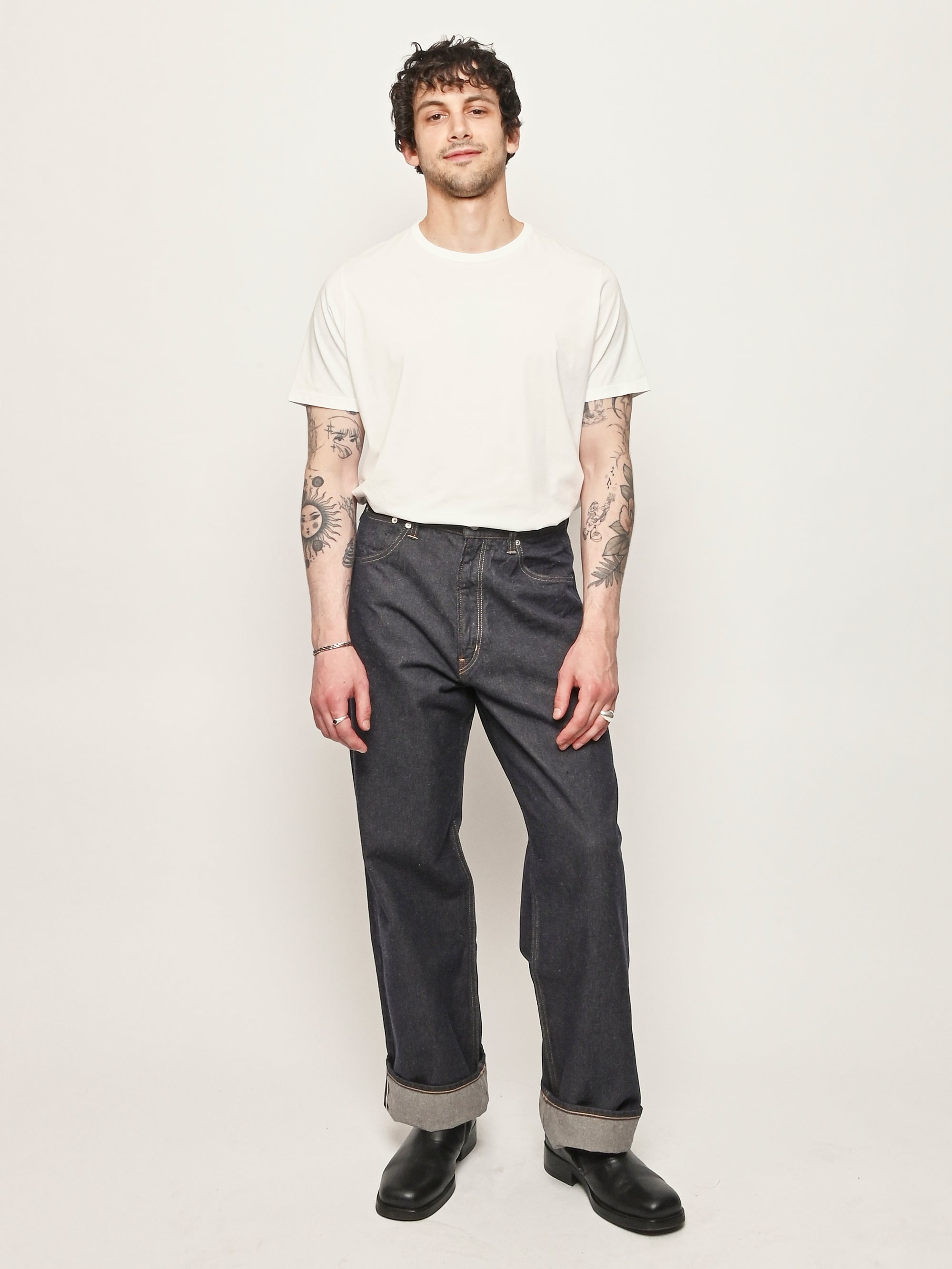 Inspired by 1950s American Denim workwear, this Norse Projects 5-pkt denim pant is crafted from broken twill cotton linen selvedge denim fabric from French mill Manufacture Métis. Featuring a mid-rise and wideleg, and modern functional design details. Finished with branded metal shank buttons and rivets, manufactured in Germany.
