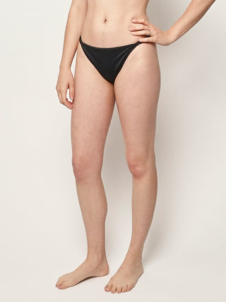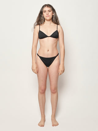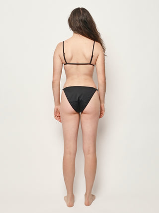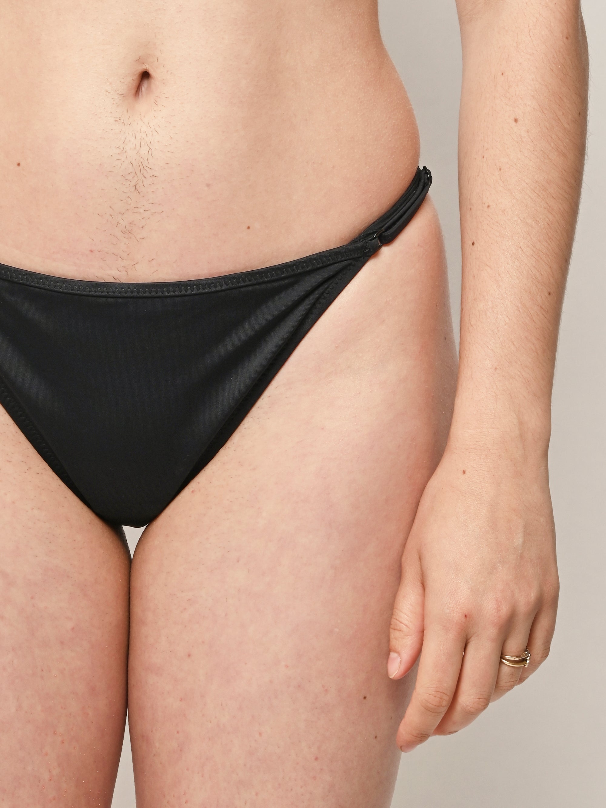 A classic and flattering string bottom, meant to sit anywhere on the hips you prefer. Finished with zig-zag stitching and rings and sliders at for an adjustable fit.