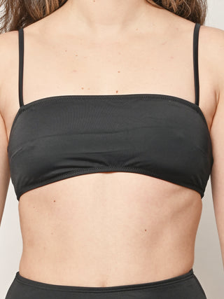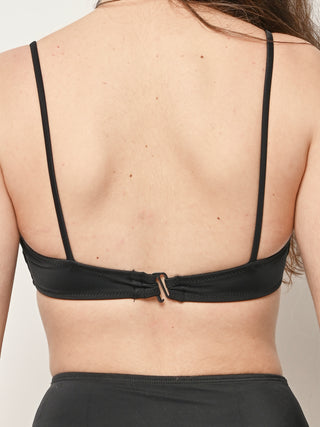 Straight neckline top with wide set straps and side seam darts for a versatile fit. Dyed to match hook closure for easy on and off.