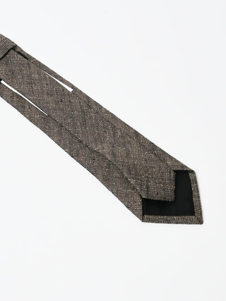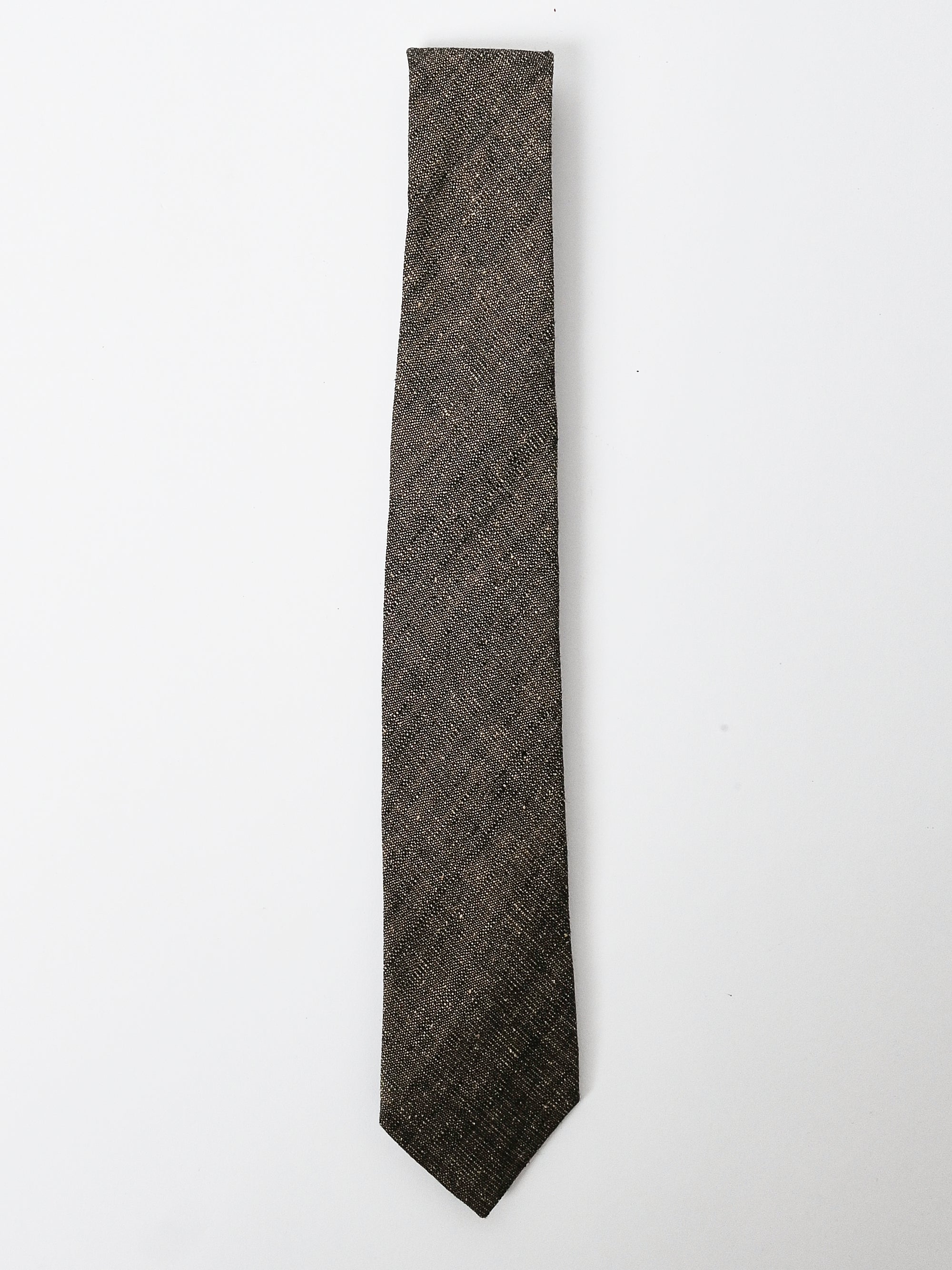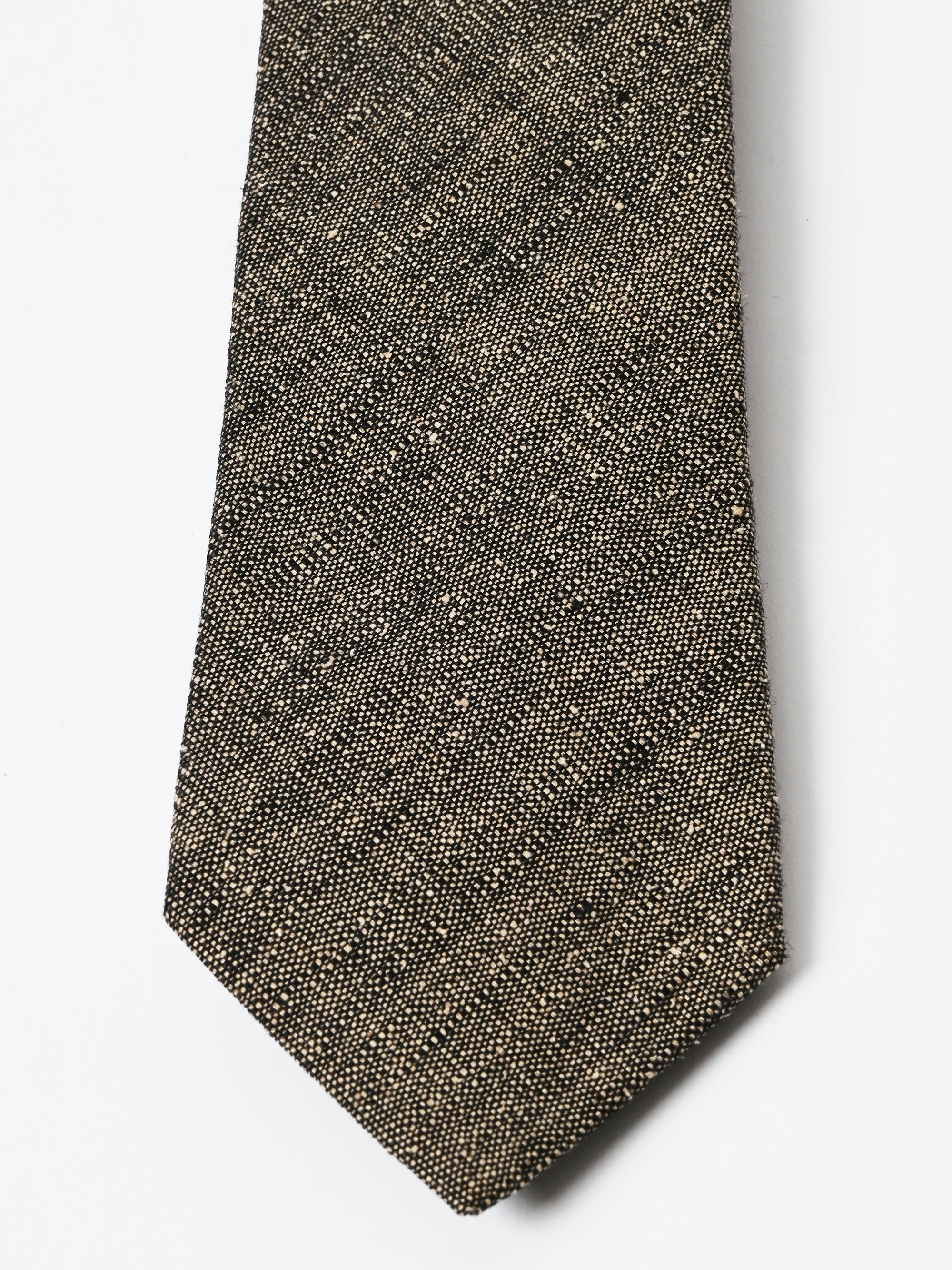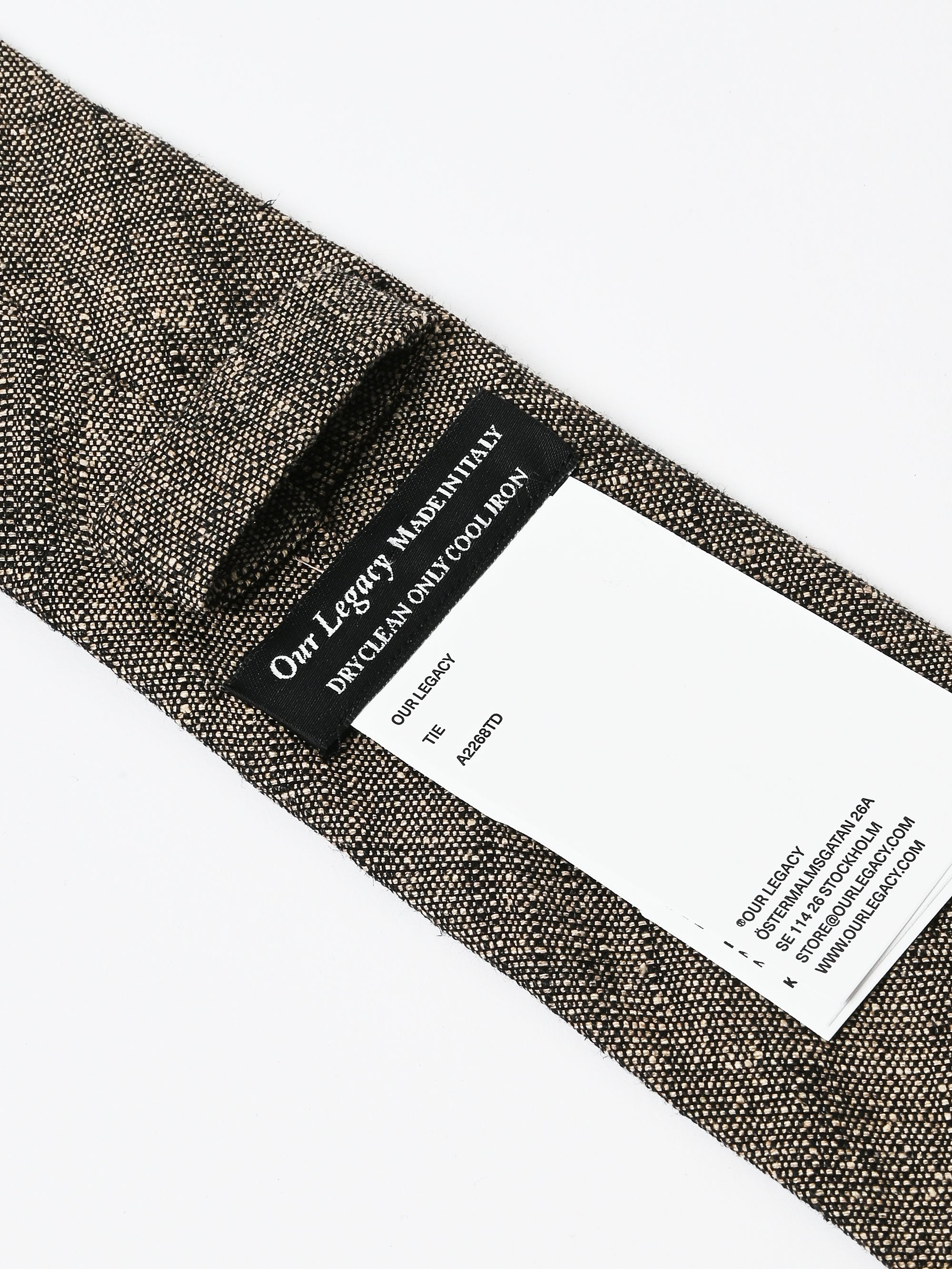 Our Legacy Tie in Deep Husk Soft Grain Weave. Produced in an Italian linen, silk and cotton blend fabric, this tie has a matte texture with a gentle gloss and a lightweight feel. It features a classic pointed end, measures 7 cm, and is fully lined.