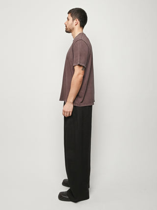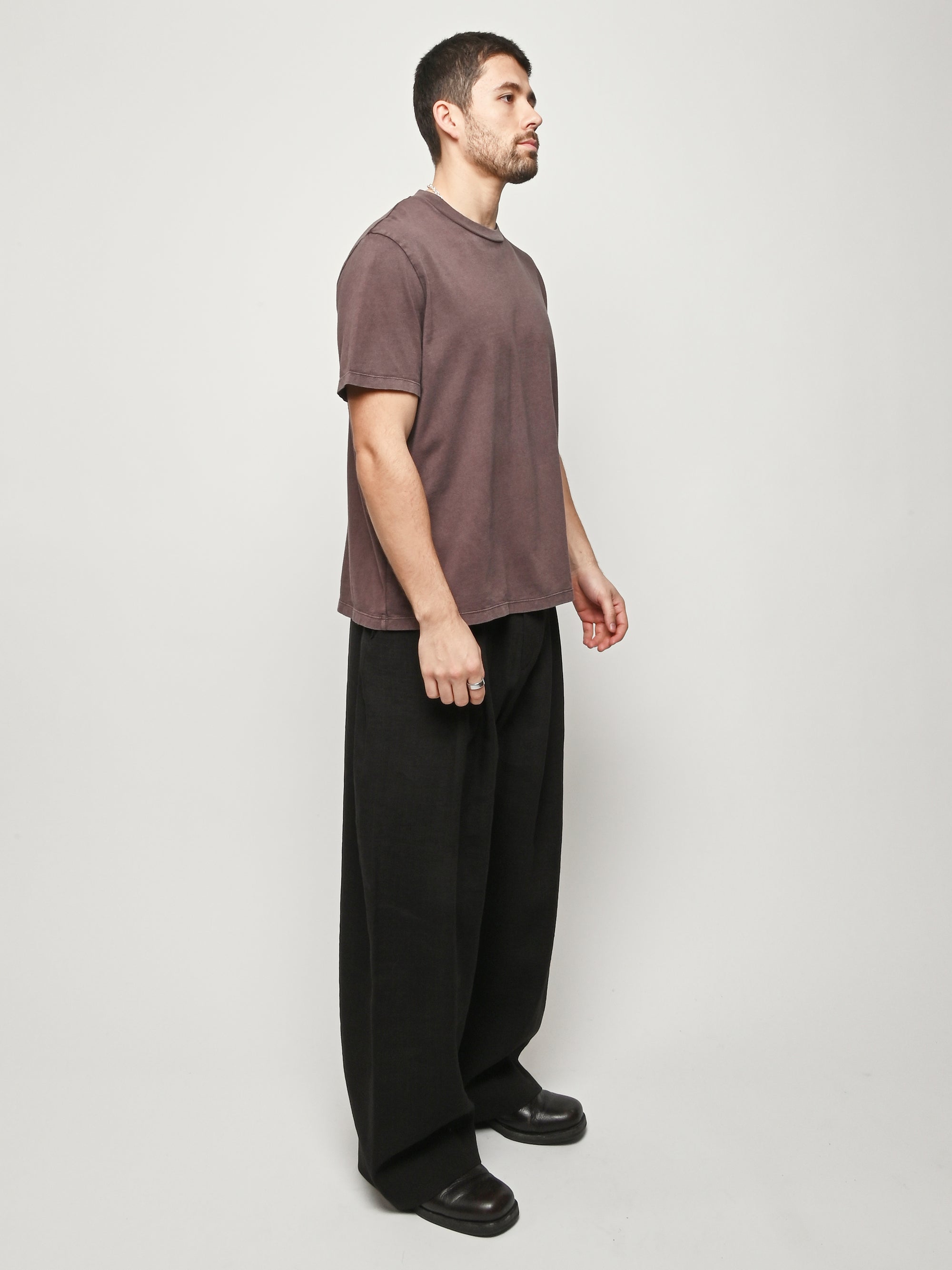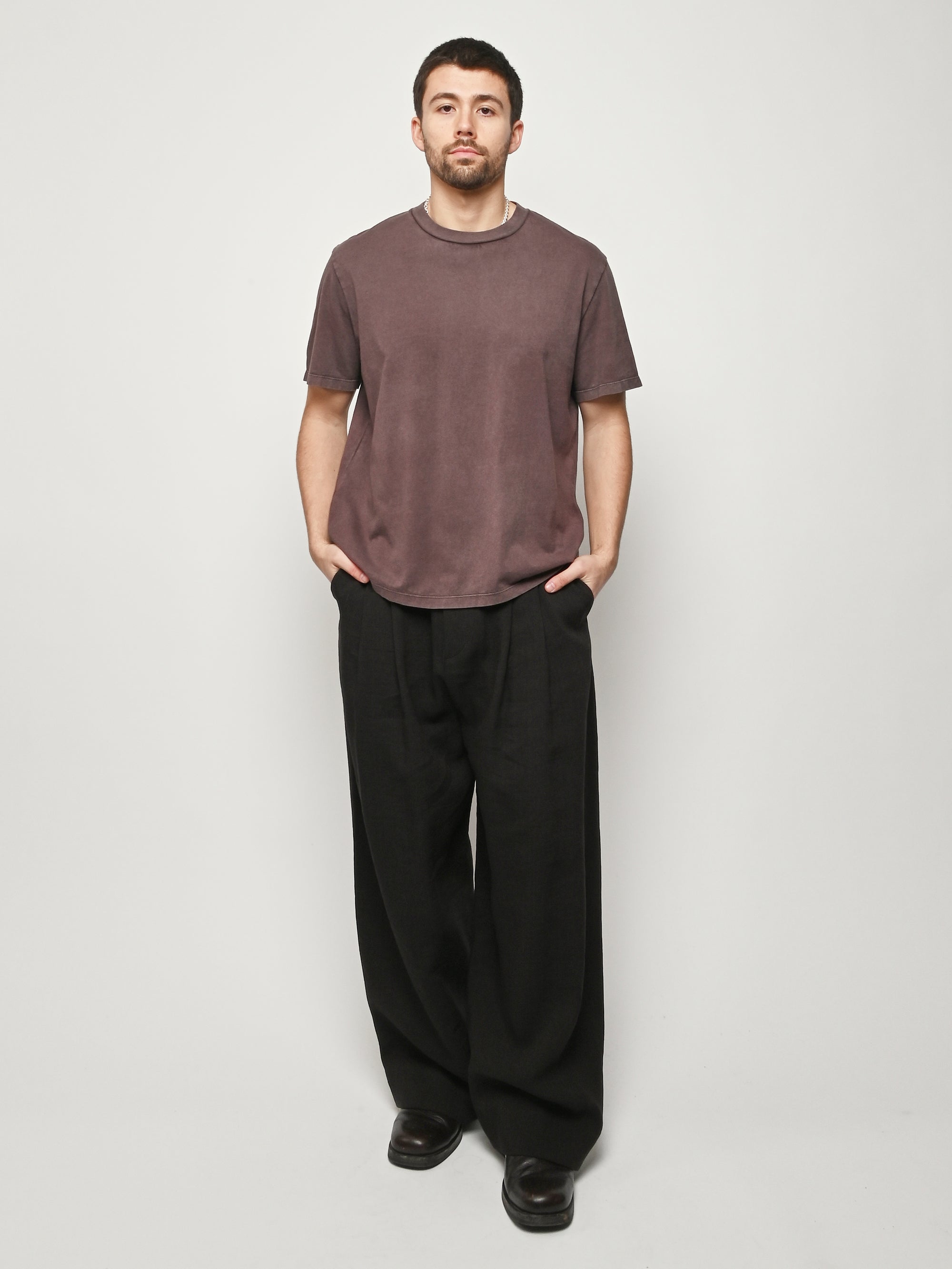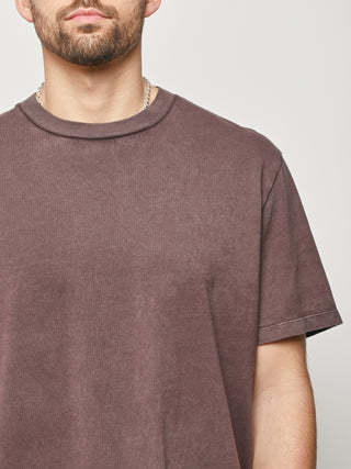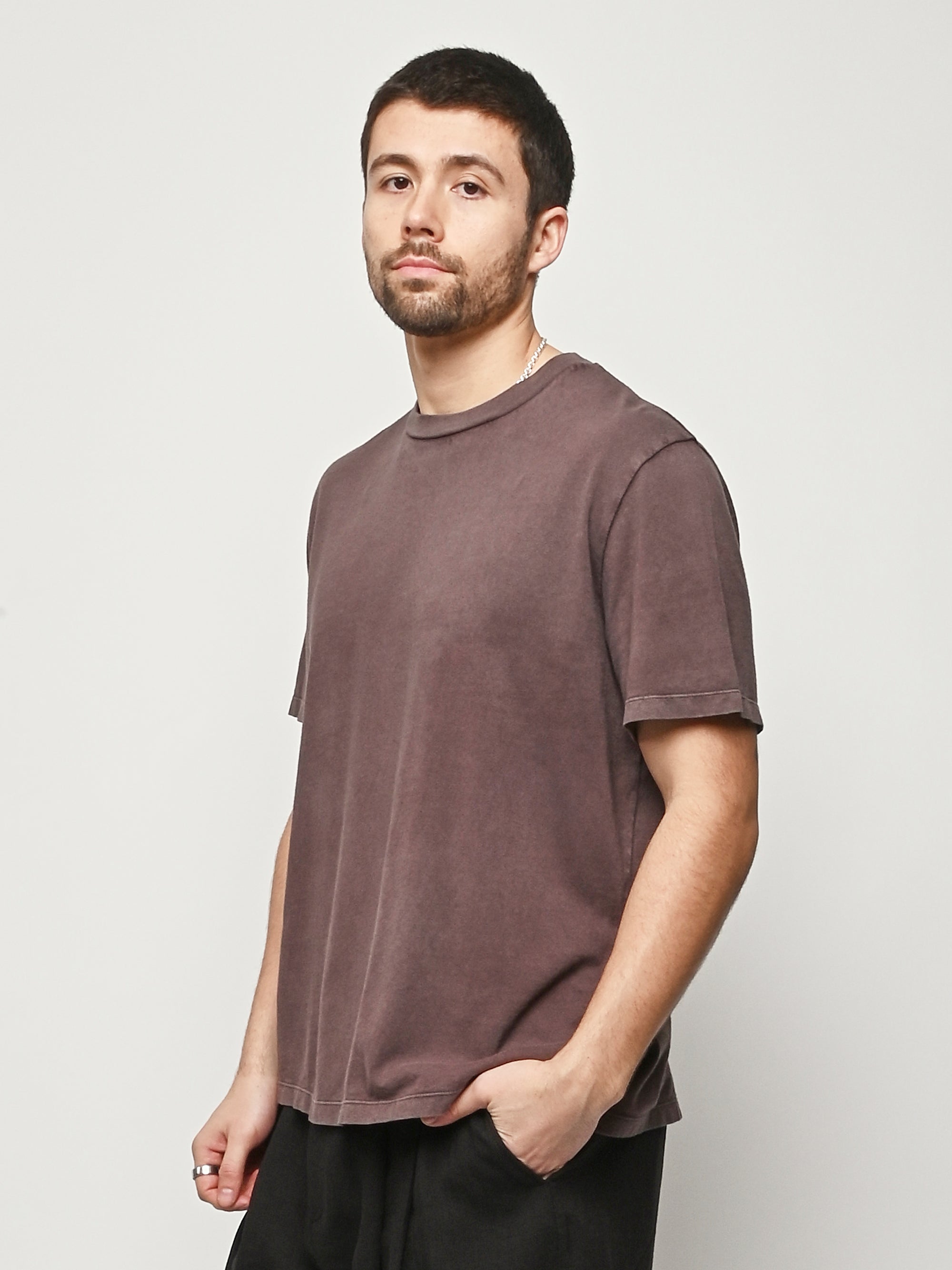Our Legacy's Box T-Shirt in Worn Brown Legacy Jersey. Produced in a vintage washed Portuguese cotton jersey, the mens Box T-Shirt has a relaxed, boxy fit and features a ribbed collar and a straight hem.