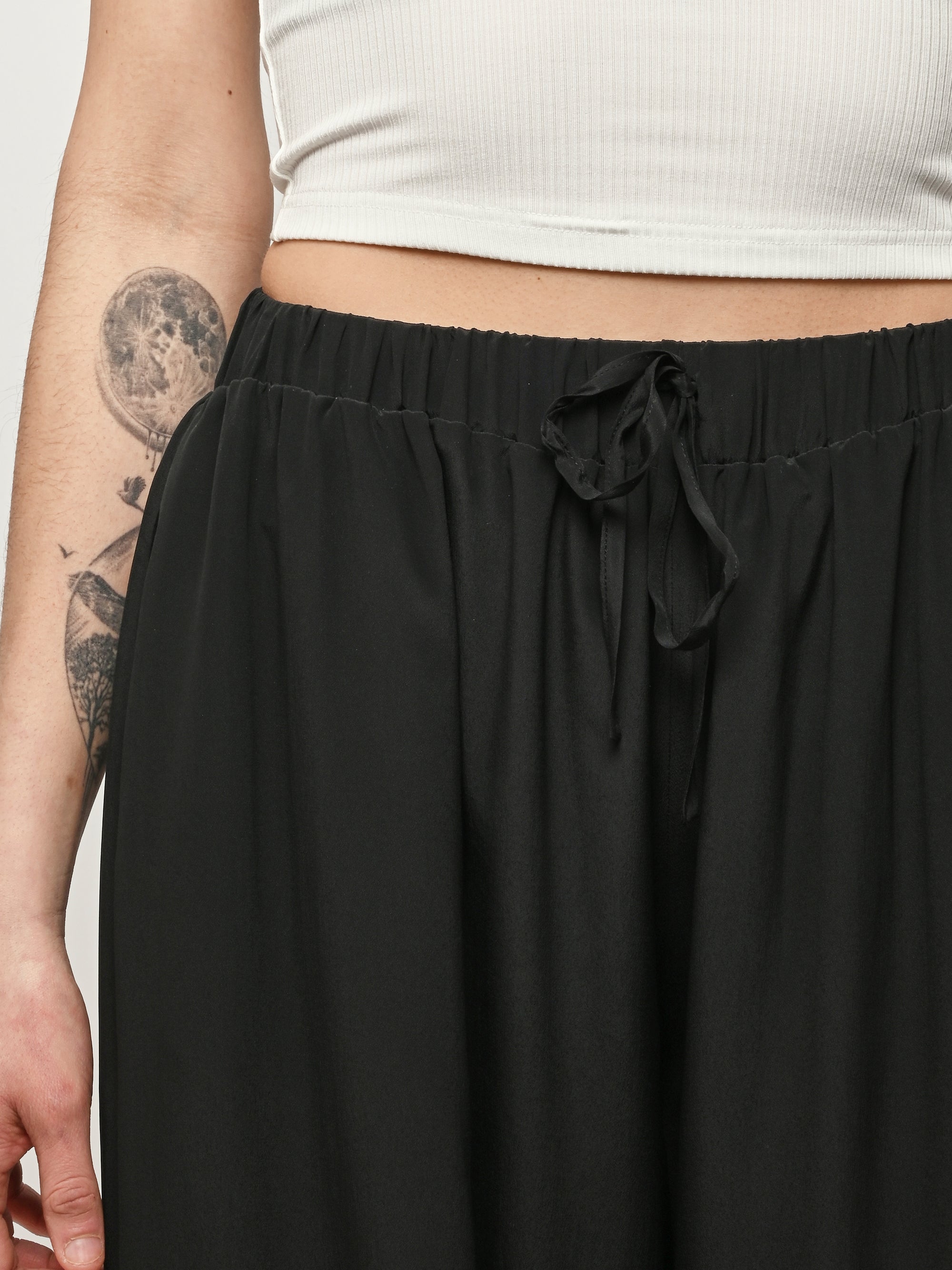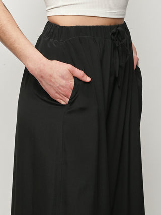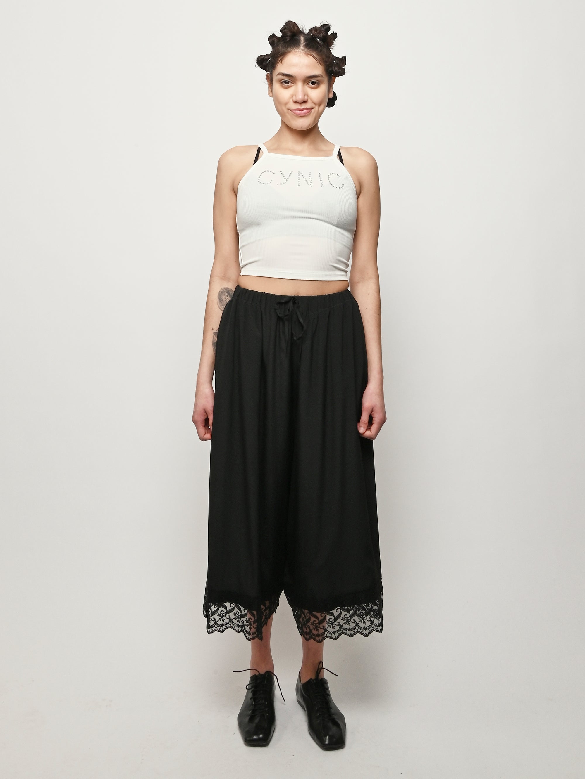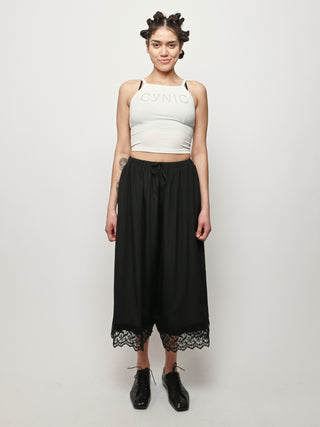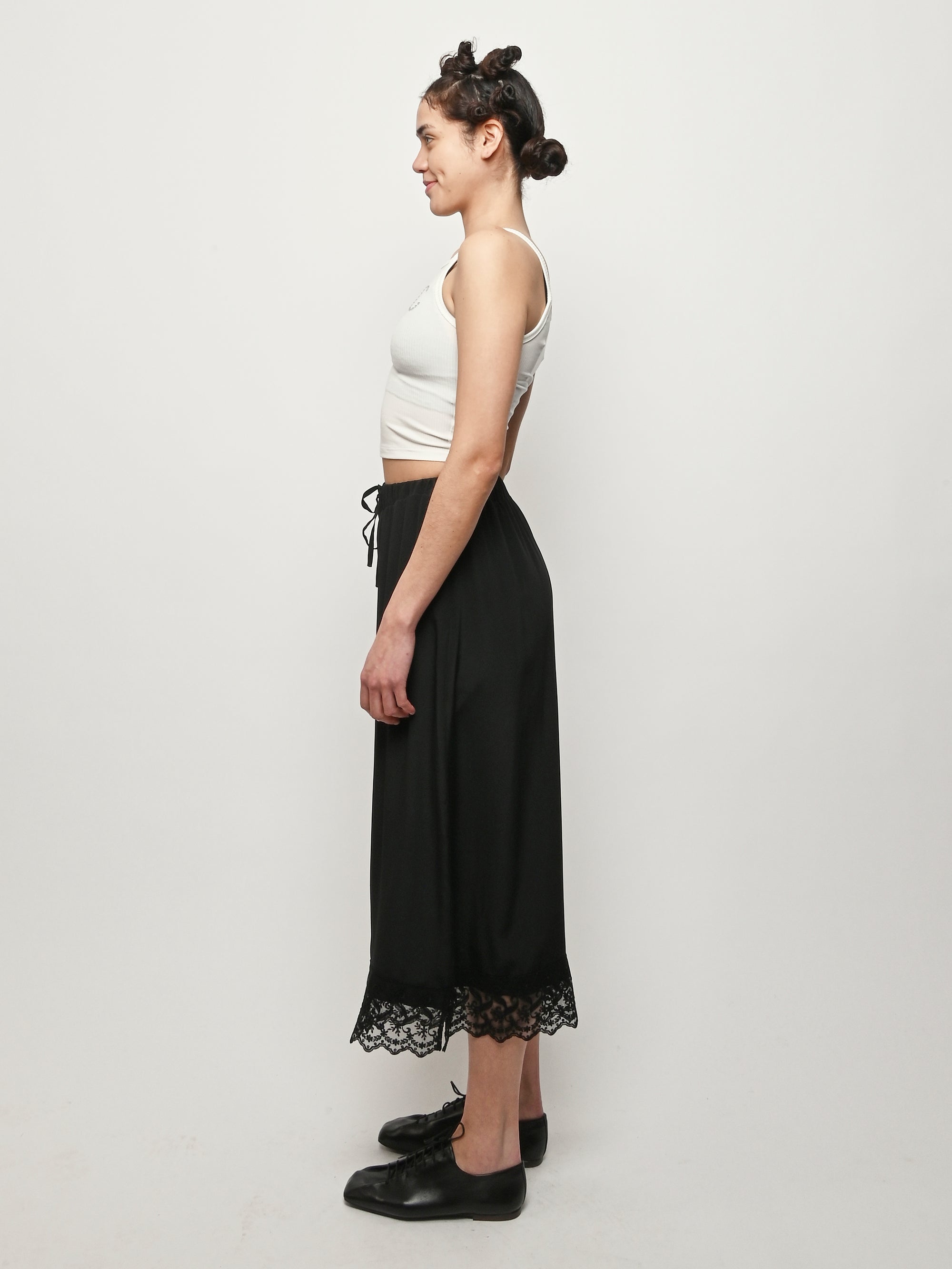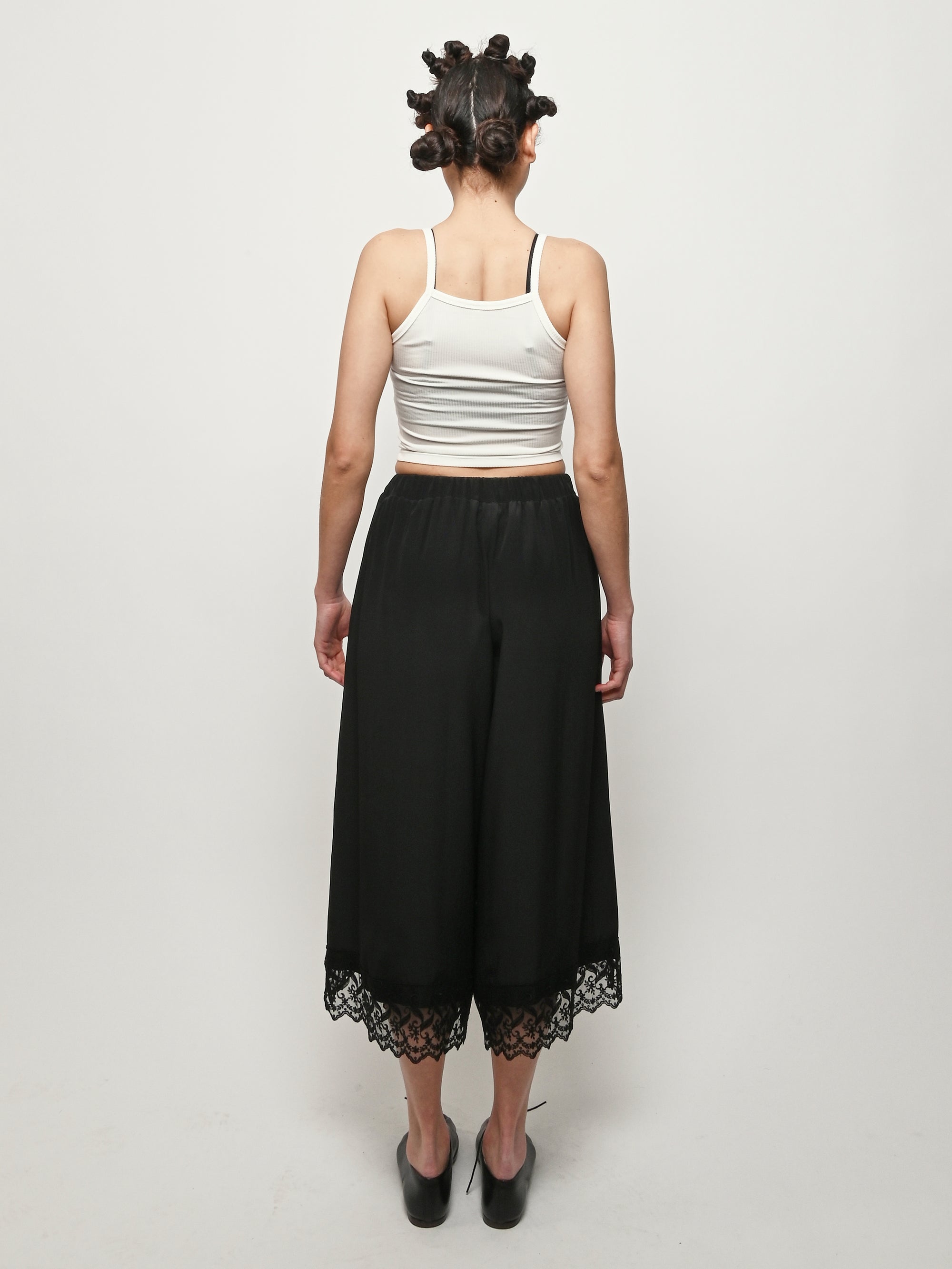 A cropped trouser with an elasticated waist, it is made out of the brand's signature silk crepe de chine. The hem Is finished with a lace trim for a feminine touch.