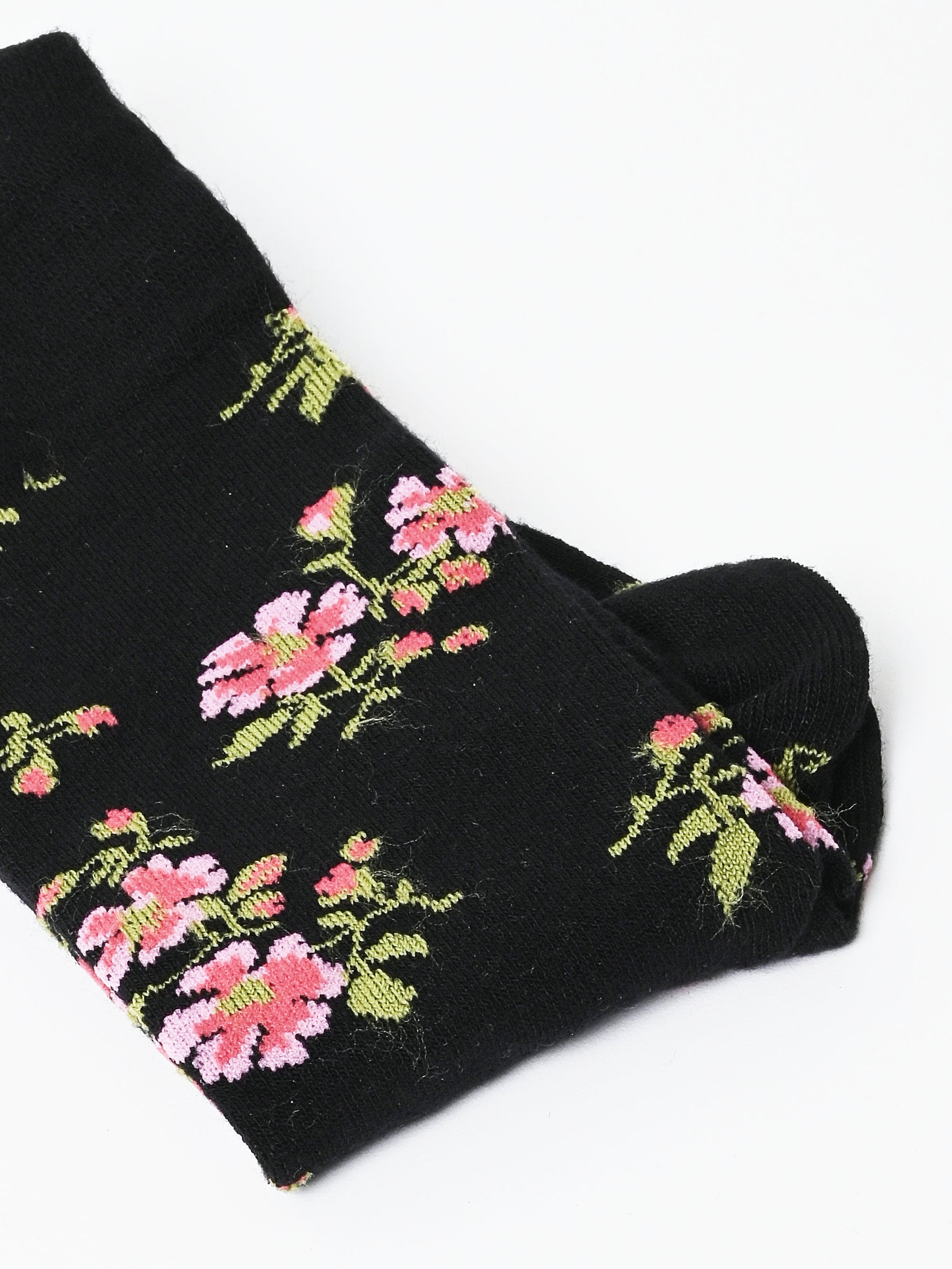 Black Floral Tiny Flower Jacquard Ankle Socks