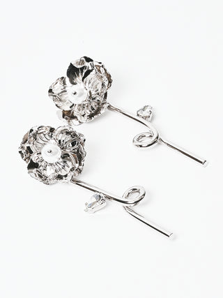 Silver Blooming Poppy Drip Earrings