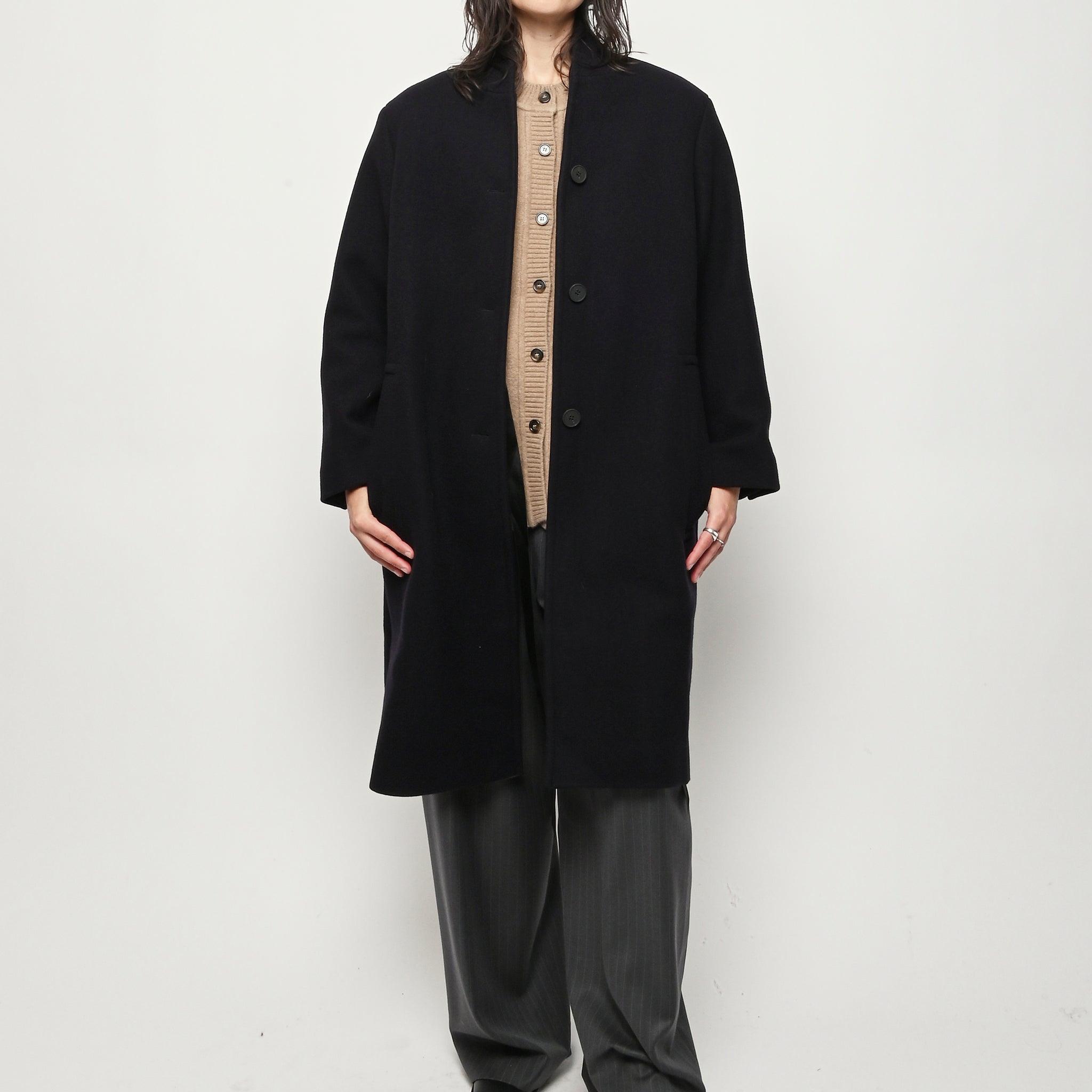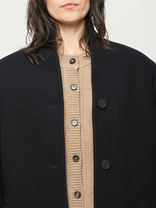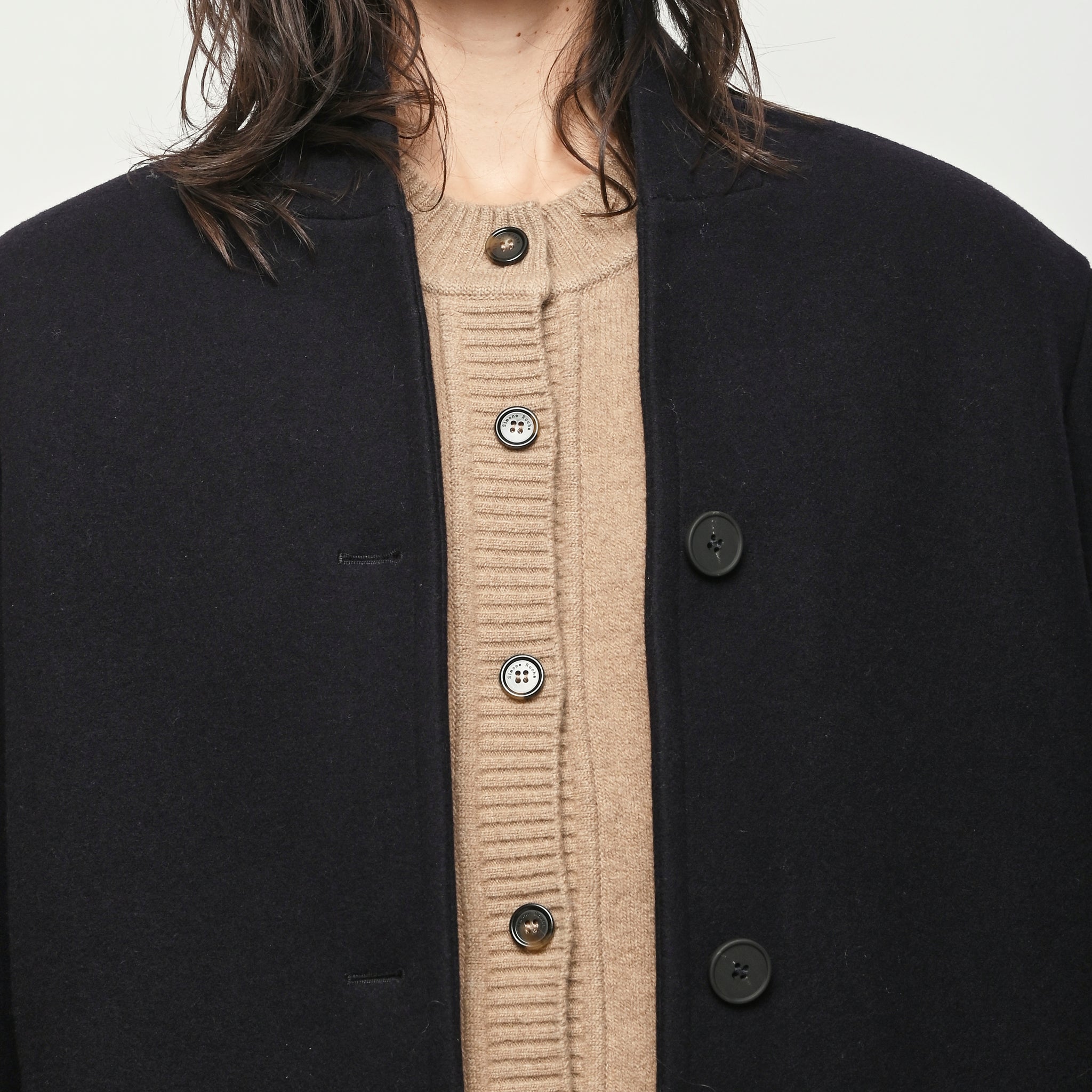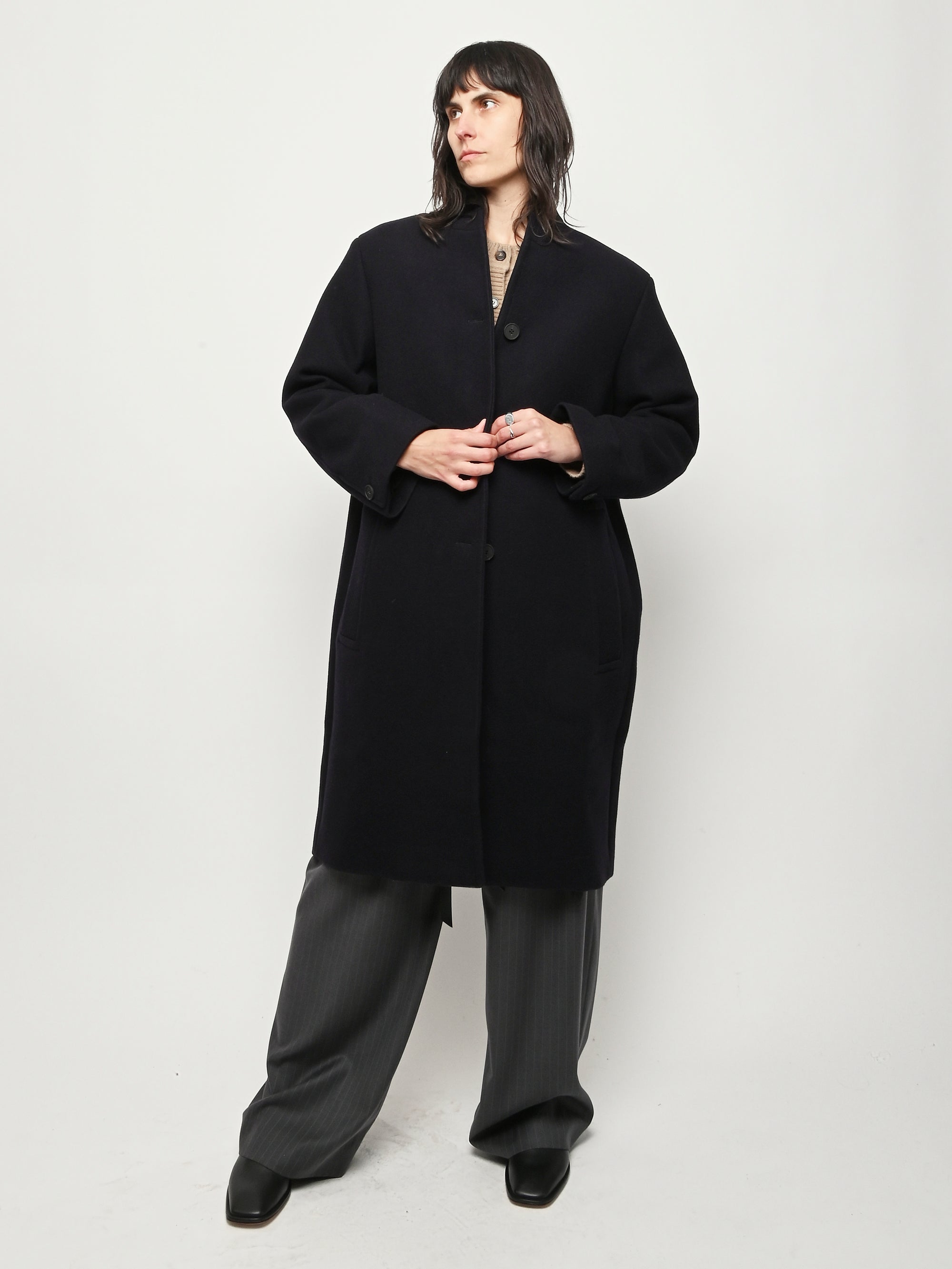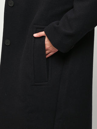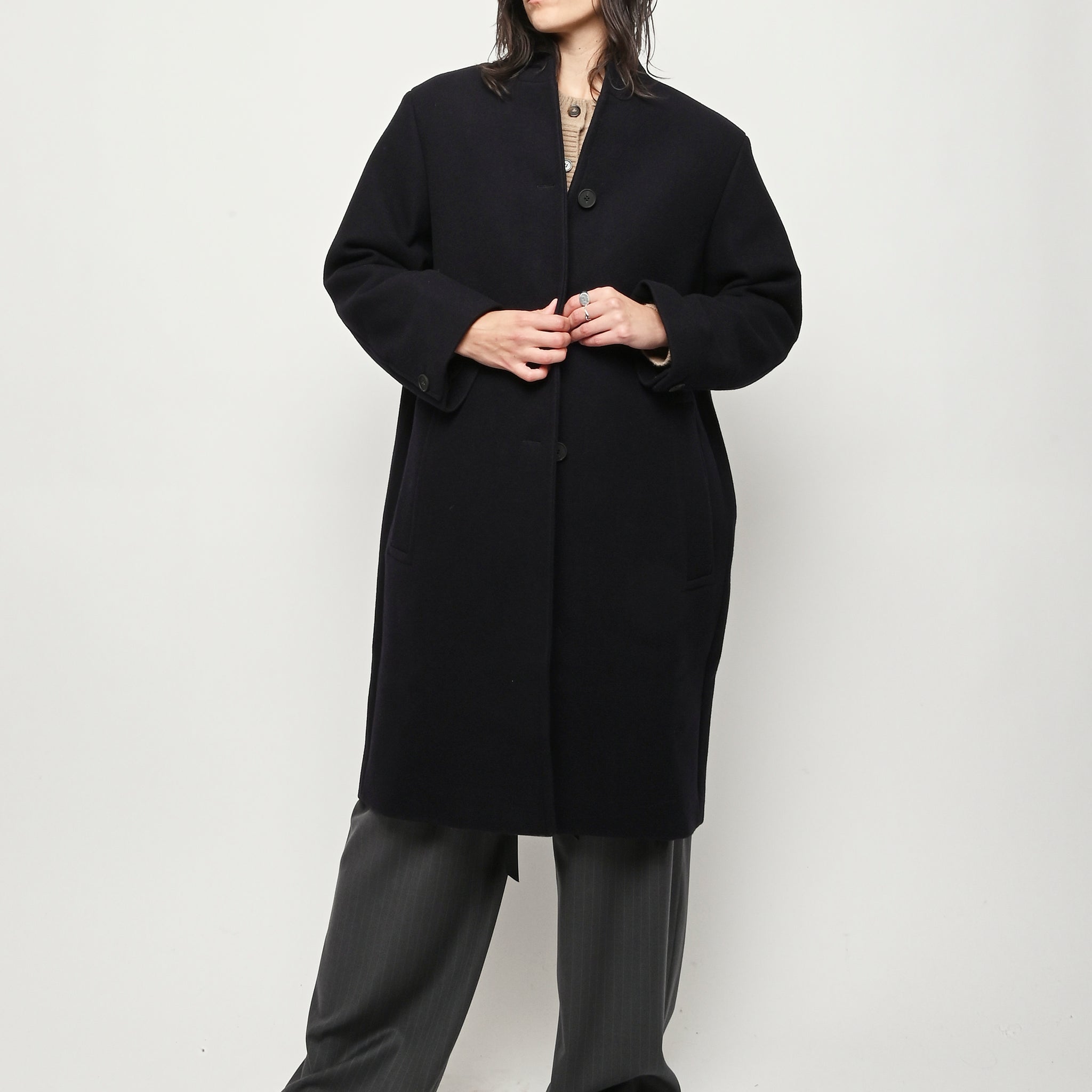 A streamlined take on a traditional tailored overcoat, The Morro Coat by Studio Nicholson is underpinned by their focus on quality fabrics. It’s cut from an Italian-milled double wool cashmere chosen for its satisfying heft and soft, luxurious hand feel. The coat is constructed with a raised collar and shaped with a gentle roll in the shoulder that accentuates the slim, softly cocooning silhouette.