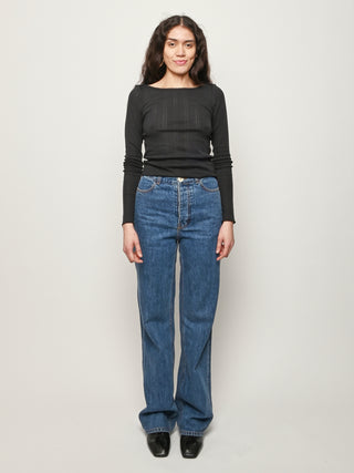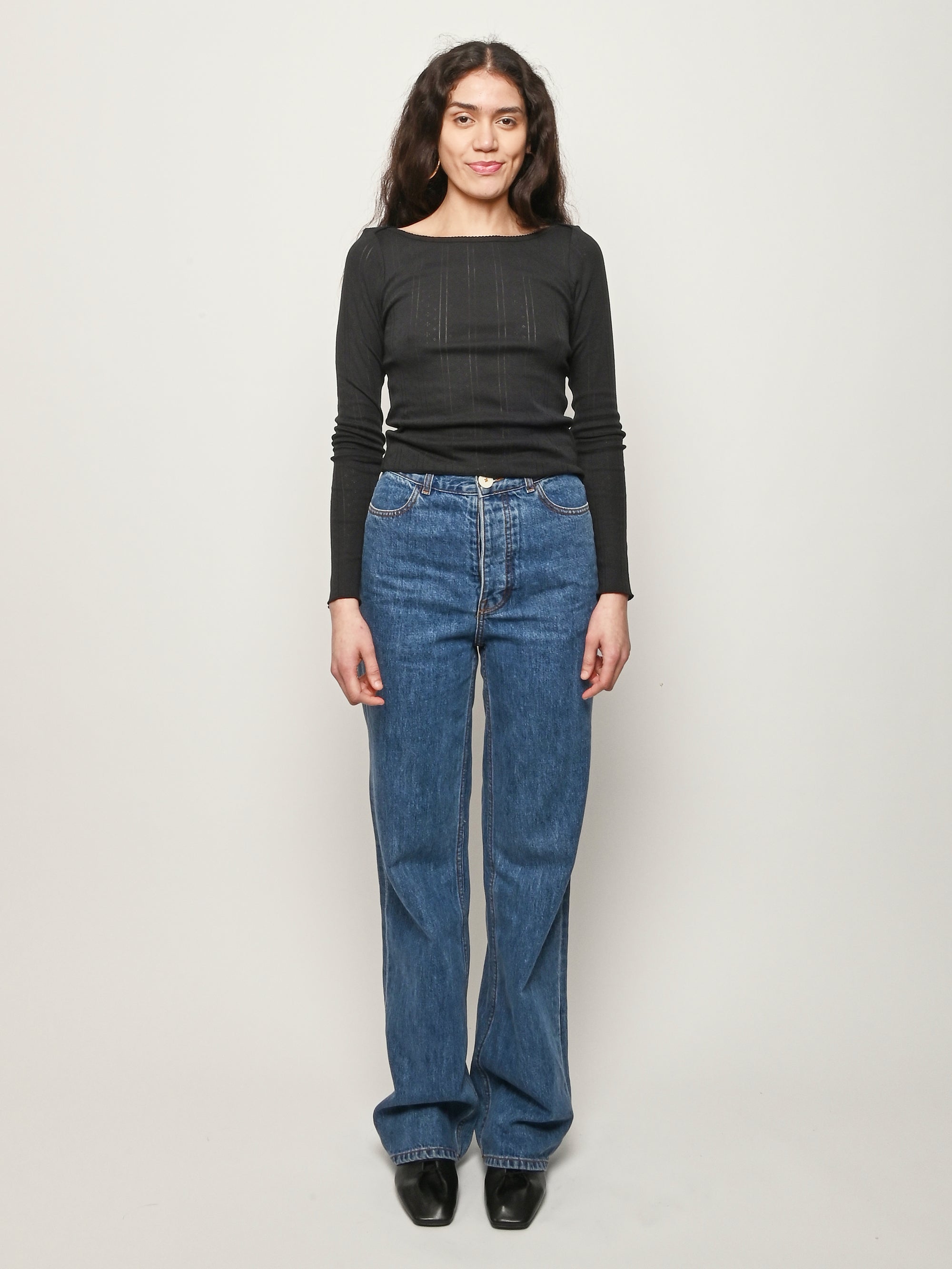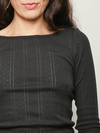 The perfect, classic boat-neck cut silhouette by Cou Cou, with elegant long sleeves.
