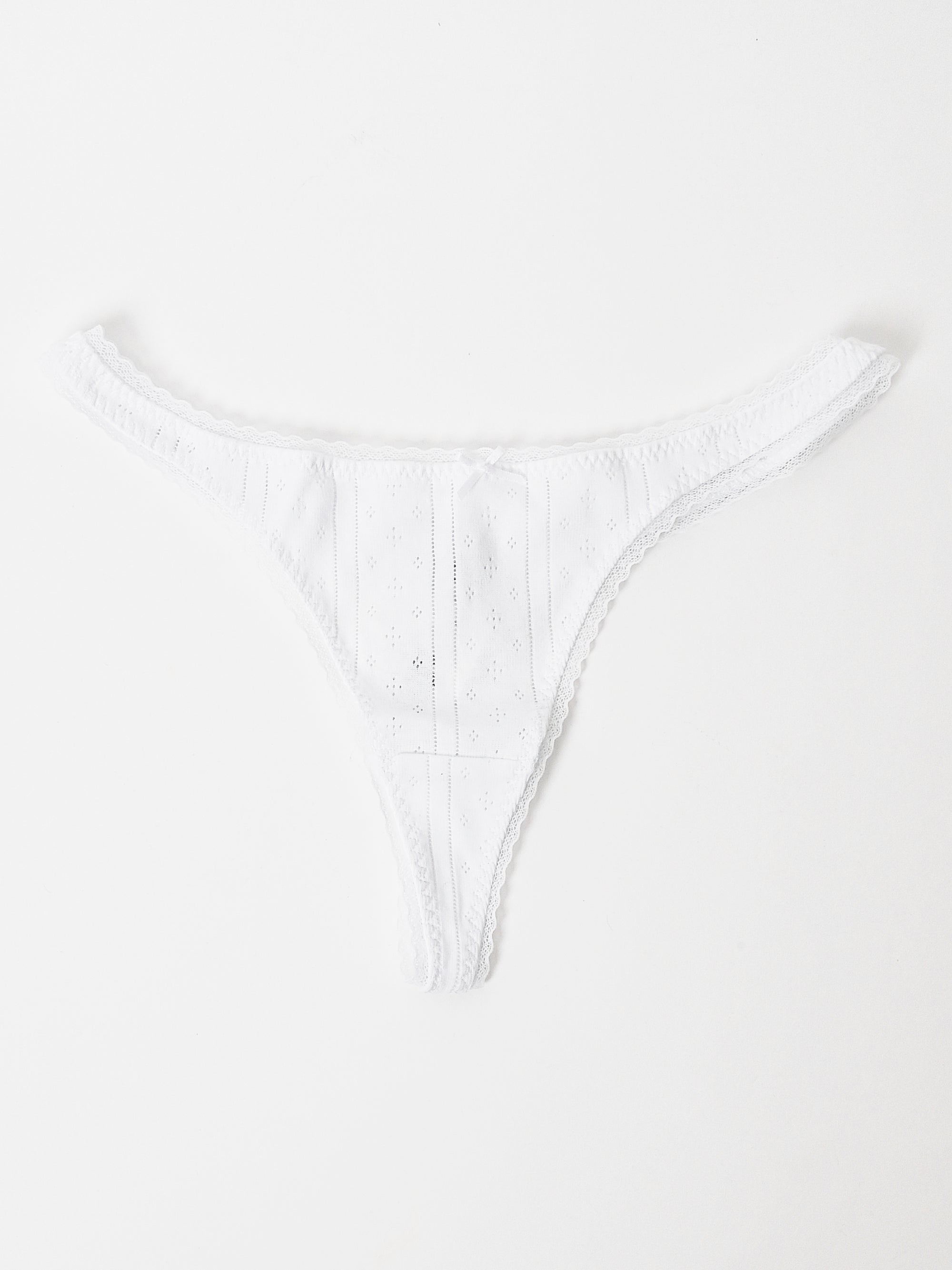 Meet your new everyday thong. Seamless enough to wear under your silkiest slip dress and soft enough to pair with your favourite sweats, The Thong is the perfect go-to for barely-there, daily wear. Consciously made with Cou Cou's signature, bespoke 100% Organic Cotton Pointelle.