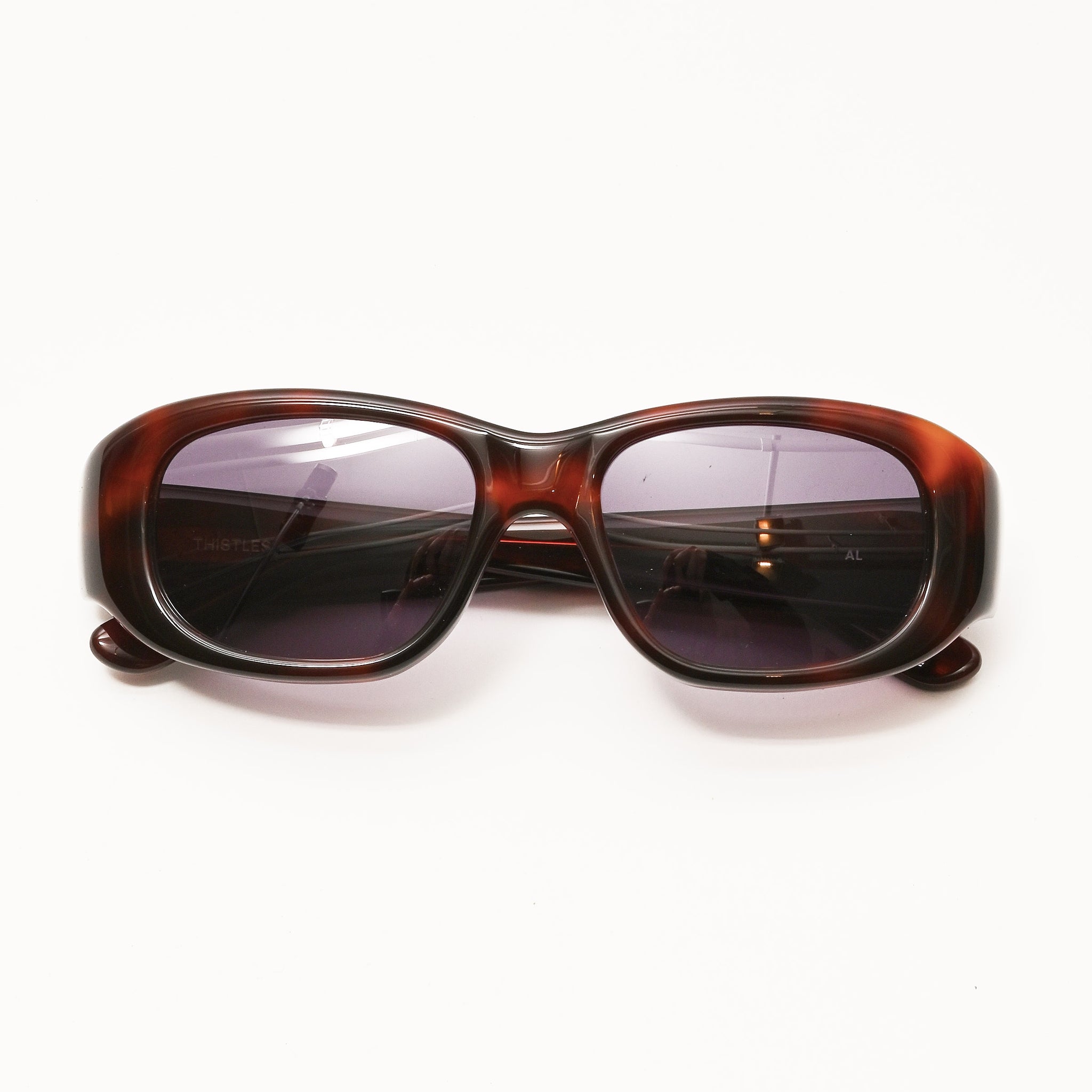 The AL is a voluminous rectangular frame with soft curves and bold edges. Paying homage to a 60s Jackie Onassis silhouette with a twist of 90s edge, this glam, yet refined style can be worn fitted over the eyebrows or sitting comfortably on the bridge of the nose. The AL is made in the highest quality cellulose acetate, a plant-based plastic composed of cotton fibers and wood pulp. Each pair features five-barrel hinges for durability and CR-39 lenses for UV protection and is handcrafted.