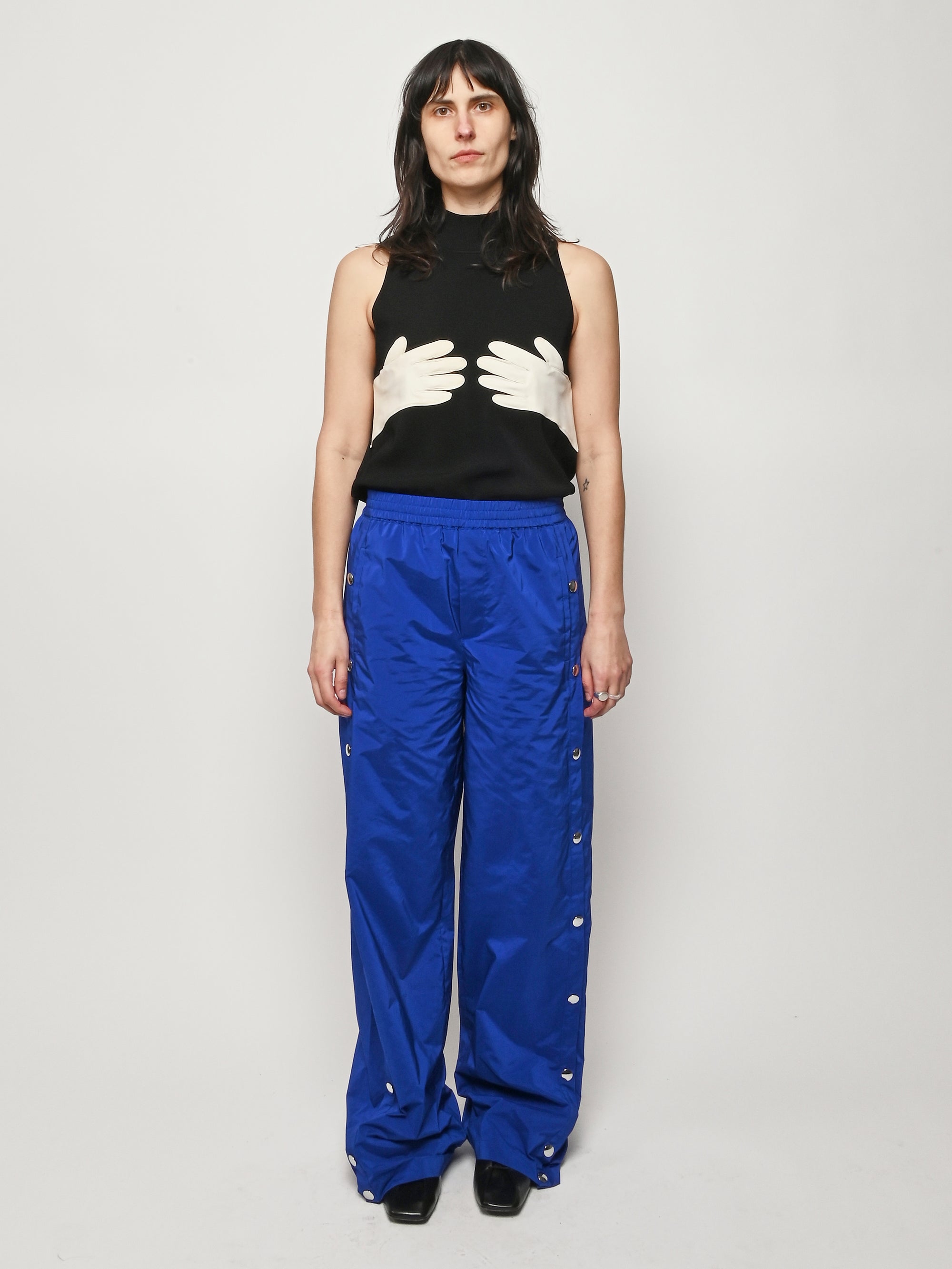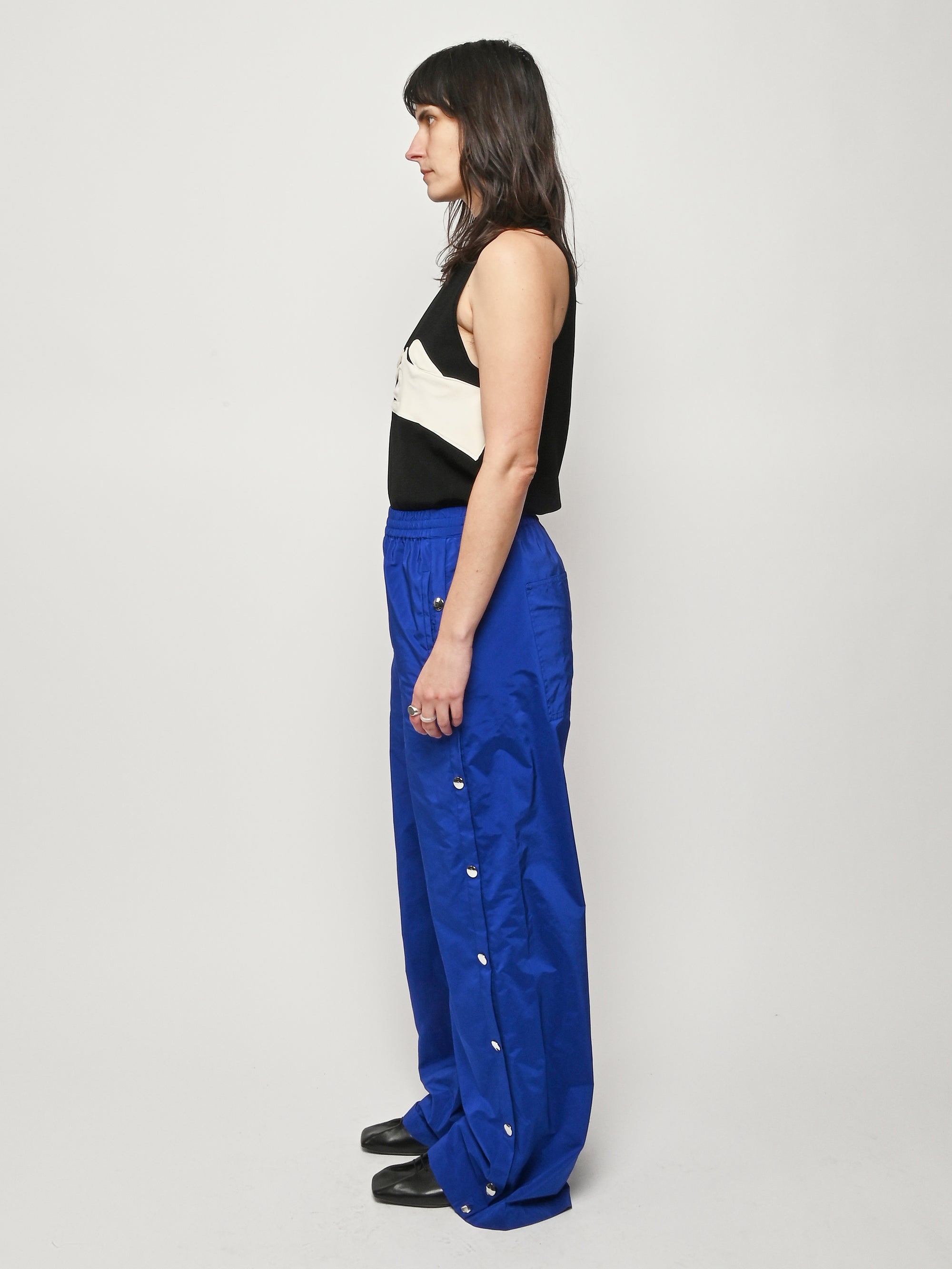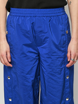 Designed with a pull-on waistband, adjustable drawstrings, side pockets, and oversized functional snaps along the legs, this jogger by Tibi is ackable and wrinkle-resistant, and features side pockets and silver-tone snaps on the sides.
